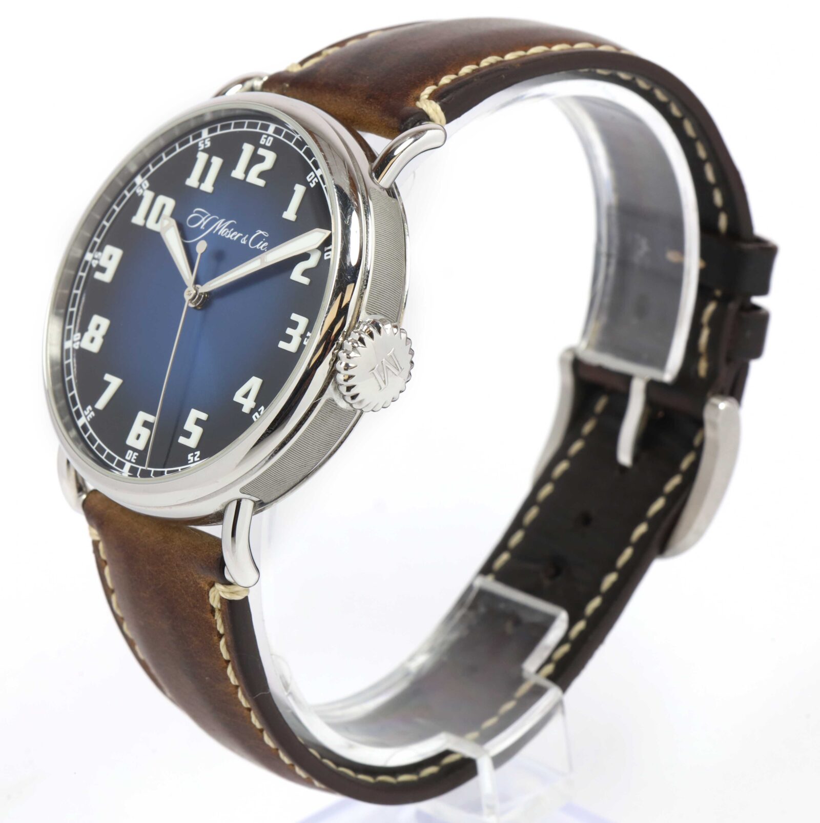 This H.Moser & Cie. watch is in excellent overall condition showing some light signs of surface wear consistent with preowned watches. This comes with its box, booklets, hang tags, and warranty card dated February 28th, 2022 as shown in the pictures att...