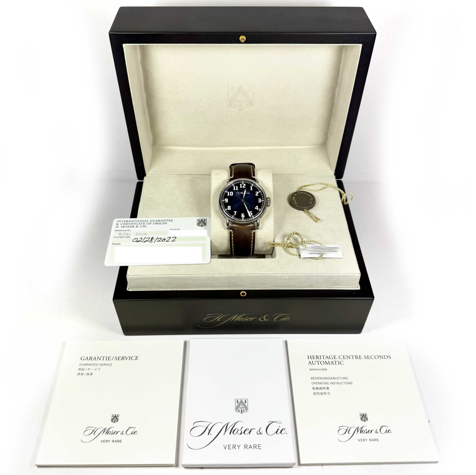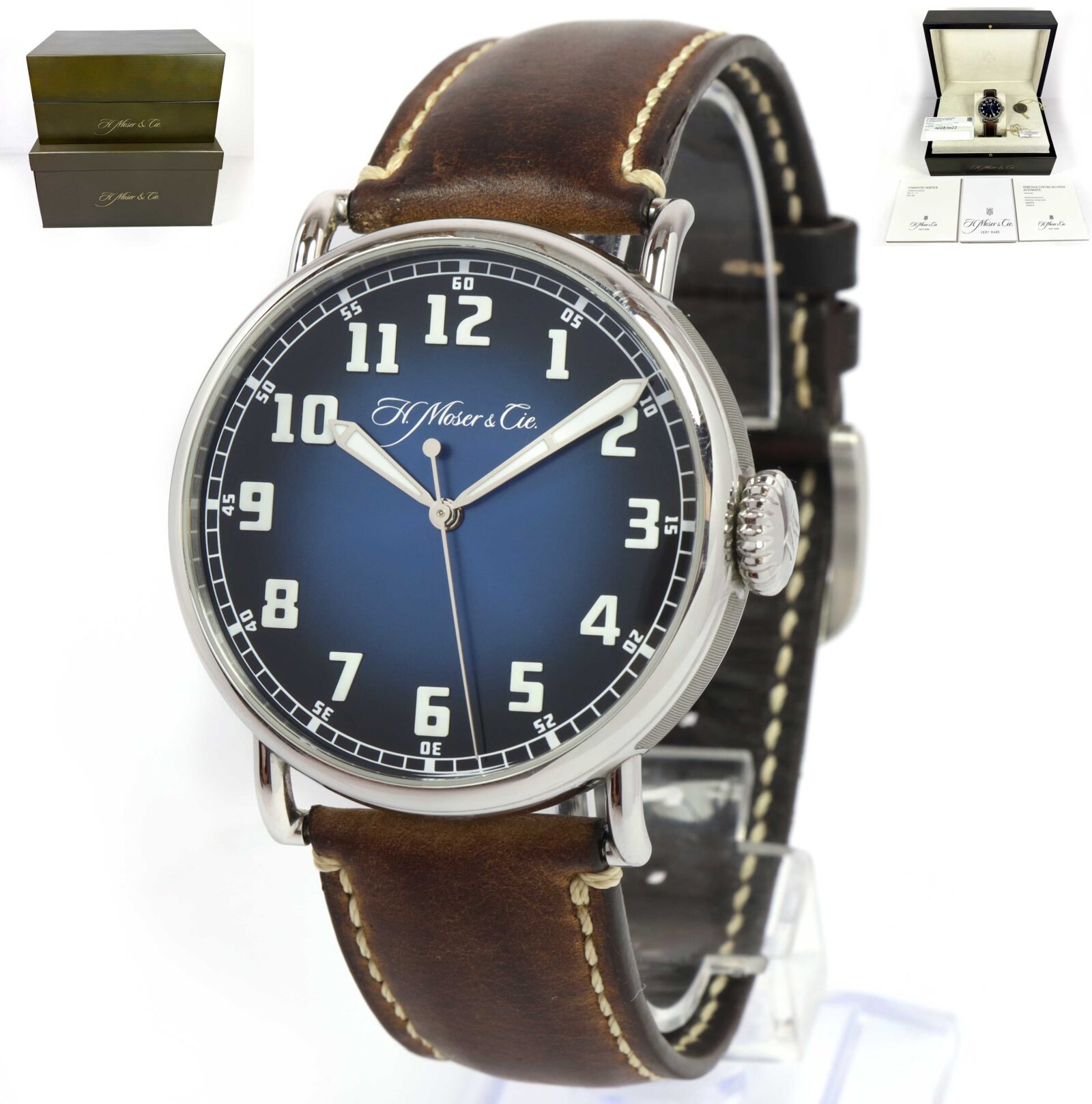 Read Morethis h.moser & cie. Watch is in excellent overall condition showing some light signs of surface wear consistent with preowned watches. This comes with its box, booklets, hang tags, and warranty card dated february 28th, 2022 as shown in the pictures attached. This watch is in stock and available to ship immediately!