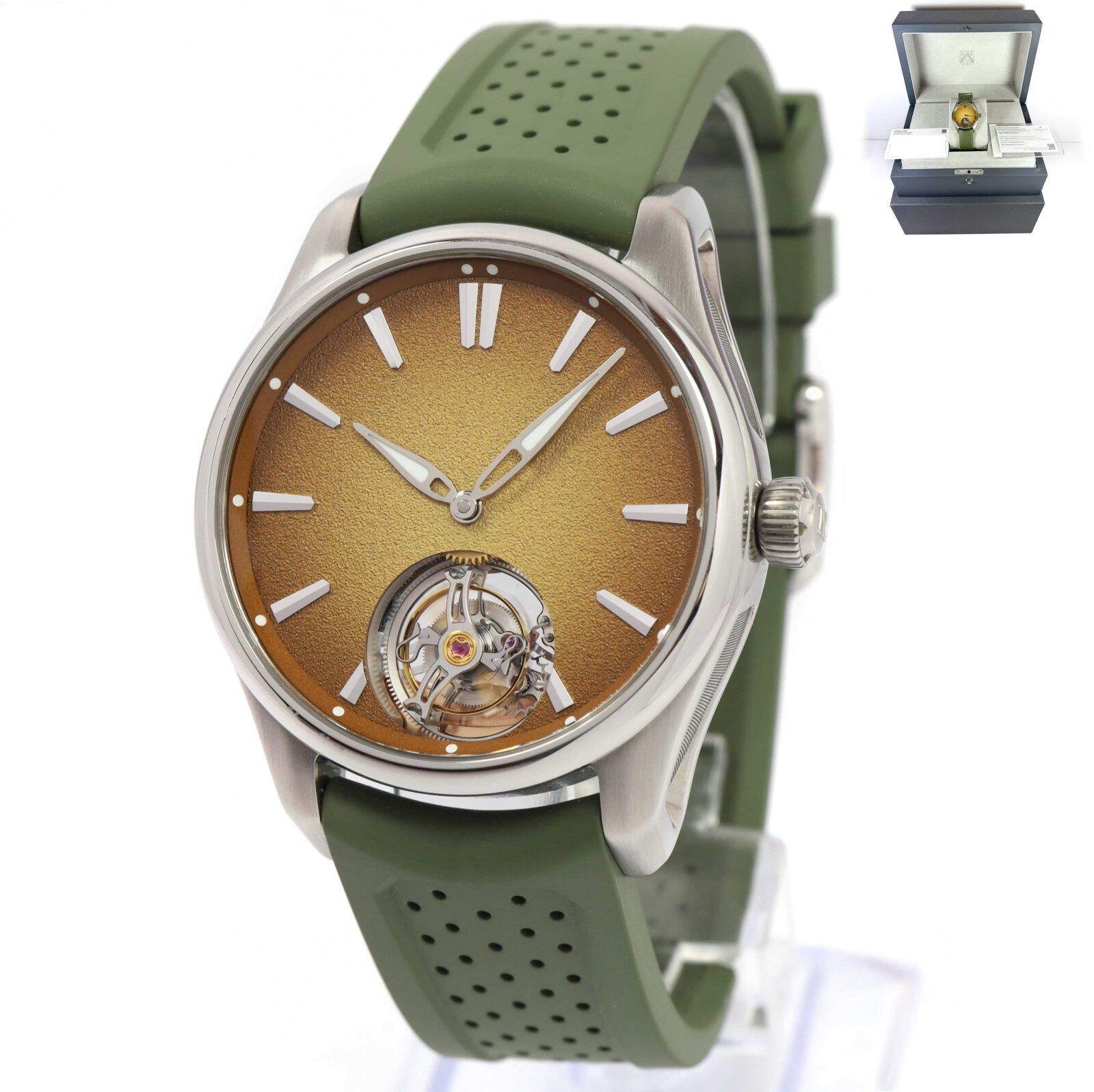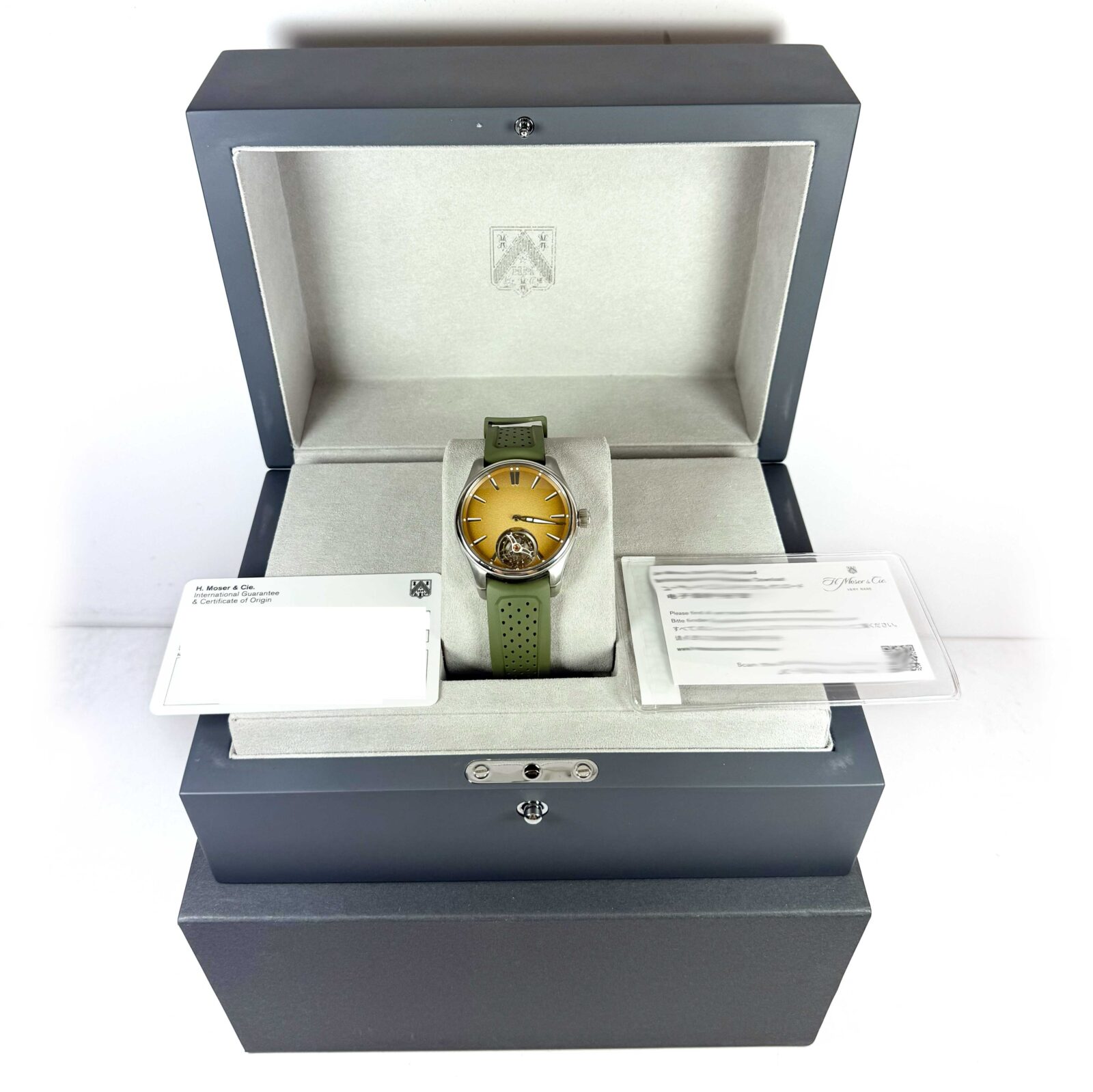Read Morethis h. Moser & cie. Watch is in amazing overall condition and comes with its box, booklets, and warranty card as shown in the pictures attached. This watch is part of a very limited edition with only 18 total pieces produced in this model. This watch is in stock and available to ship immediately!