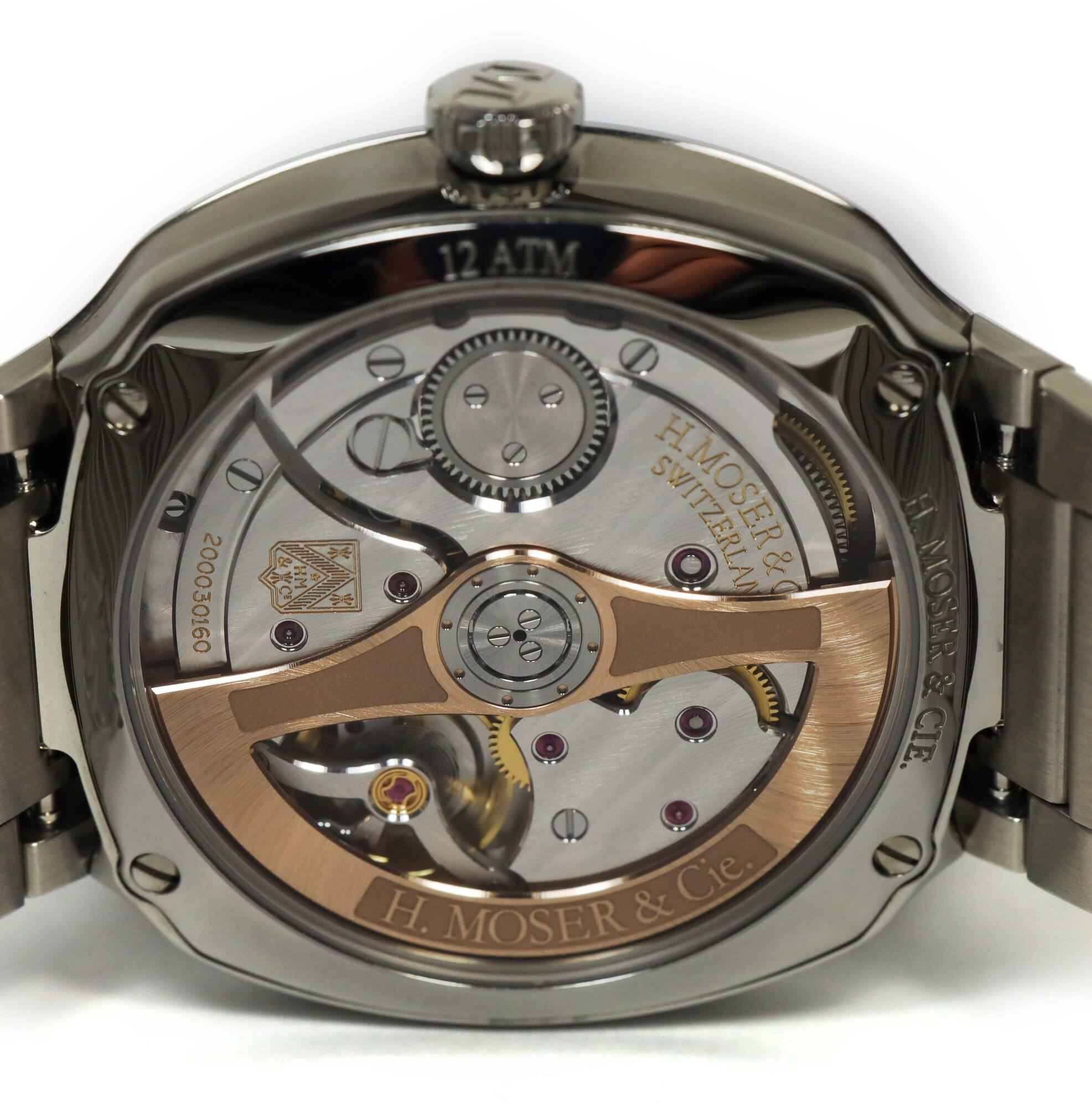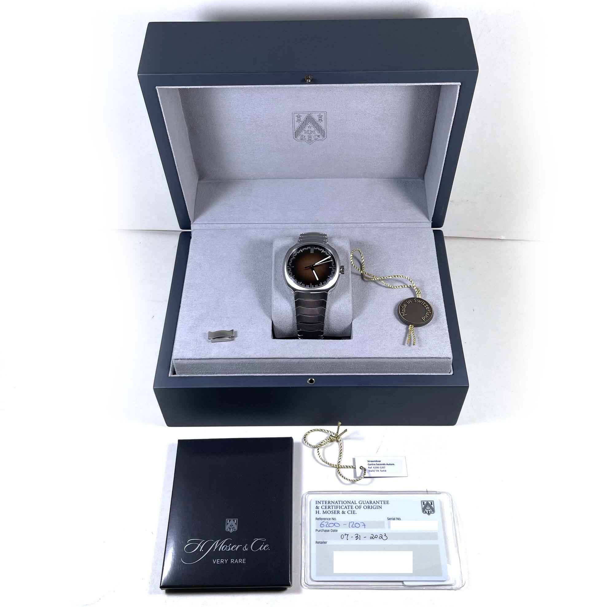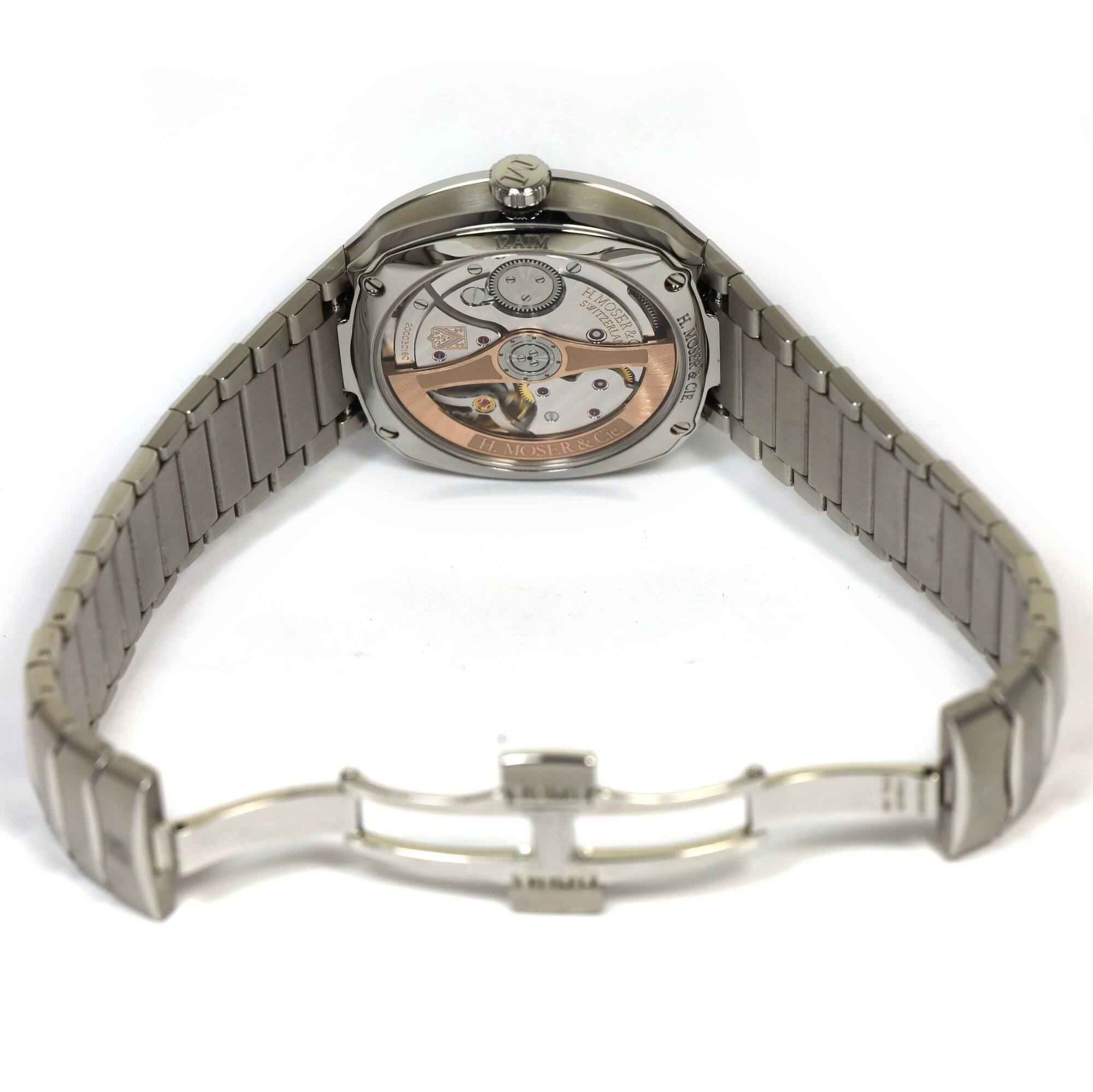THIS H. MOSER & CIE. WATCH IS IN LIKE NEW 99% CONDITION, OUR CUSTOMER PURCHASED THE WATCH, WORE IT OUT OF THE STORE, AND NEVER TOUCHED IT AGAIN. THE WATCH COMES WITH ITS BOX, SPARE LINK, HANG TAGS, AND WARRANTY CARD DATED JULY 31ST, 2023 AS SHOWN IN THE...