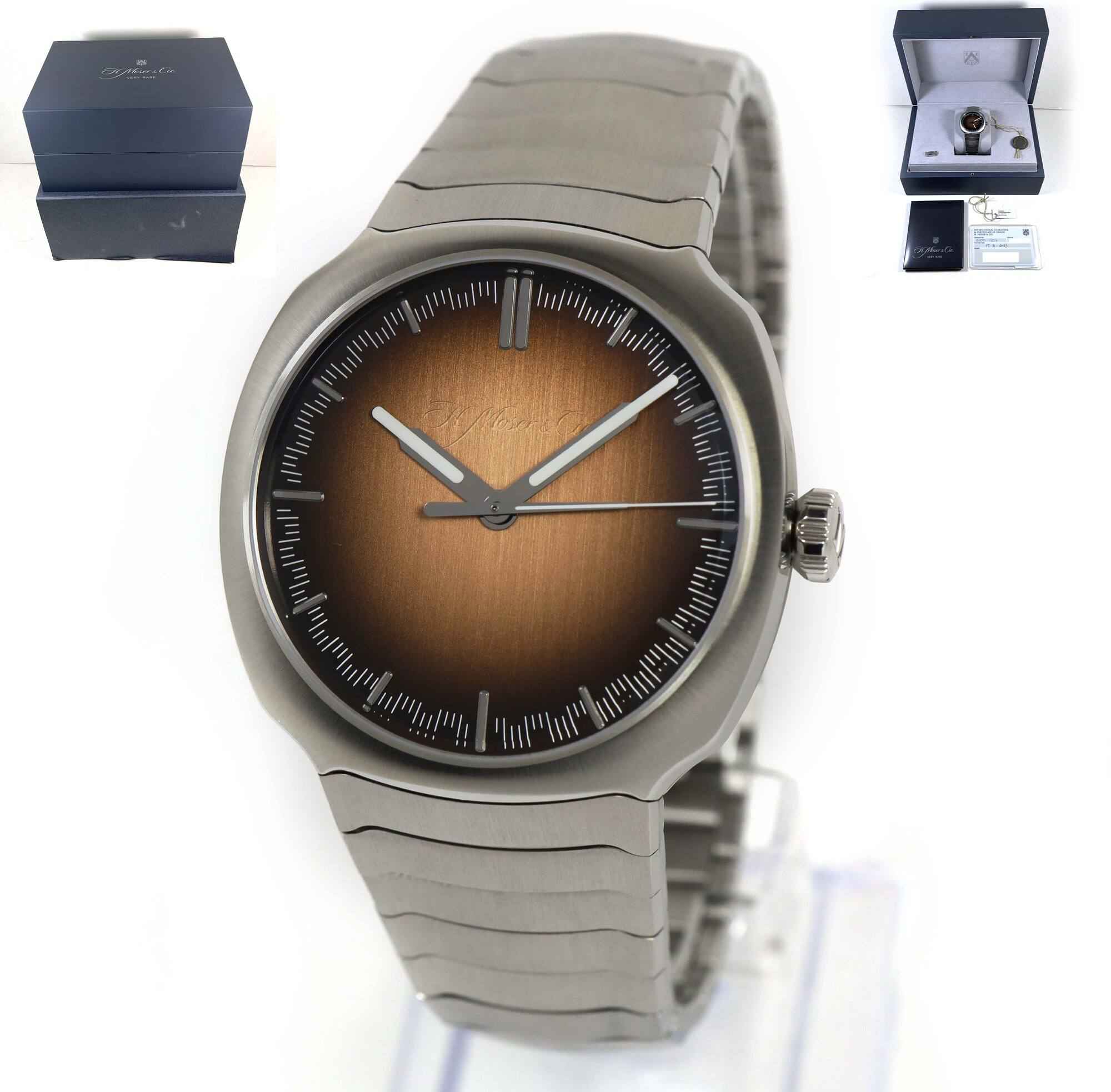 Read Morethis h. Moser & cie. Watch is in like new 99% condition, our customer purchased the watch, wore it out of the store, and never touched it again. The watch comes with its box, spare link, hang tags, and warranty card dated july 31st, 2023 as shown in the pictures attached. This watch features a 40mm stainless steel case that surrounds a salmon dial and comes on a steel bracelet. This watch is in stock and available to ship immediately!