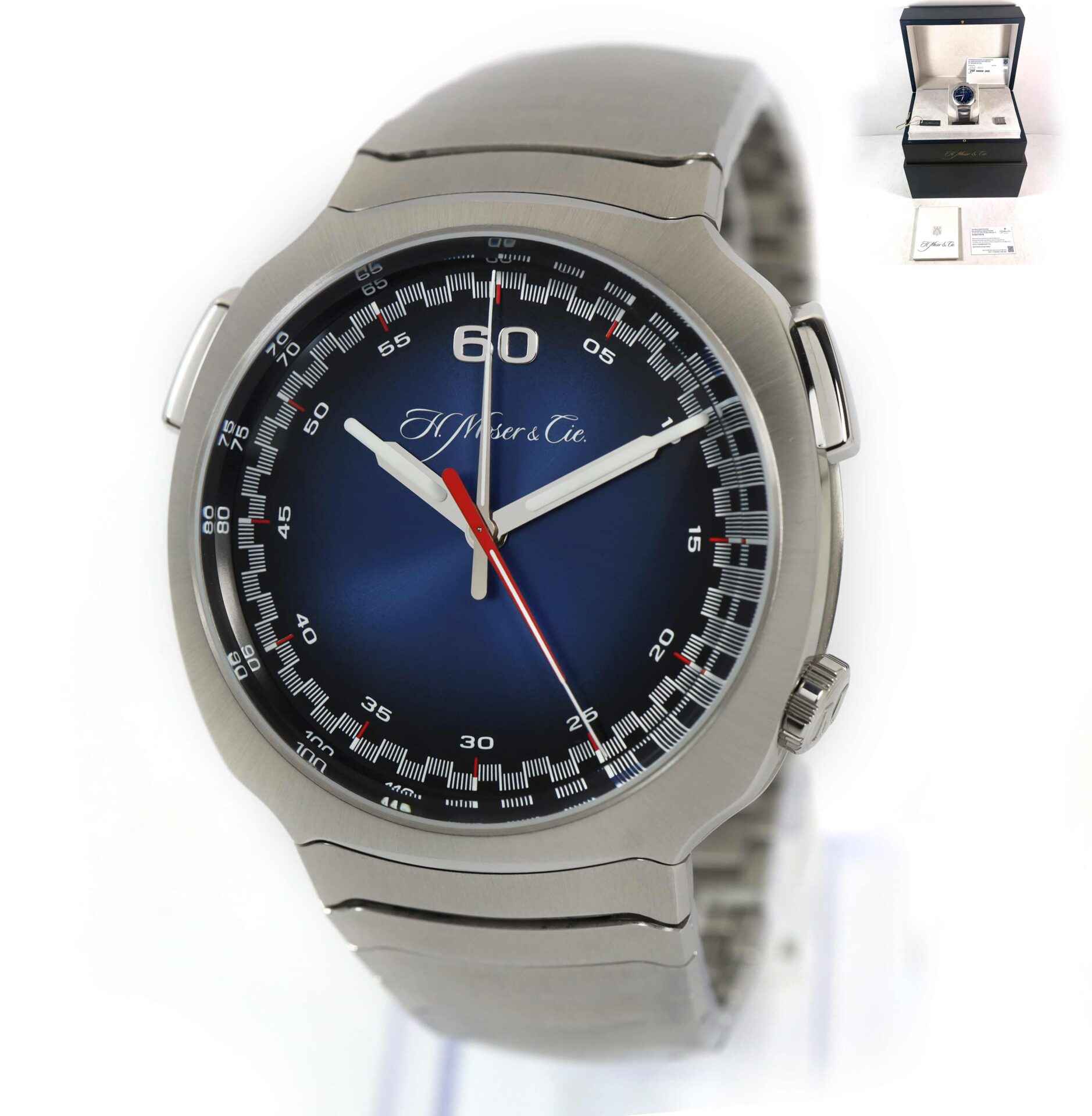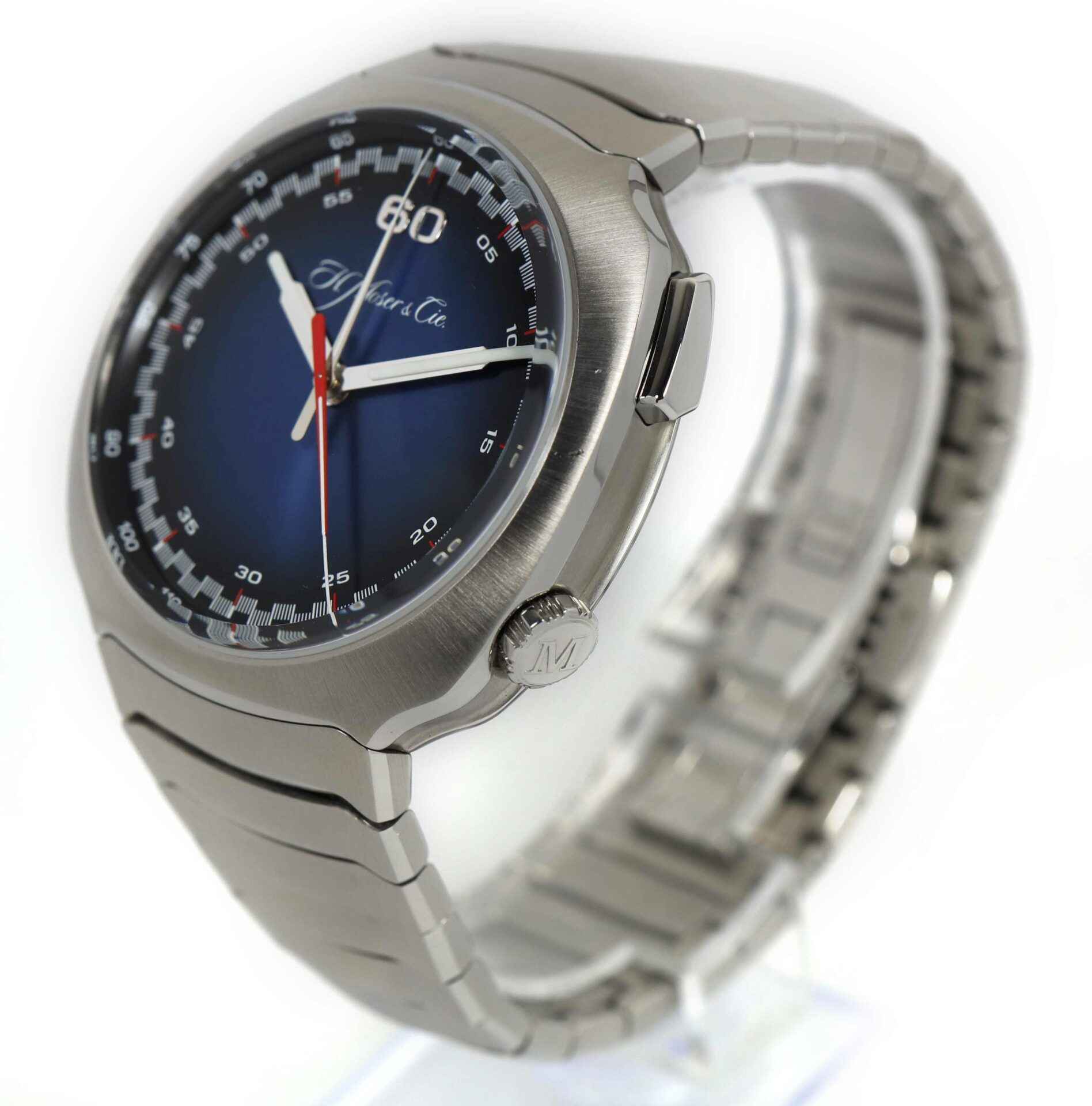 Read Morethis h. Moser & cie. Watch is in excellent condition and comes with its box, booklets, hang tag, spare links, and warranty card dated march 29th, 2023. This watch features a 42mm stainless steel case that surrounds a blue dial and comes on a steel bracelet as shown in the pictures attached. The functions include hours, minutes and flyback chronograph. This watch is in stock and available to ship immediately!