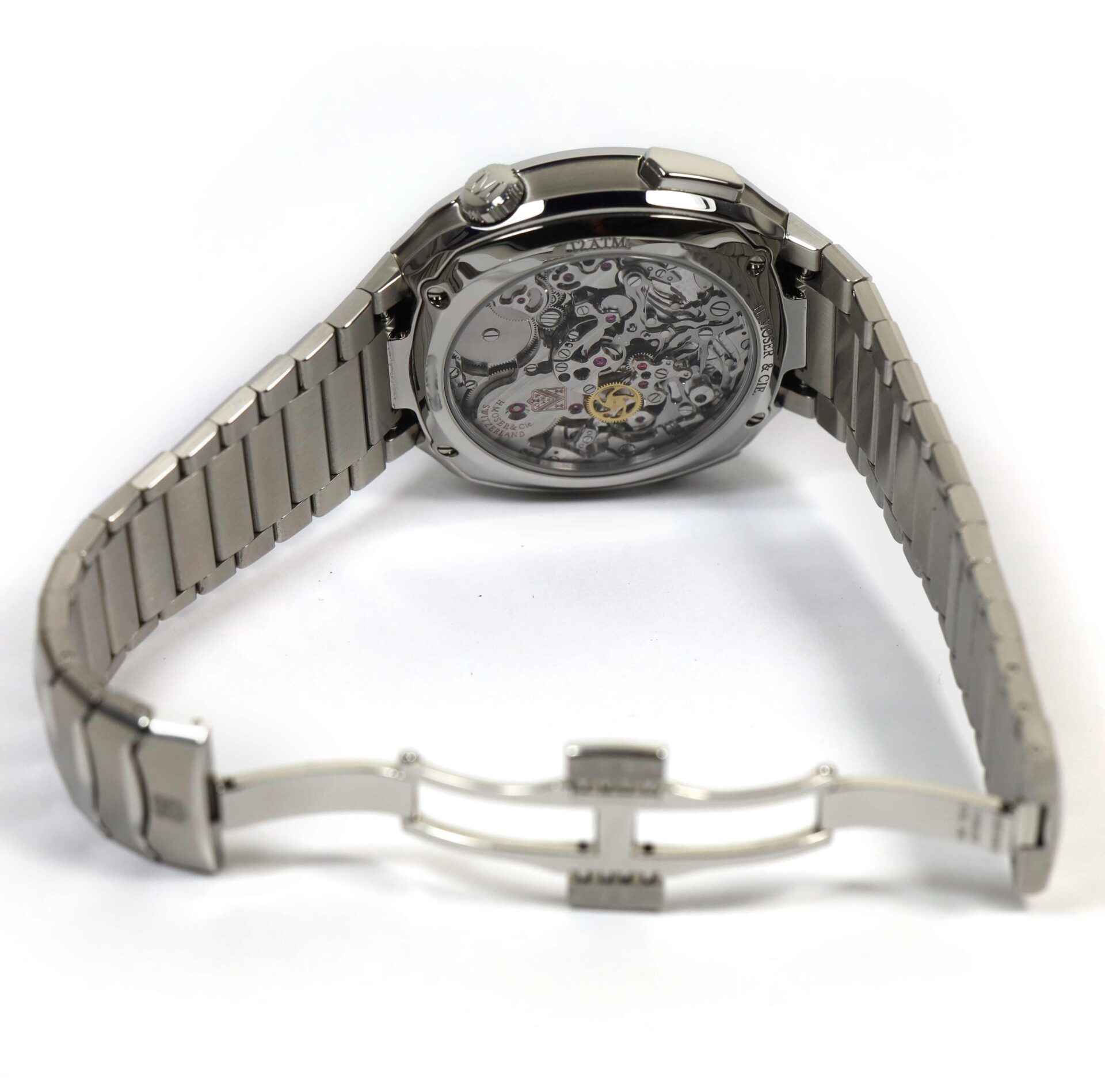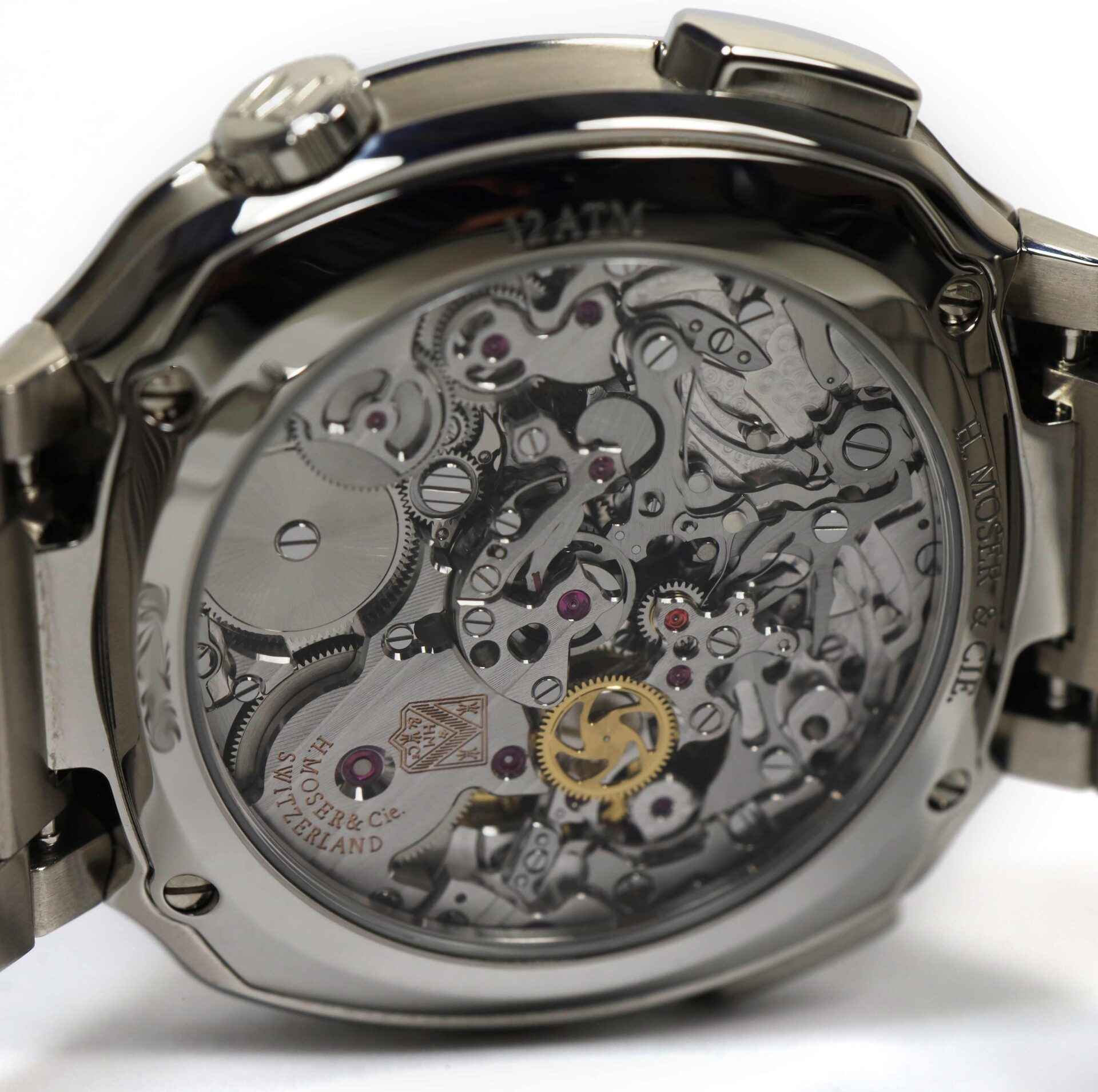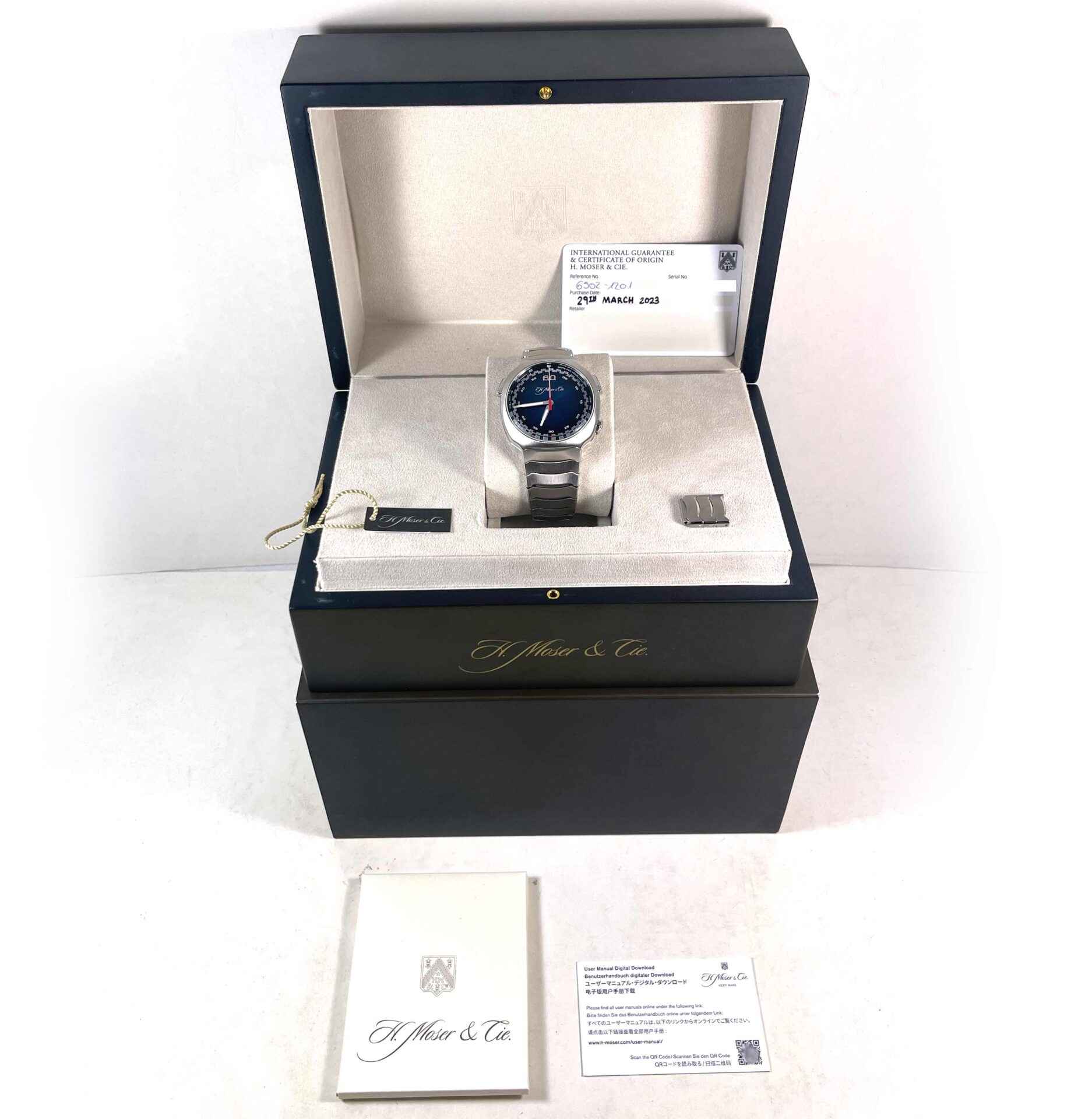 This H. Moser & Cie. watch is in excellent condition and comes with its box, booklets, hang tag, spare links, and warranty card dated March 29th, 2023. This watch features a 42mm stainless steel case that surrounds a...