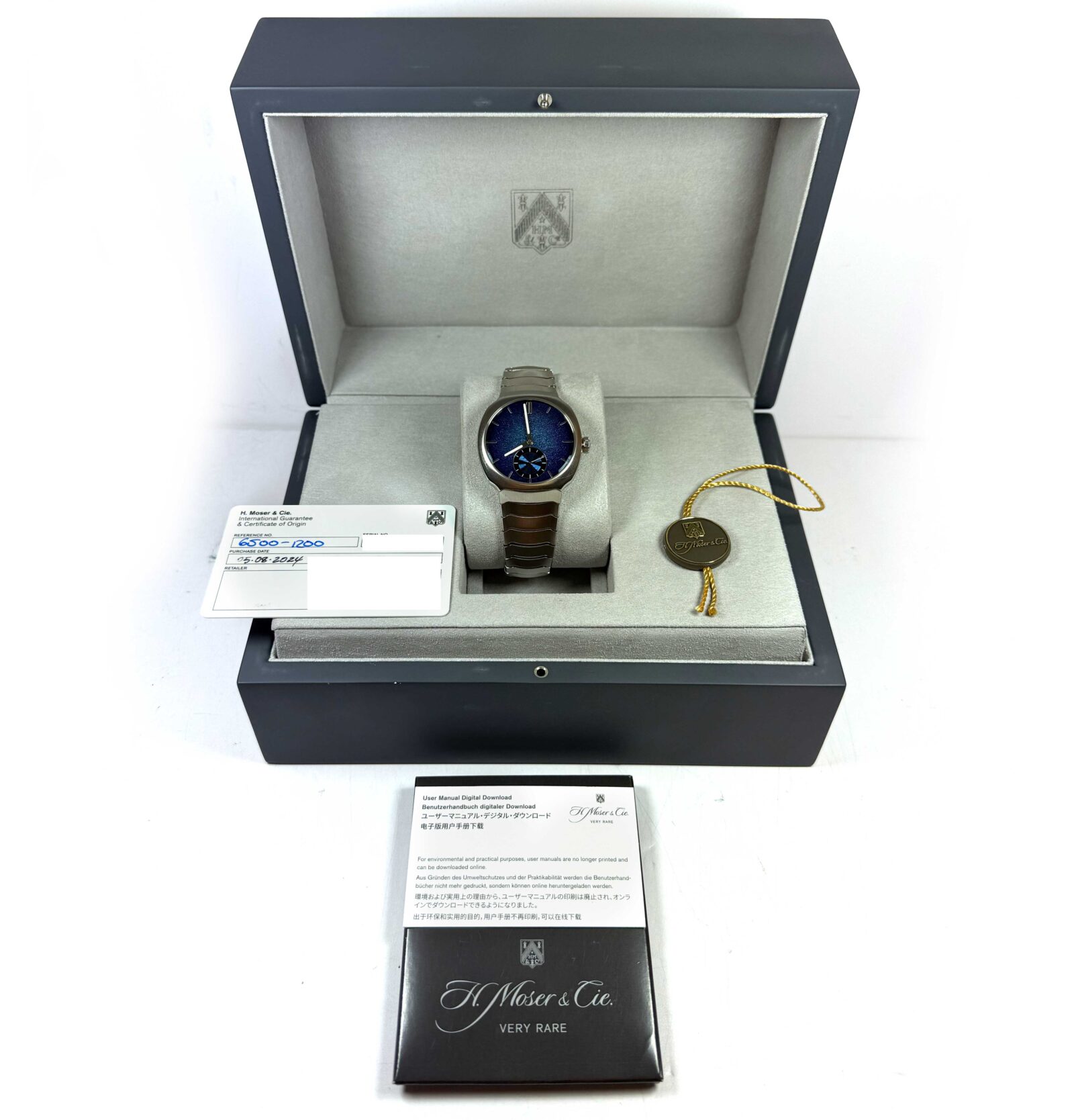 this h. Moser & cie. Watch is in excellent condition and comes with its box, hang tag, and warranty card dated may 8th, 2024 as shown in the pictures attached. This watch is in stock and available to ship immediately!