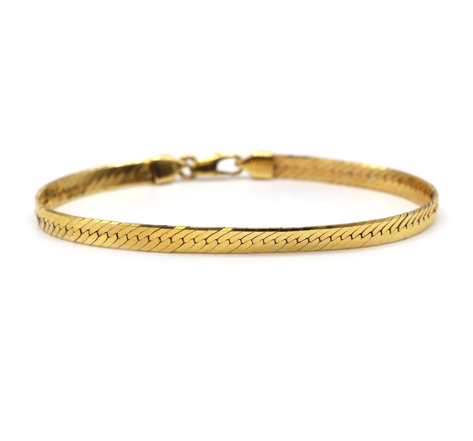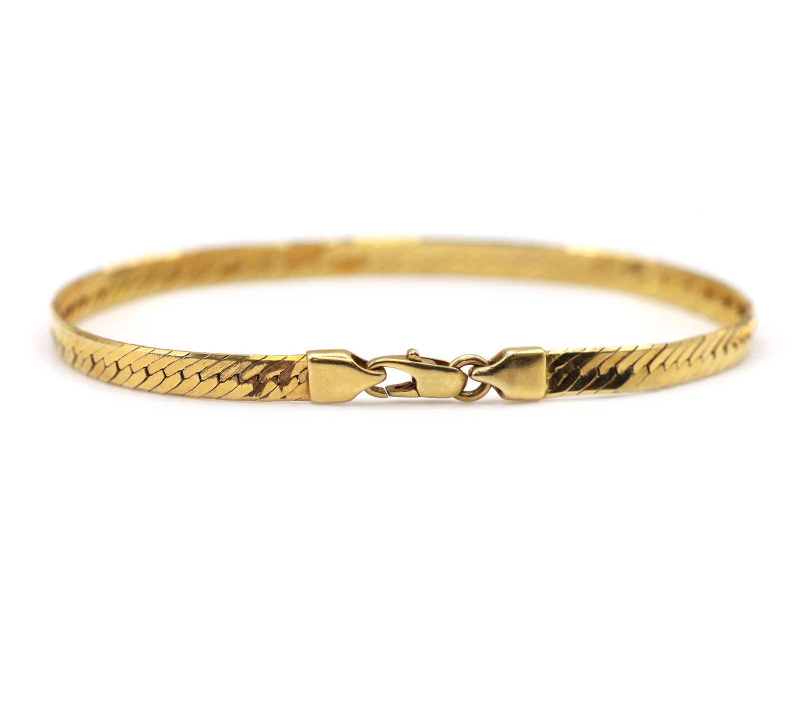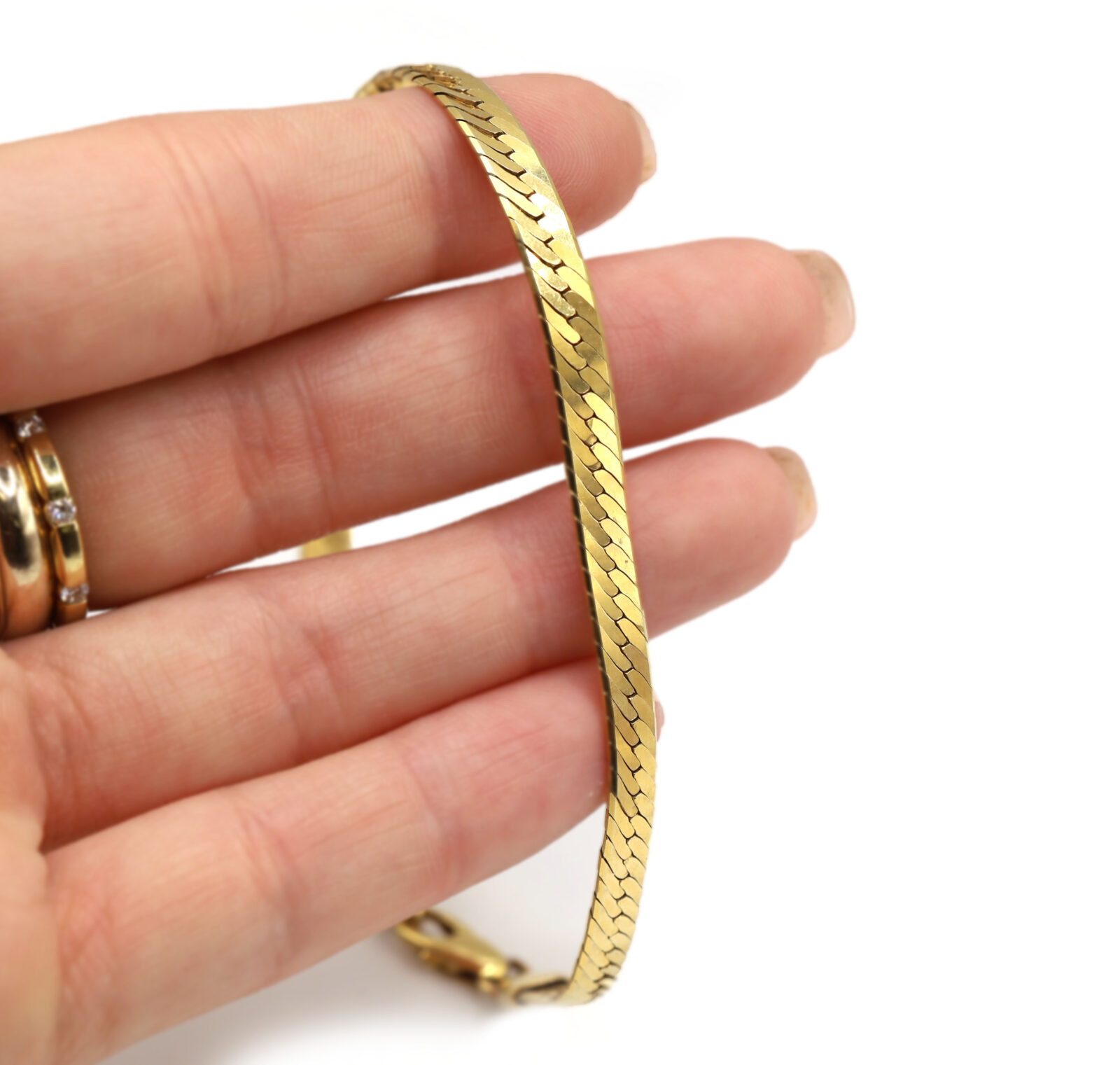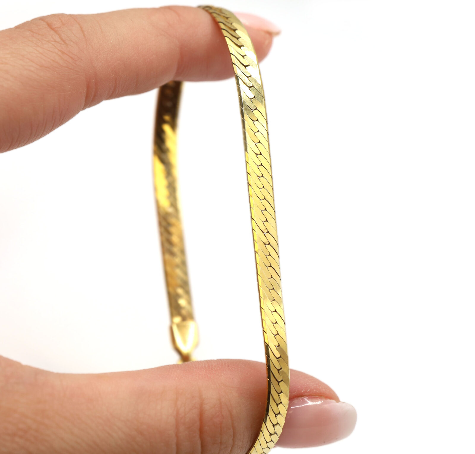 Material: 14k Yellow Gold Length: 8.2 Inches Type: Herringbone Width: 4.85mm Weight: 9 Grams
