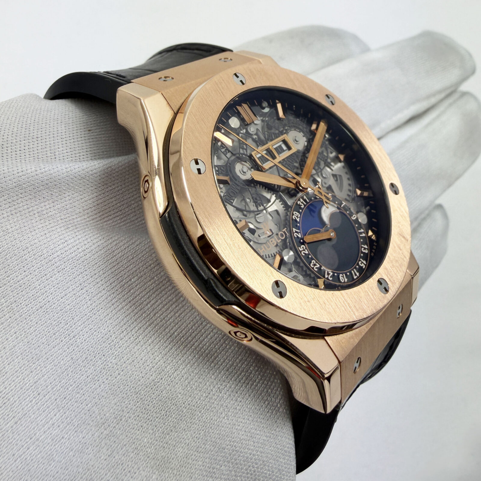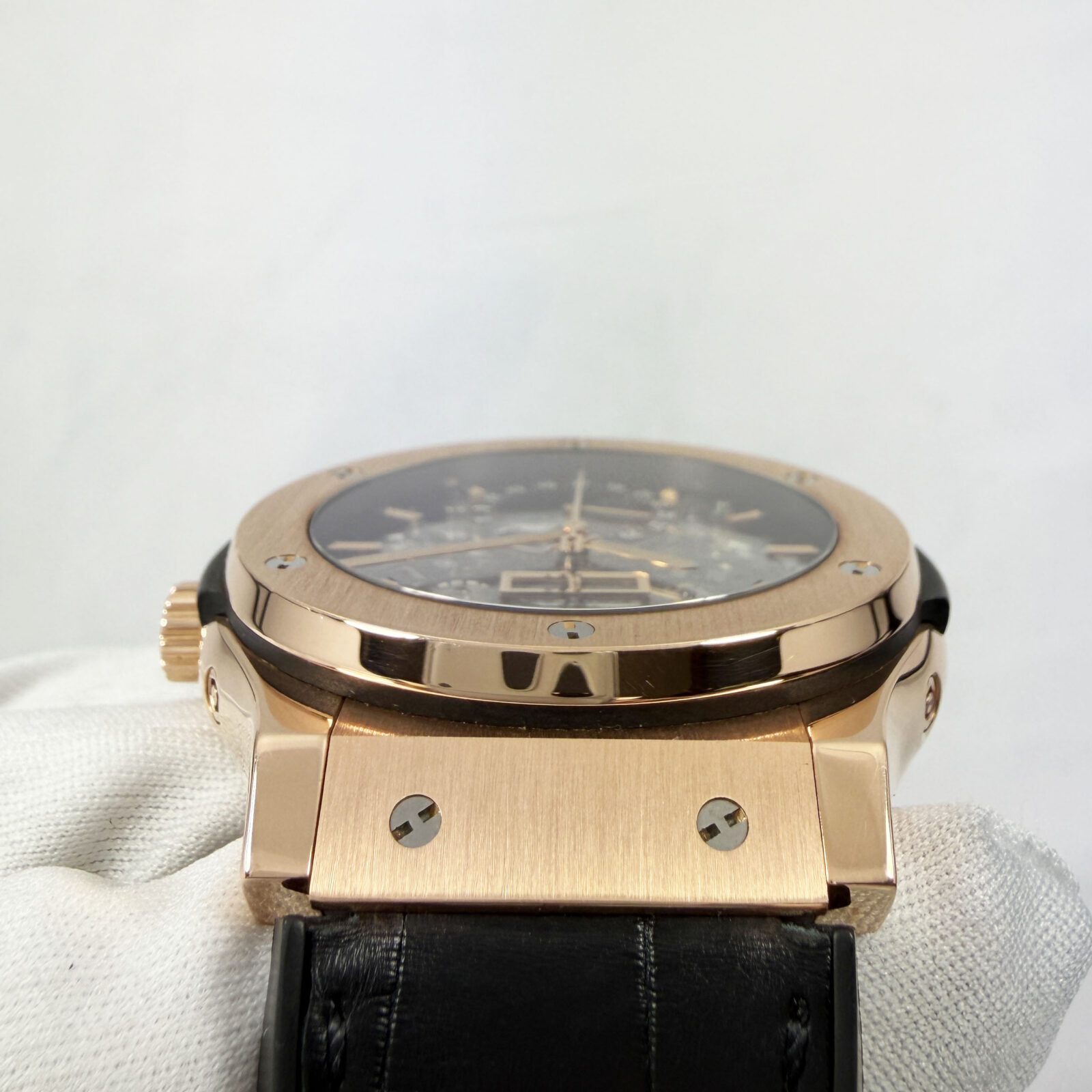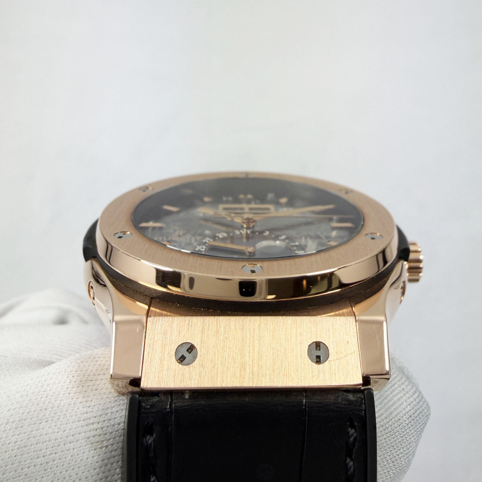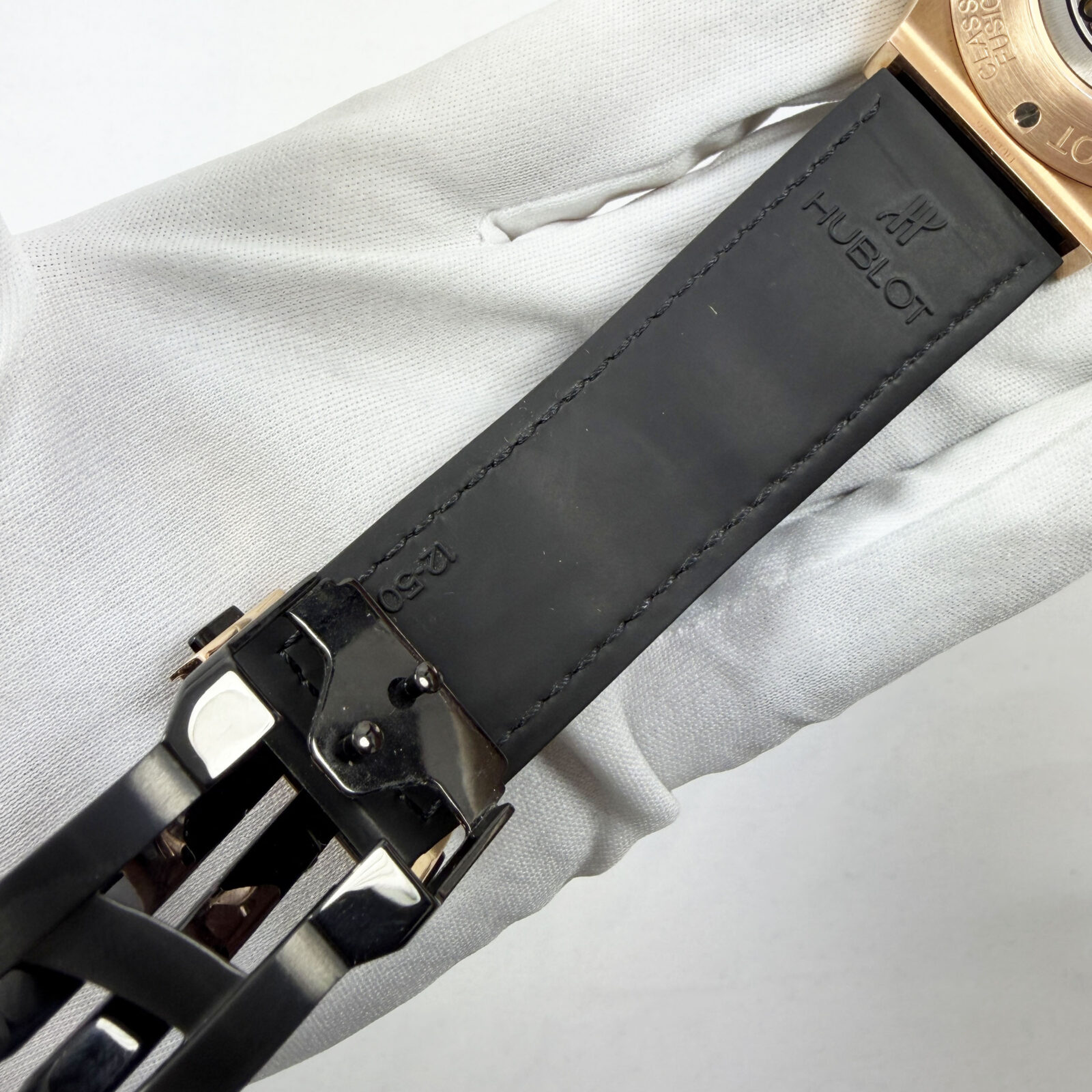 This Hublot watch comes with watch only, and there is a scratch on the bottom right of the crystal. The photos shown are of the exact watch being sold and accurately represent its condition. This watch is in stock and ready to ship immediately!