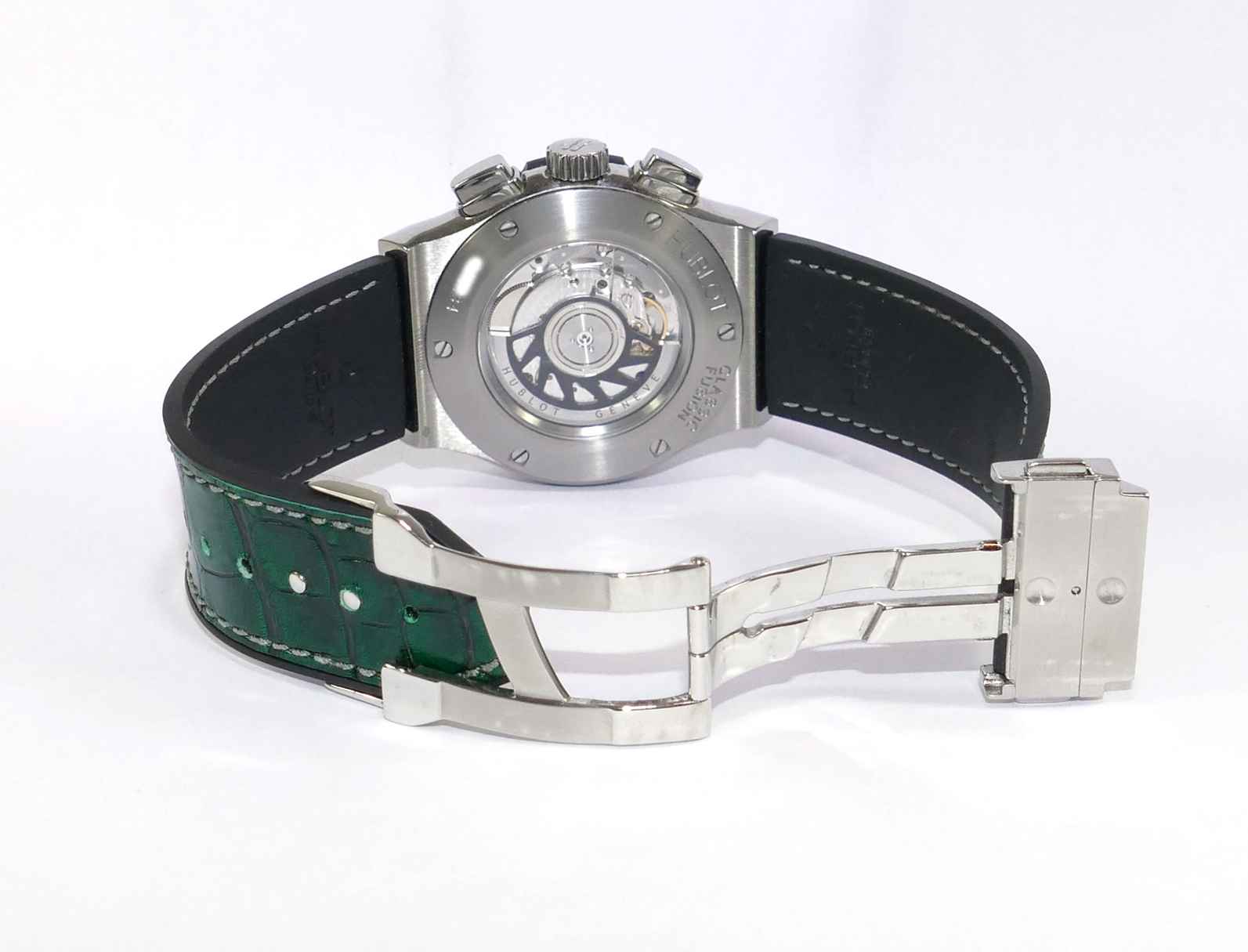 Read Morethis hublot is in great overall condition and comes with its original box and paperwork. The case shows some minor wear, but overall it is very nice. It comes on an original hublot green leather/rubber strap, and it also comes with a black strap. The green strap gives a really cool look and makes this watch stand out!