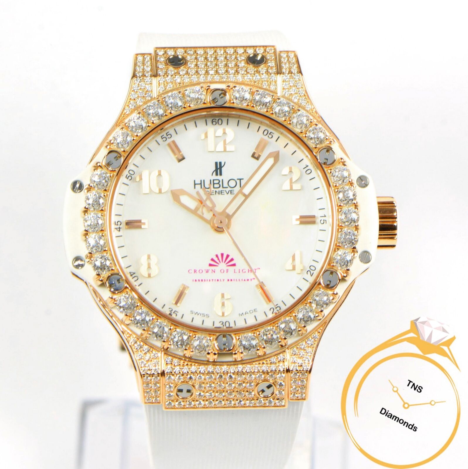 You are looking at a Hublot Crown of Light Big Bang 38mm Quartz watch. There were only 180 of this model produced. All of the diamonds are factory set and 100% original. This watch just came back from the Hublot Service Center where it received a full ...