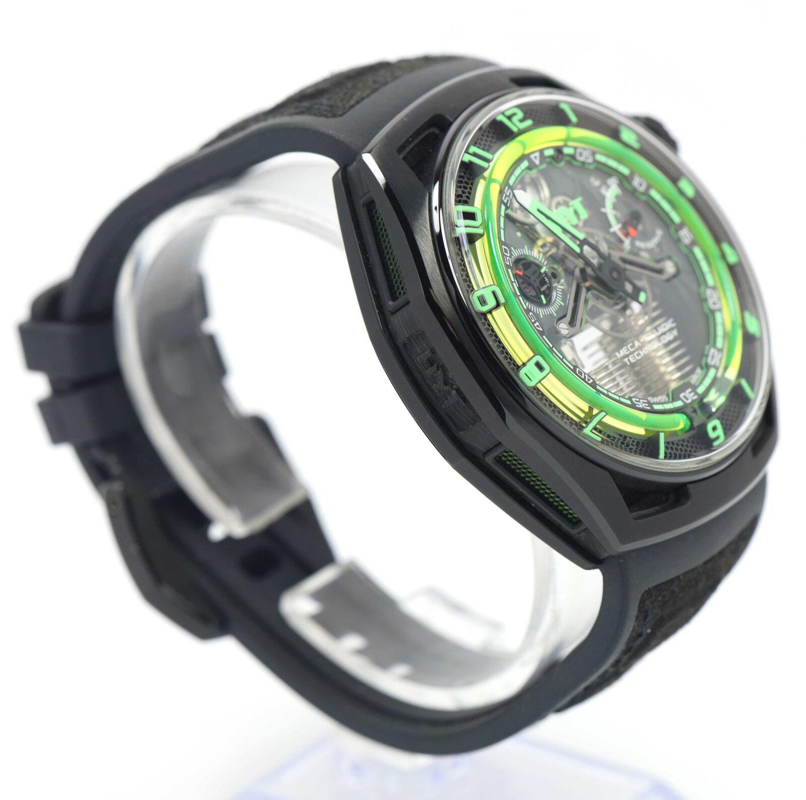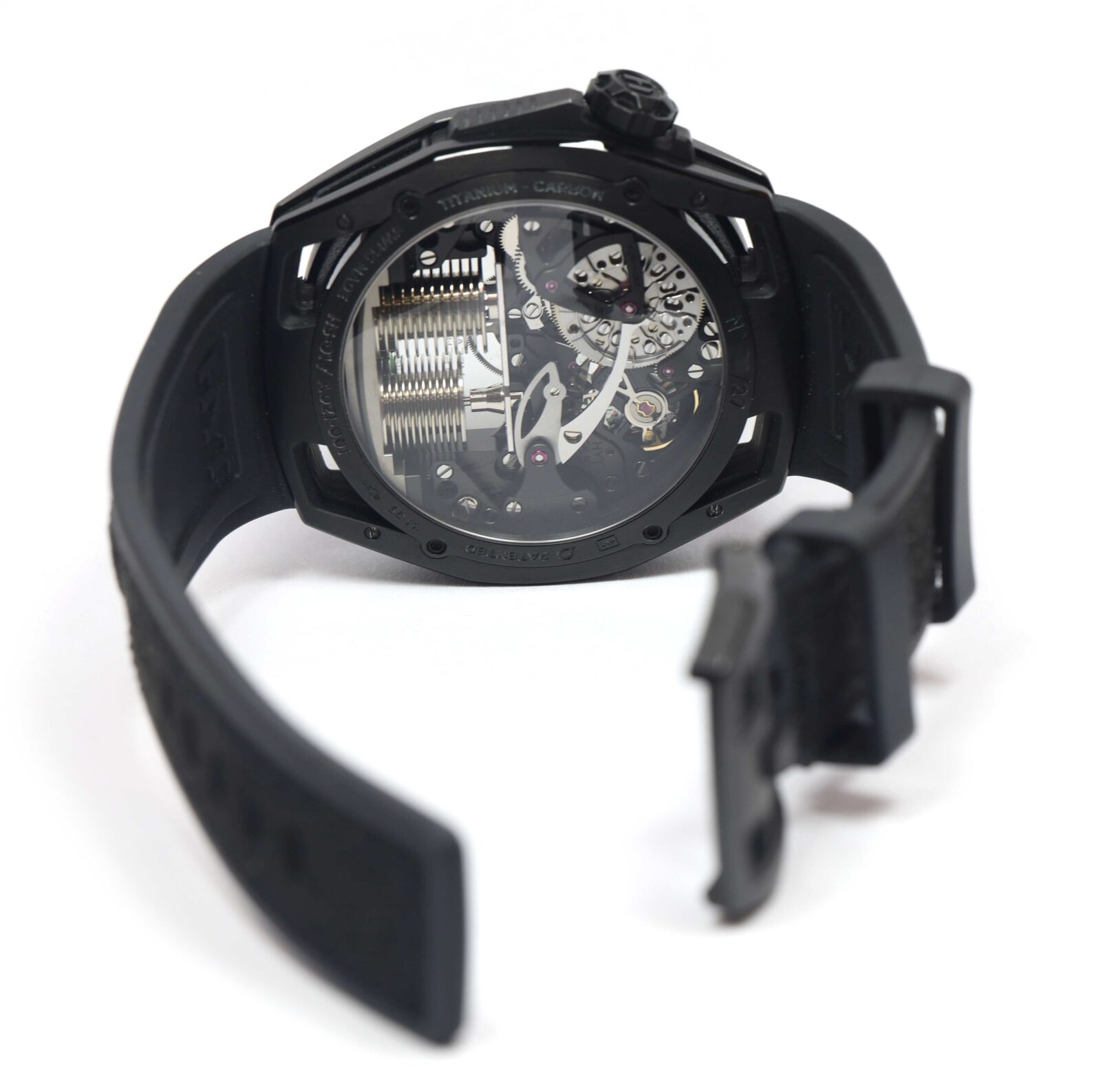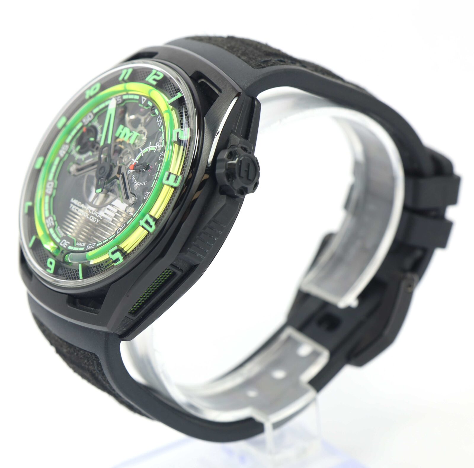 This HYT watch is in amazing condition and comes with its travel case and 3 additional straps as shown in the pictures attached. This HYT is number 1 out of 27 total pieces produced in this model. This watch is in stock and available to ship immediately!