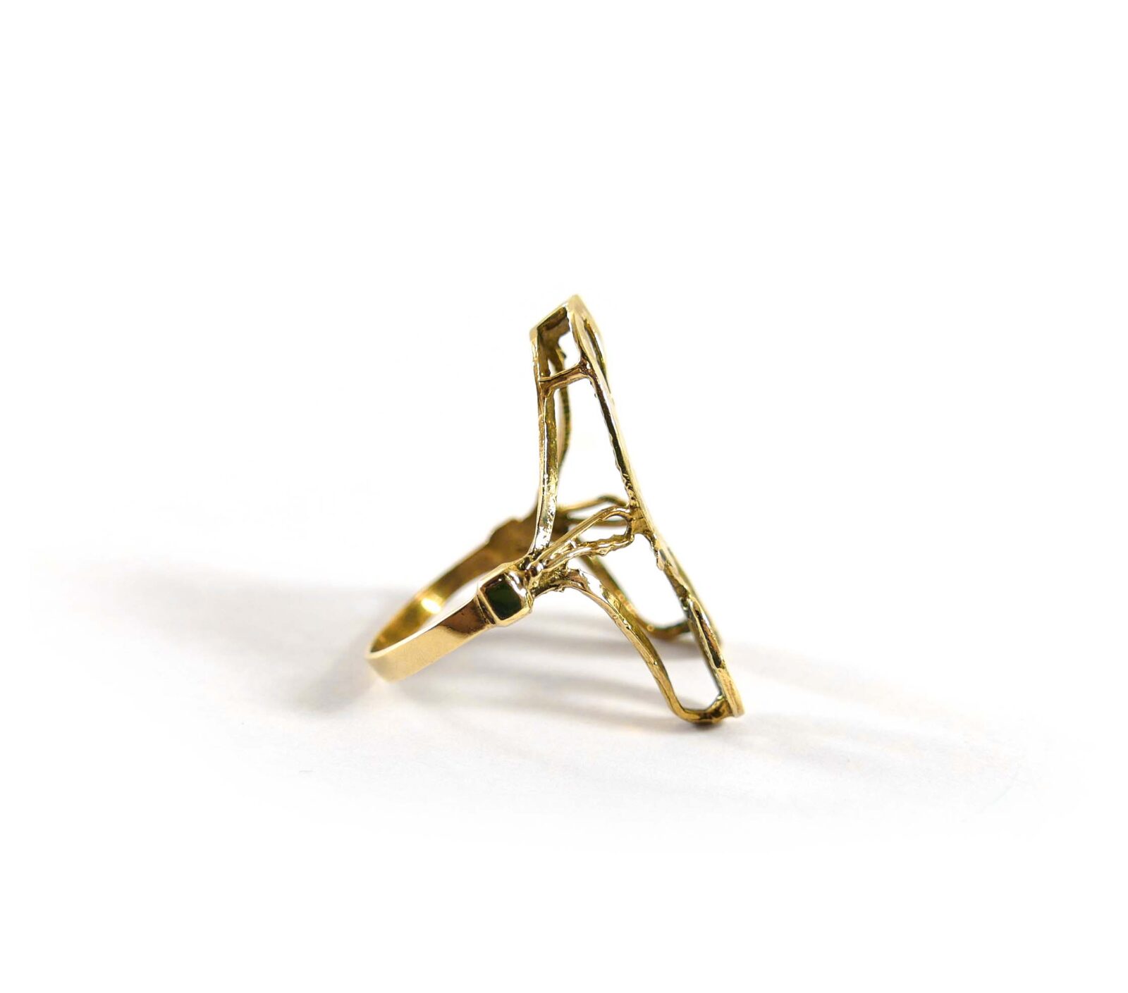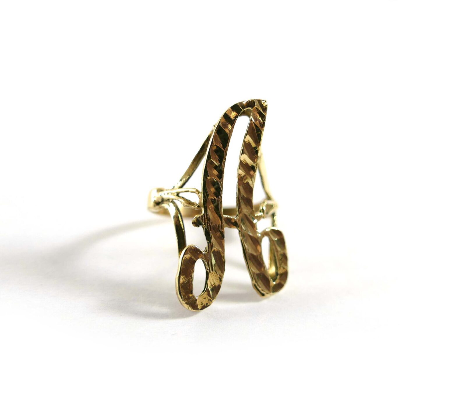 this ring is the symbol of the letter a, for a person with an a initial or any other reason! it’s made up of 10k yellow gold, and has a 3d design to give the ring depth!