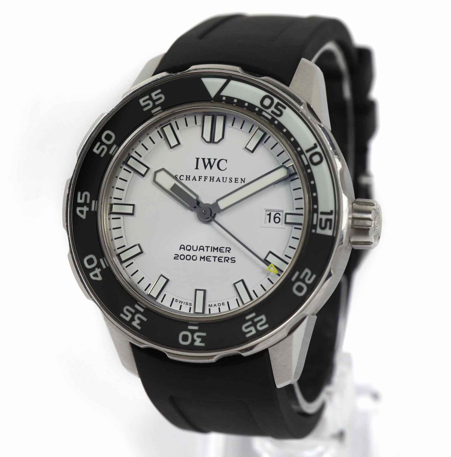 Read Morethis iwc is in excellent condition and comes as watch only as shown in the pictures attached. The black rubber strap currently on this aquatimer is brand new and unworn! this watch is in stock and available to ship immediately!