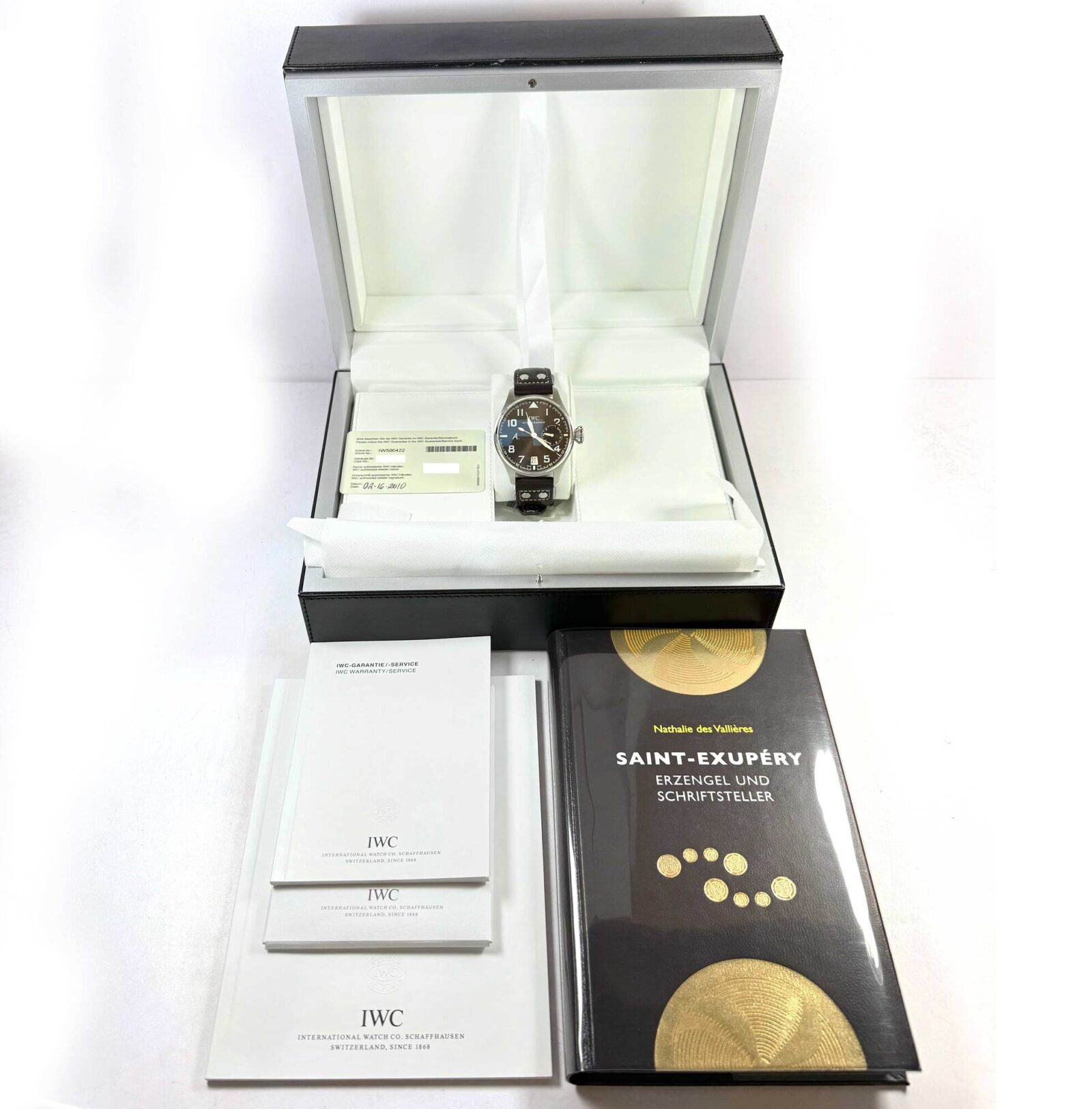 Read Morethis iwc watch is in excellent condition showing some light signs of surface wear consistent with preowned watches. This comes with its box, booklets, and warranty card dated february 16th, 2010 as shown in the pictures attached. This watch is in stock and available to ship immediately!