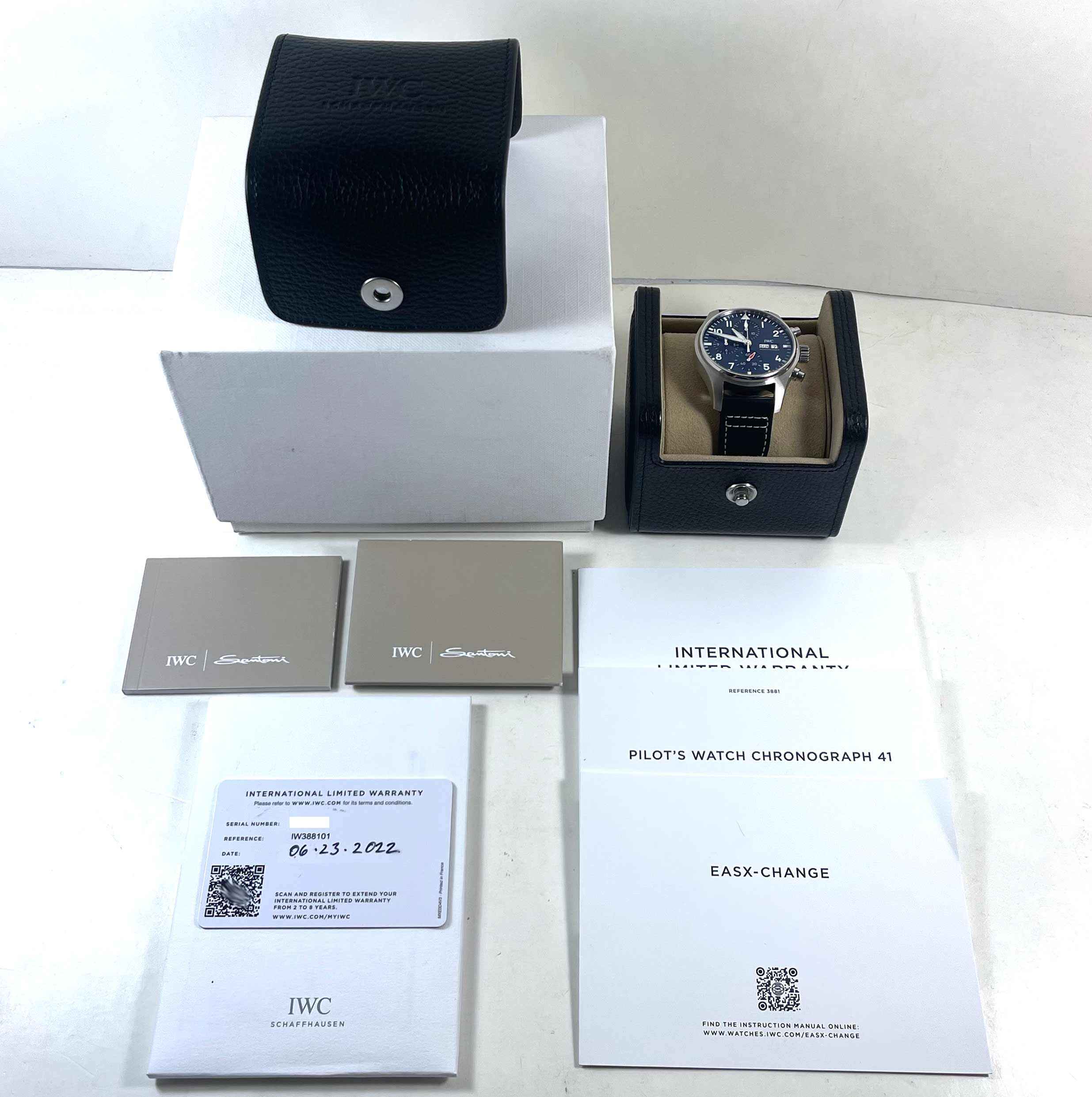 this iwc pilot is in excellent condition and comes with its box, papers, iwc microfiber cloth, and warranty card dated june 23rd, 2022. This watch is in stock and available to ship immediately!