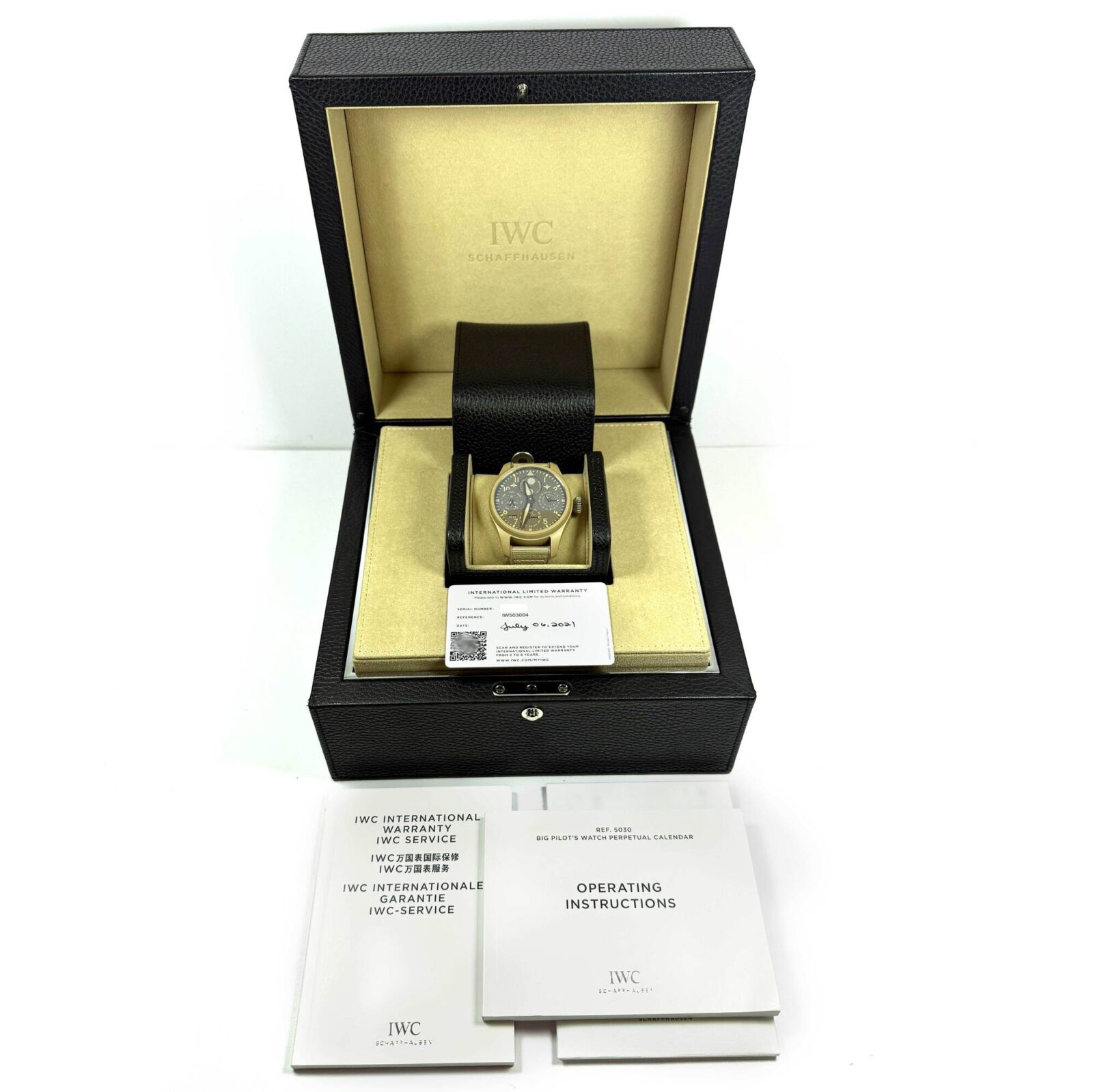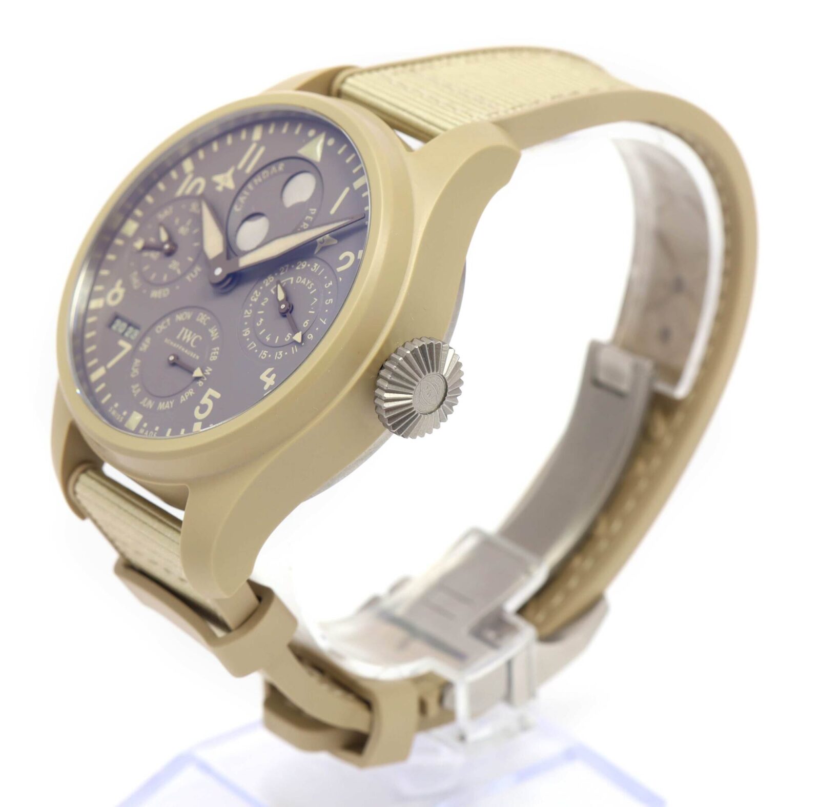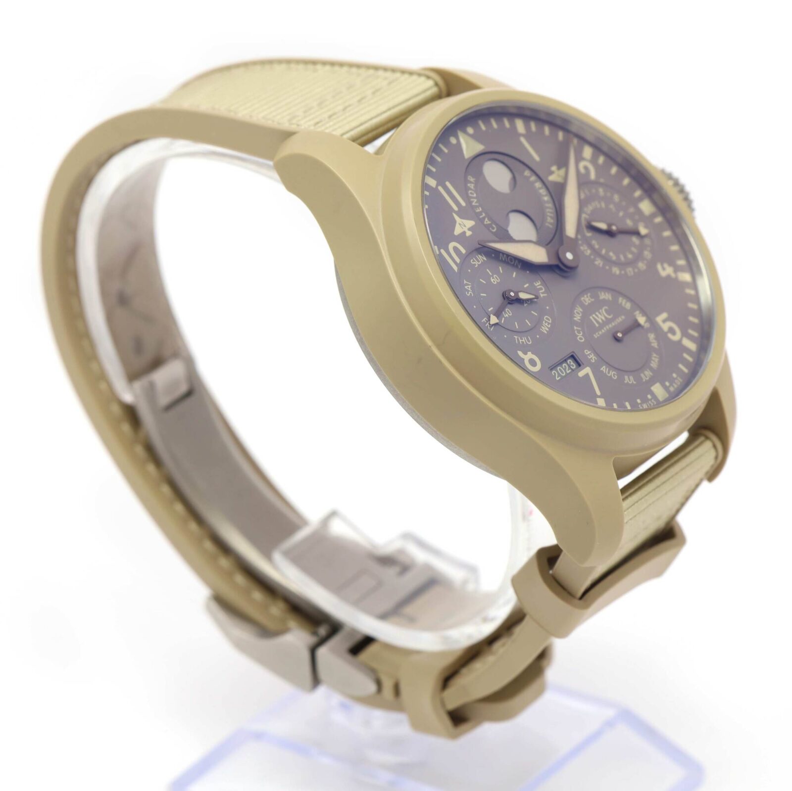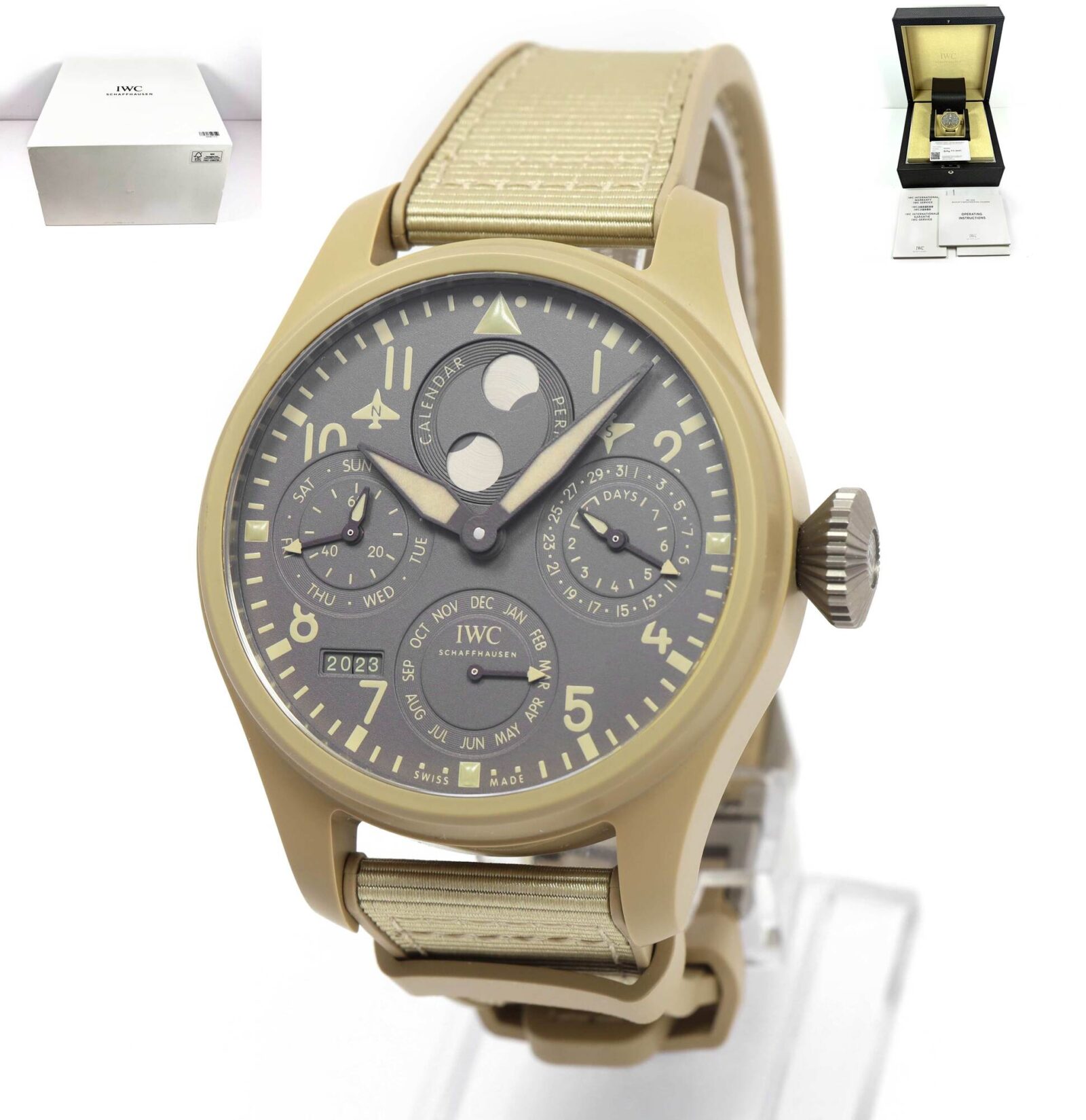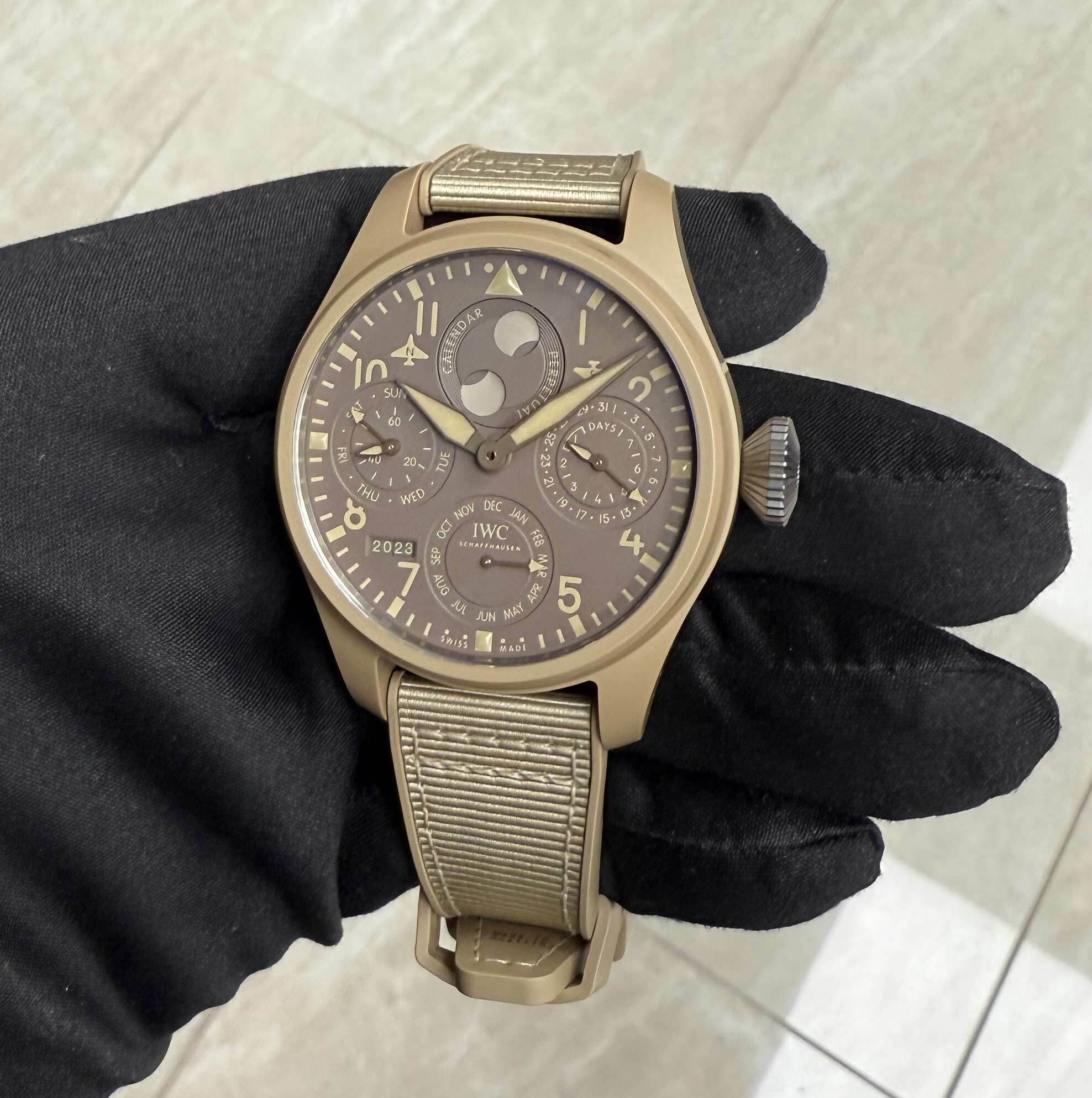 Read Morethis iwc watch is in excellent condition and comes with its box, booklets, and warranty card dated july 6th, 2021 as shown in the pictures attached. This watch features 46.5mm ceramic case that surrounds a brown dial and comes on a beige colored strap. The watch functions include a perpetual calendar with displays for the date, day, month, year (in four digits) and perpetual moon phase for the northern and southern hemisphere. This watch is in stock and available to ship immediately!