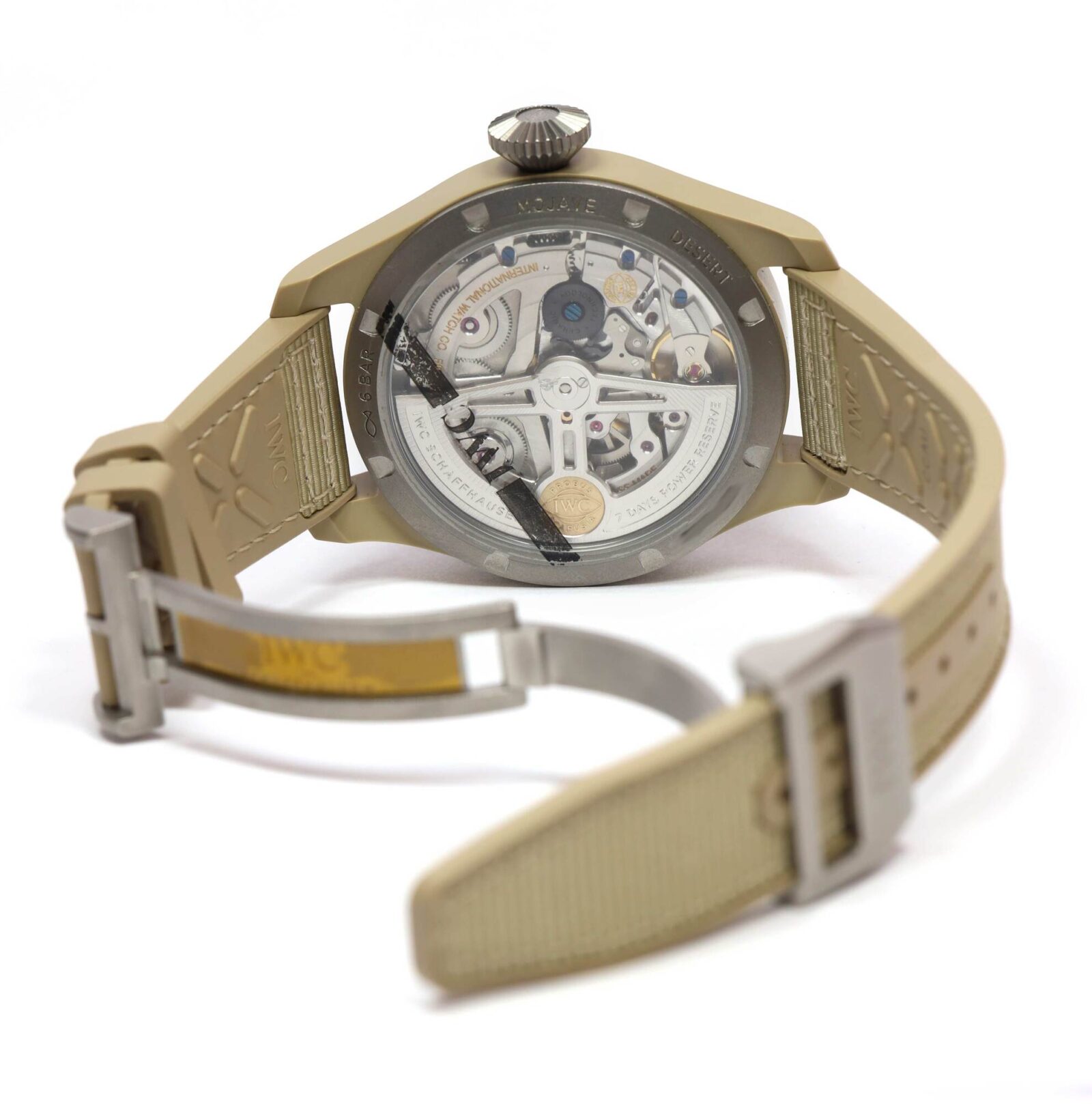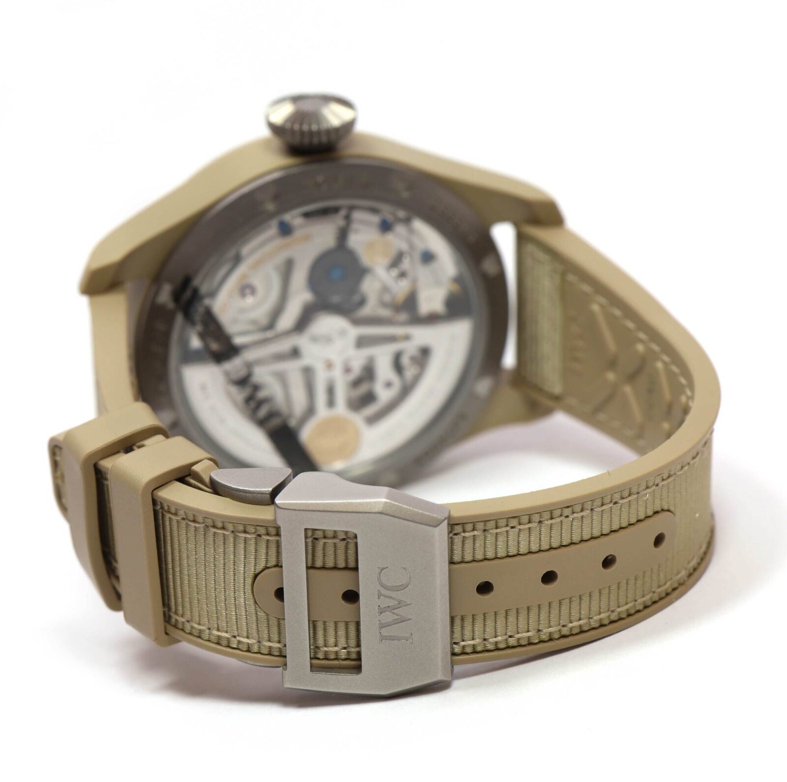 This iwc watch is in excellent condition and comes with its box, booklets, and warranty card dated july 6th, 2021 as shown in the pictures attached. This watch features 46.5mm ceramic case that surrounds a brown dial and comes on a beige colored strap. The wat...