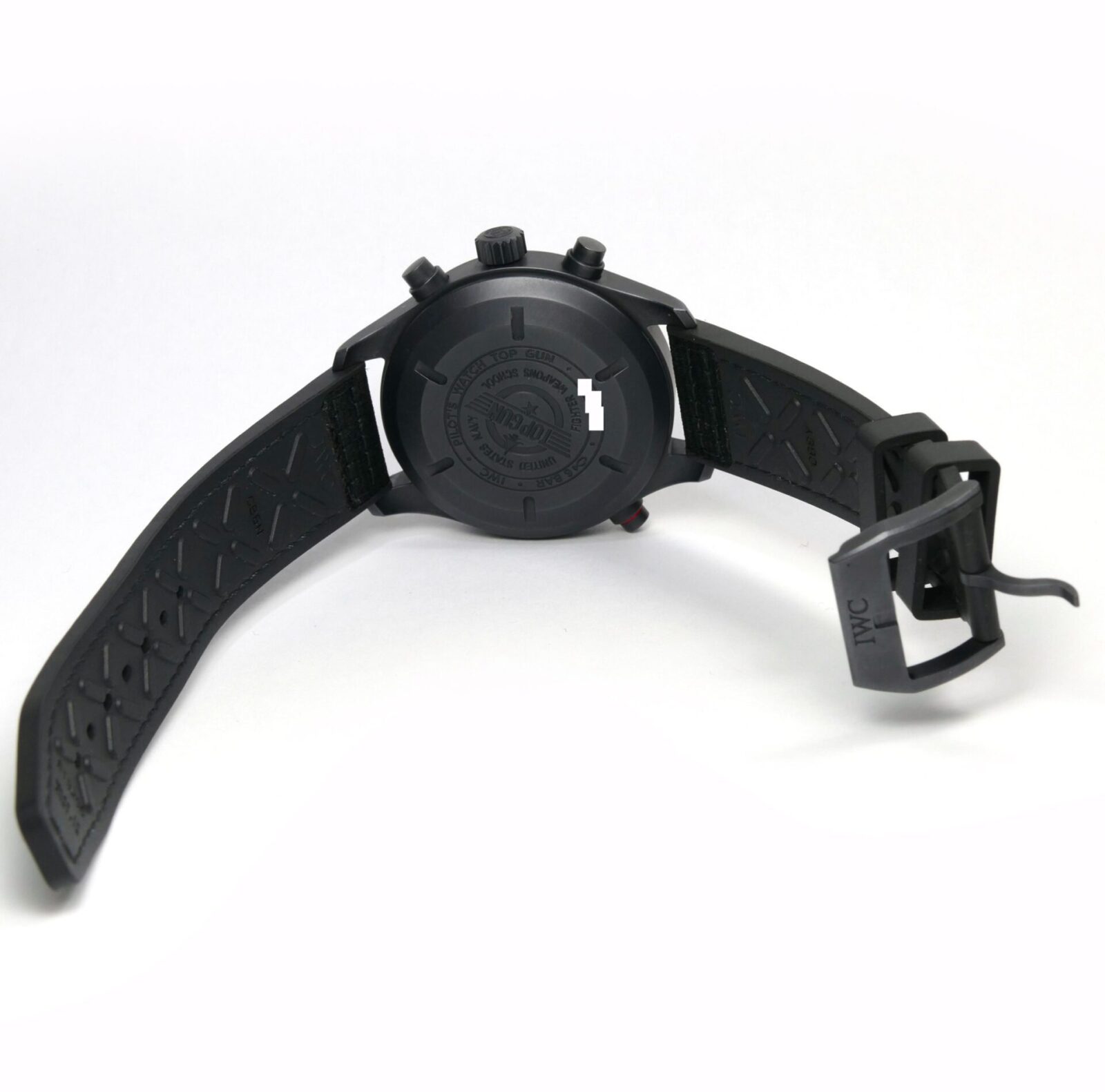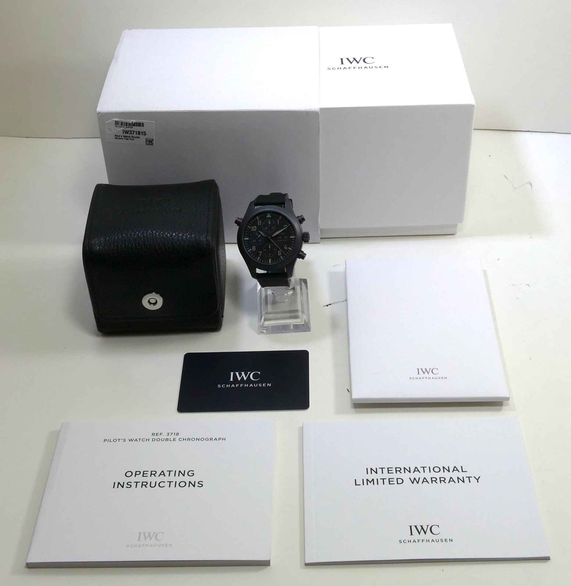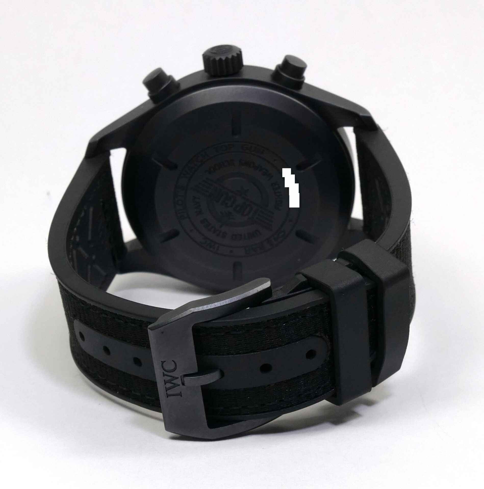 This IWC Pilots watch is in excellent condition and comes with box, papers, and warranty card. This watch features a black dial with a black ceratanium case, a self winding movement with a 44 hour power reserve, a chronog...