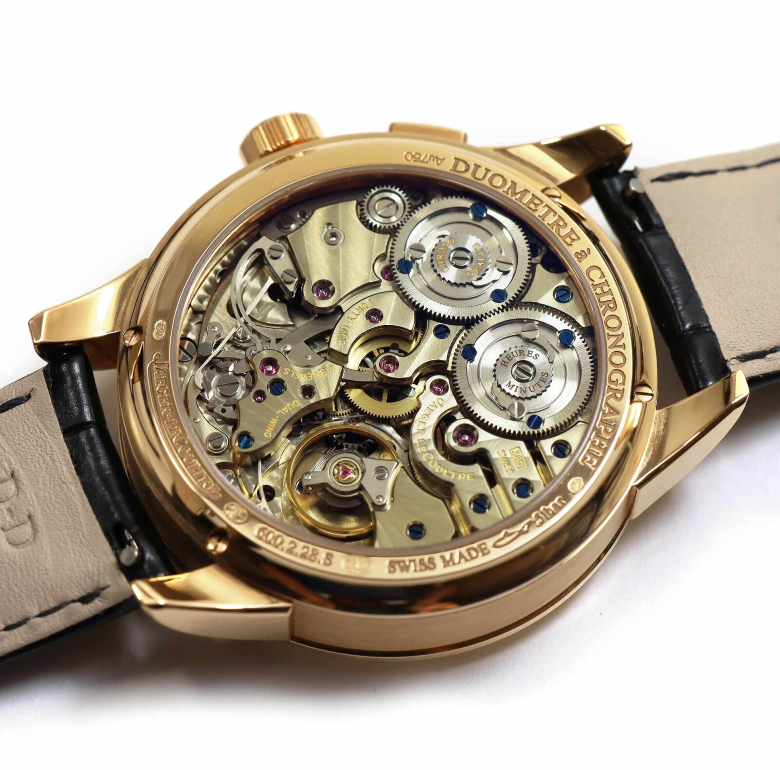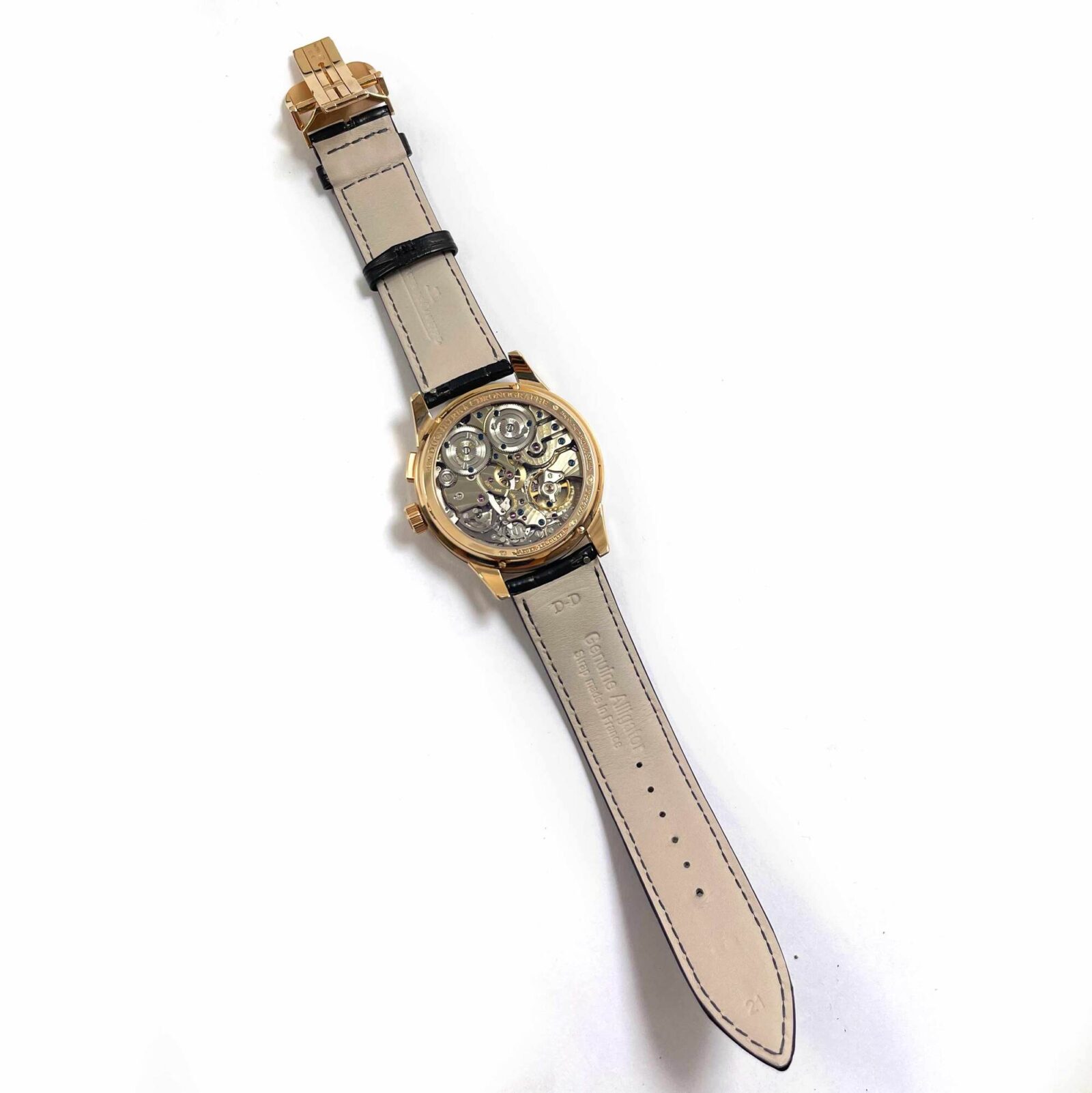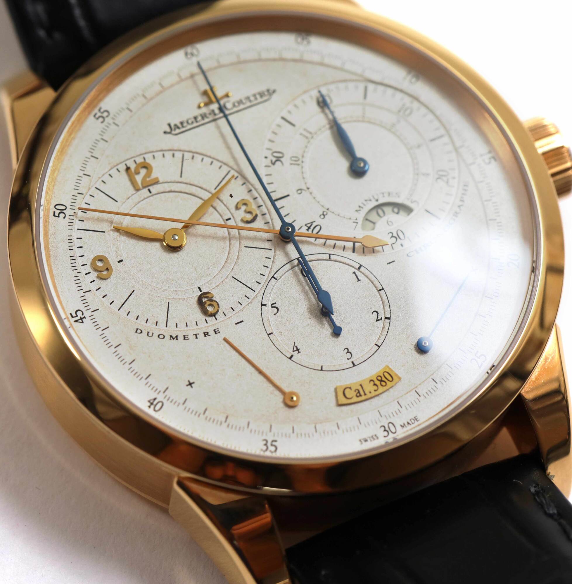 THIS JLC WATCH IS IN AMAZING OVERALL CONDITION AND COMES AS WATCH ONLY. THE HOUR MARKERS ON THE LEFT SUBDIAL DO SHOW SOME DISCOLORATION AS SHOWN IN PICTURE #2. THE BLACK LEATHER STRAP FOR THIS WATCH APPEARS TO BE UNWORN. THIS JLC IS IN STOCK AND AVAILABLE T...