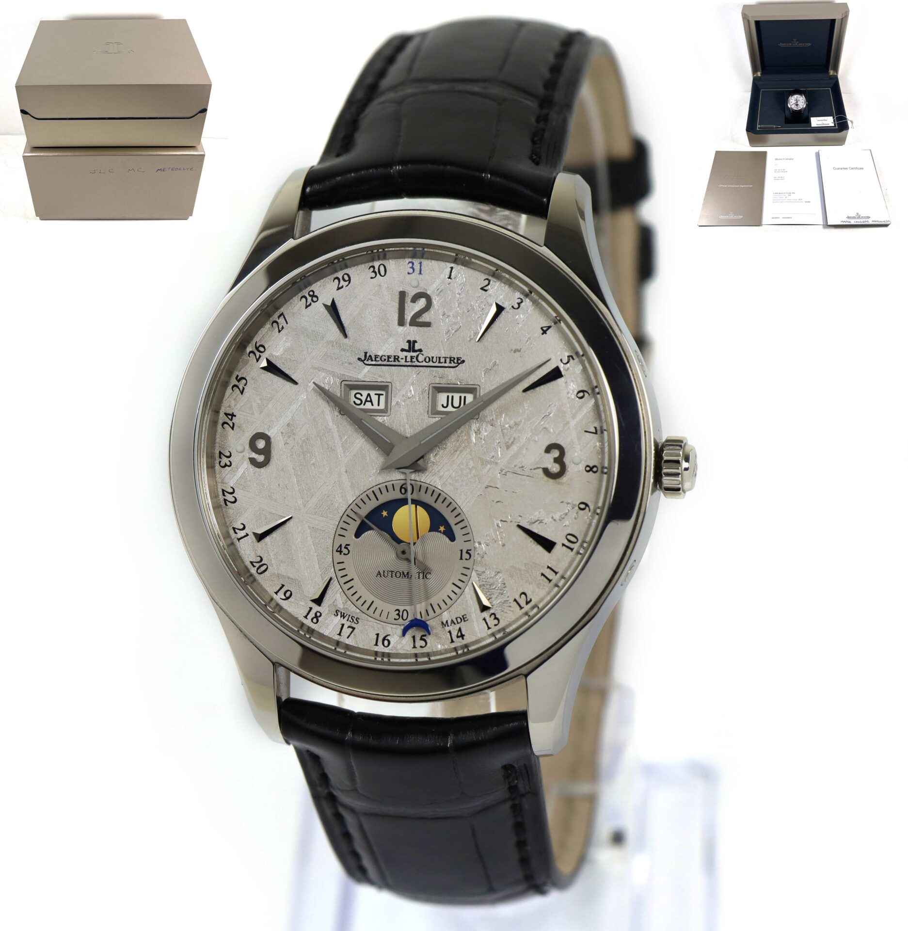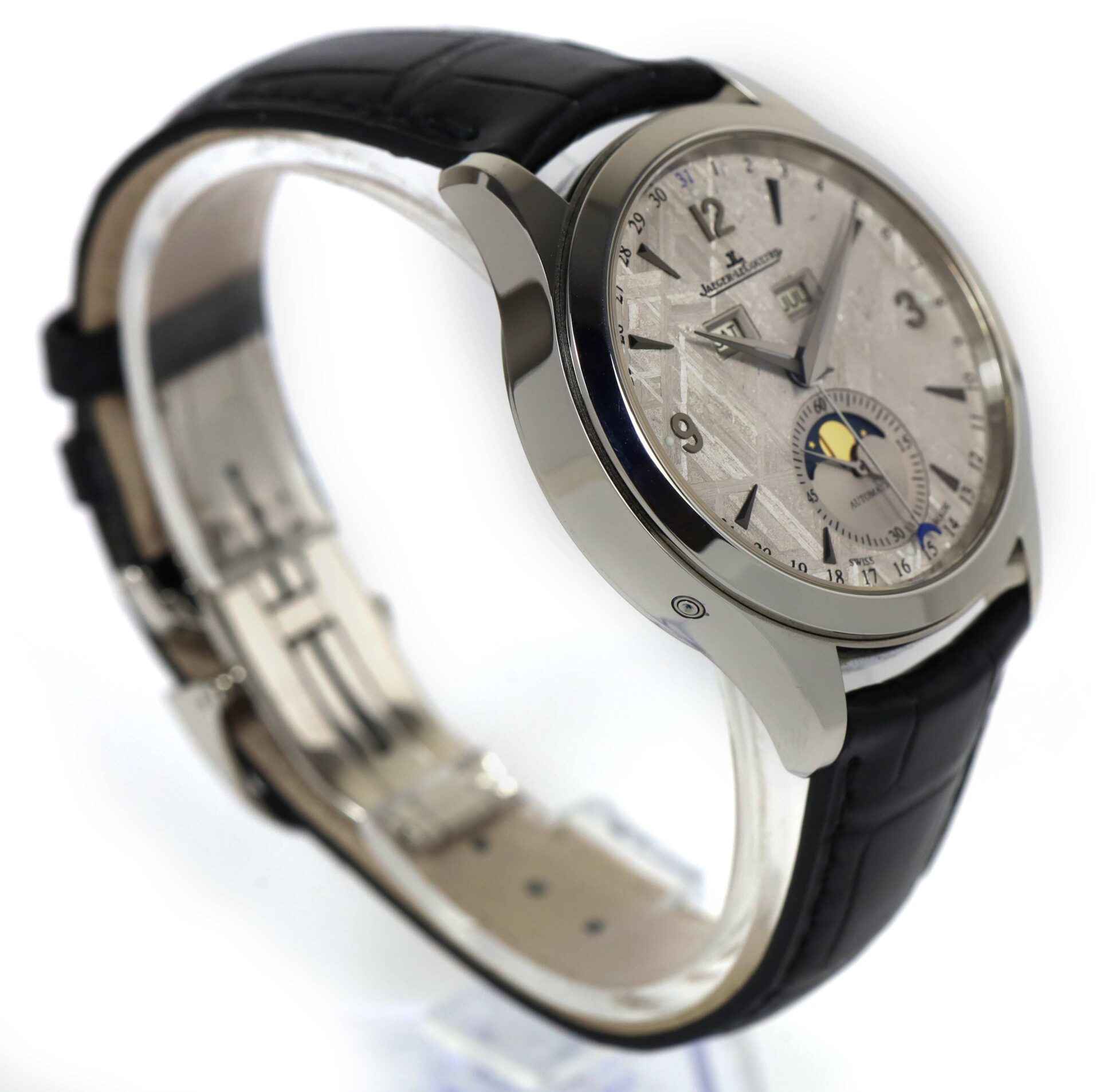 Read Morethis jaeger lecoultre watch is in excellent condition and comes with its box, papers, jlc tool, hang tag, and warranty booklet as shown in the pictures attached. This watch features a 39mm stainless steel case that surrounds a meteorite dial and comes on a leather bracelet with a steel deployant clasp. The watch functions include hours, minutes, small seconds, day, date, month and moon phase. This watch is in stock and available to ship immediately!