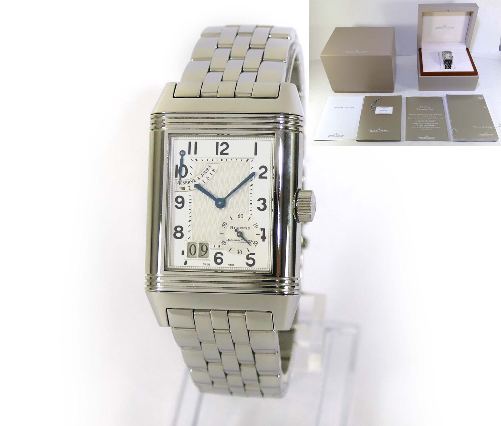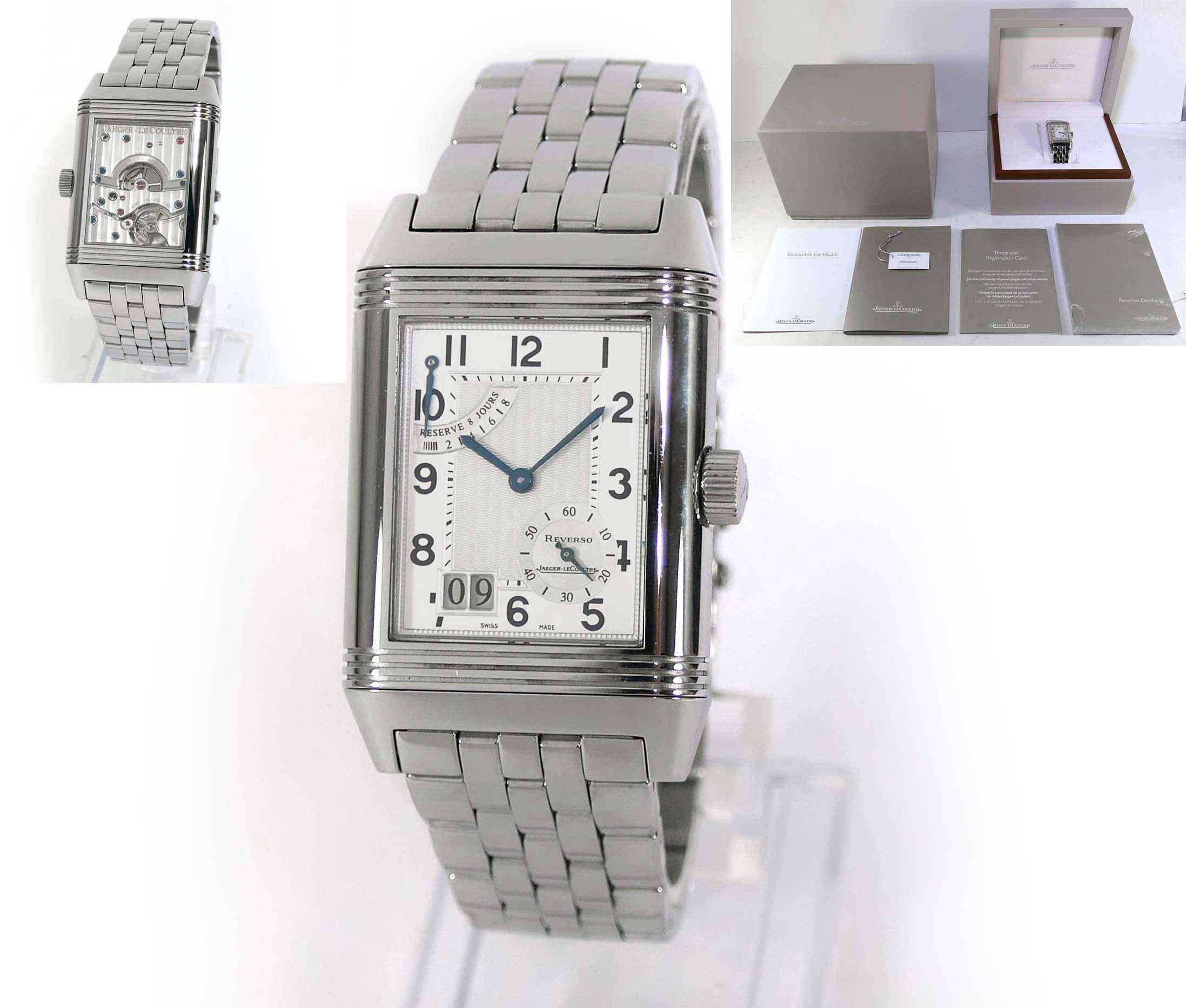 Jaeger LeCoultre Reverso Grande Date Silver Dial Q3008120 240.8.15 Box Papers