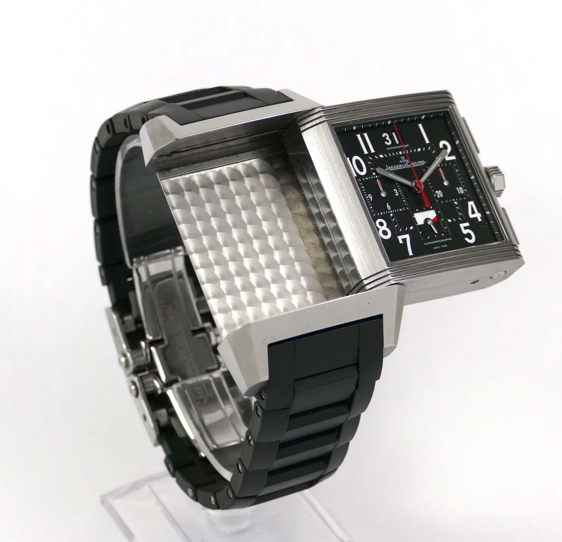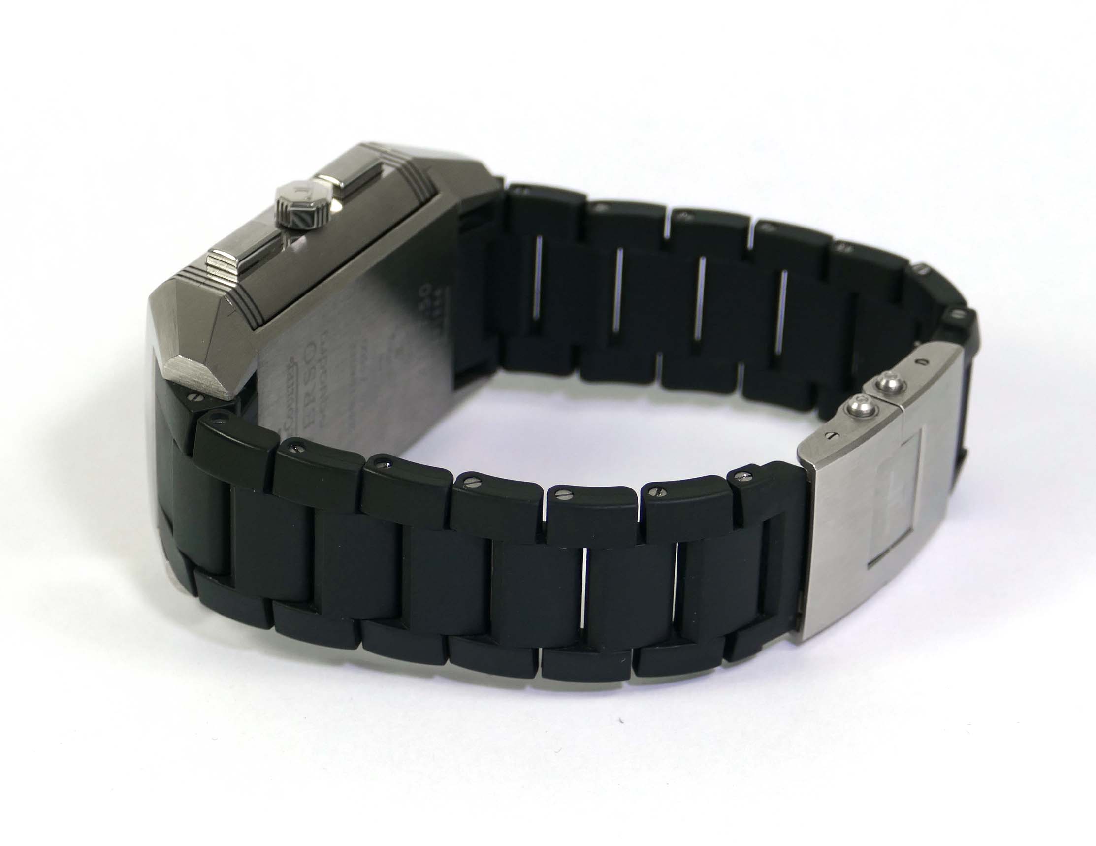 Read Morethis watch is in excellent overall condition and comes with its complete set of box and papers. The rubber bracelet has all of its original links, this watch will fit a large wrist. This is a big watch, measuring at 42.5mm by 36mm.