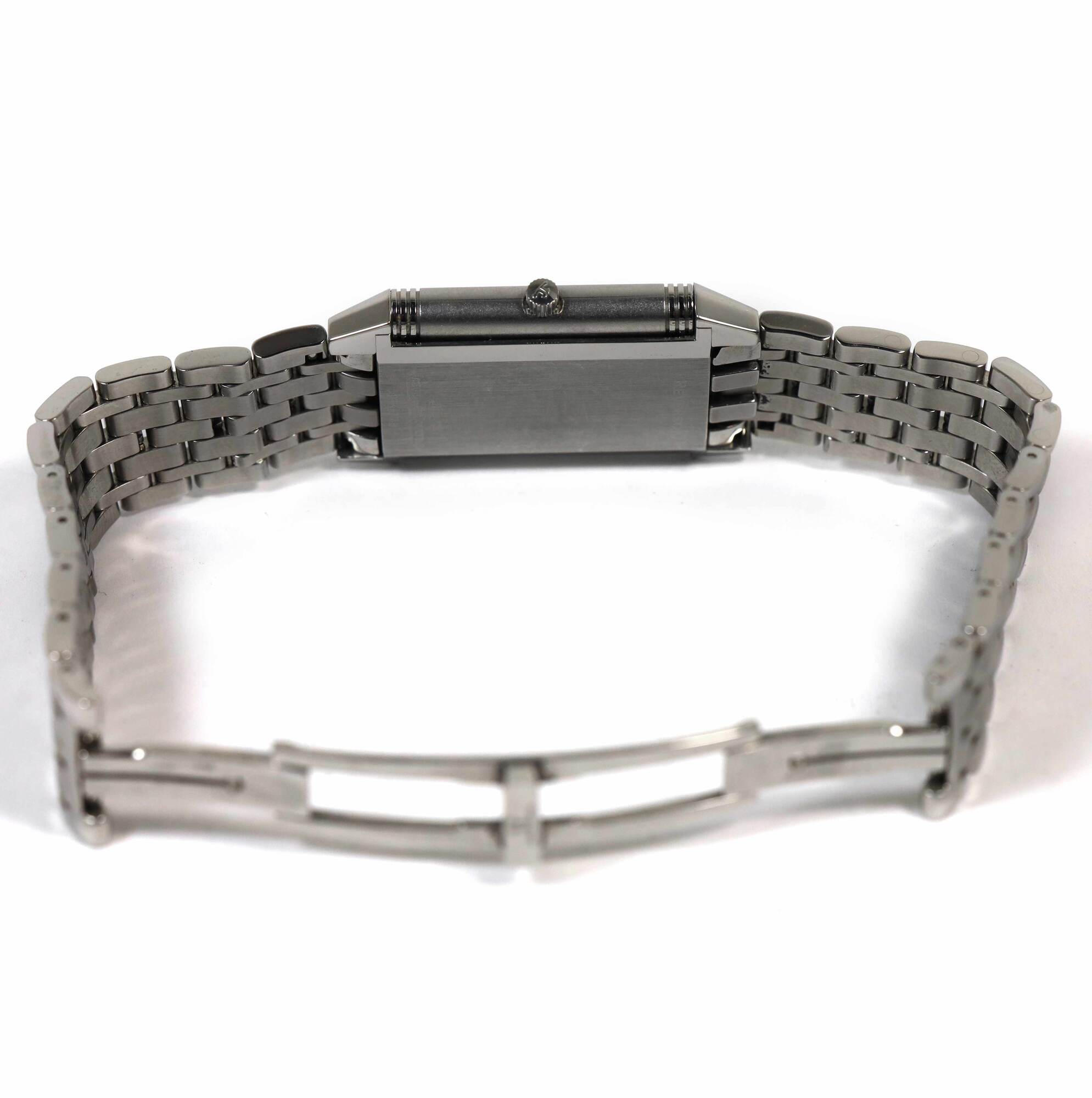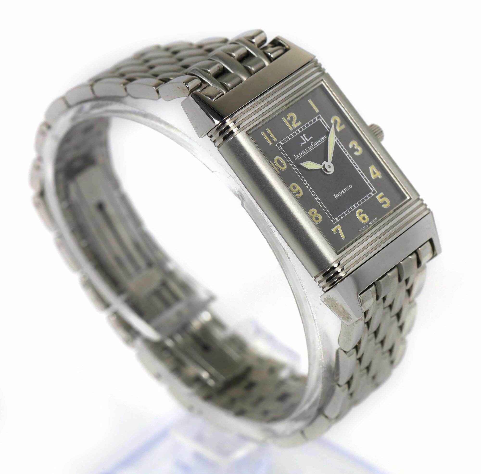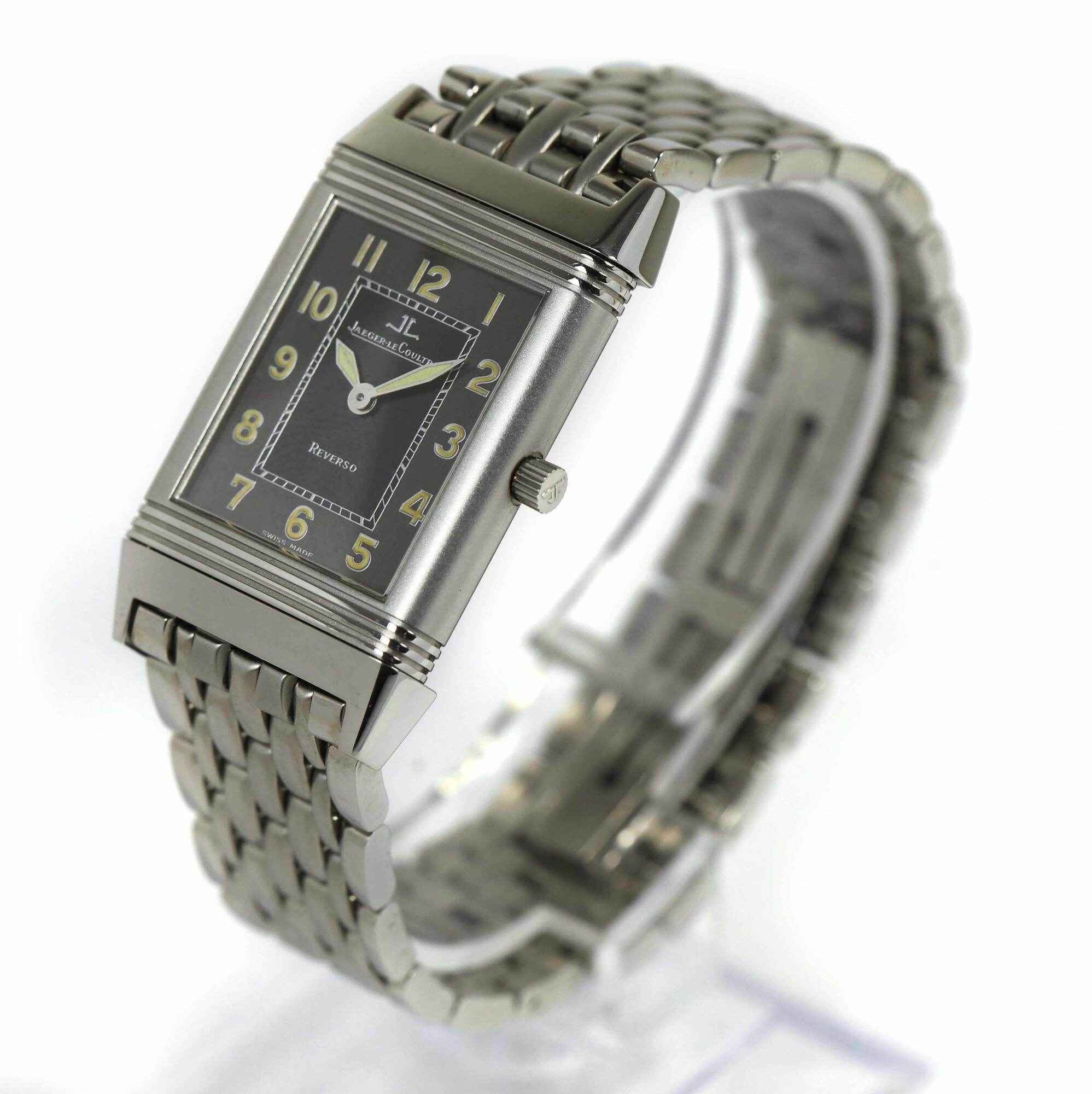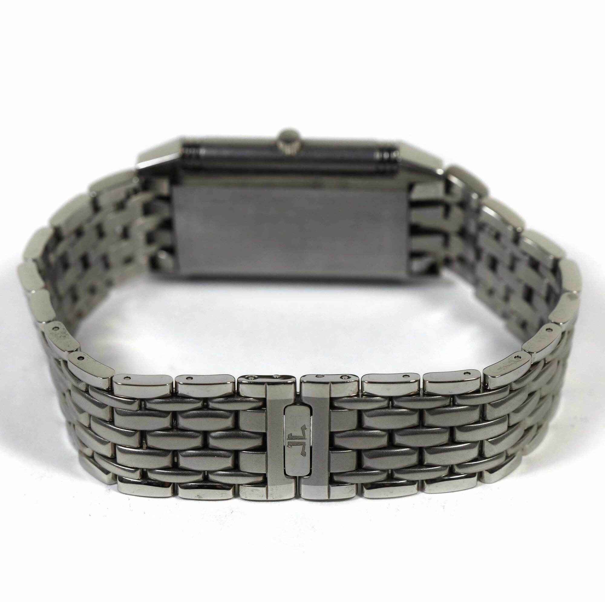 THIS JAEGER-LECOULTRE IS IN EXCELLENT OVERALL CONDITION AND COMES WITH ITS BOX, BOOKLETS, SPARE LINKS, HANG TAG, AND WARRANTY PAPER AS SHOWN IN THE PICTURES ATTACHED. THIS WATCH HAS THE PREVIOUS OWNERS INITIALS "HG" ENGRAVED ON ONE SIDE OF THE CASE AS SHOWN...