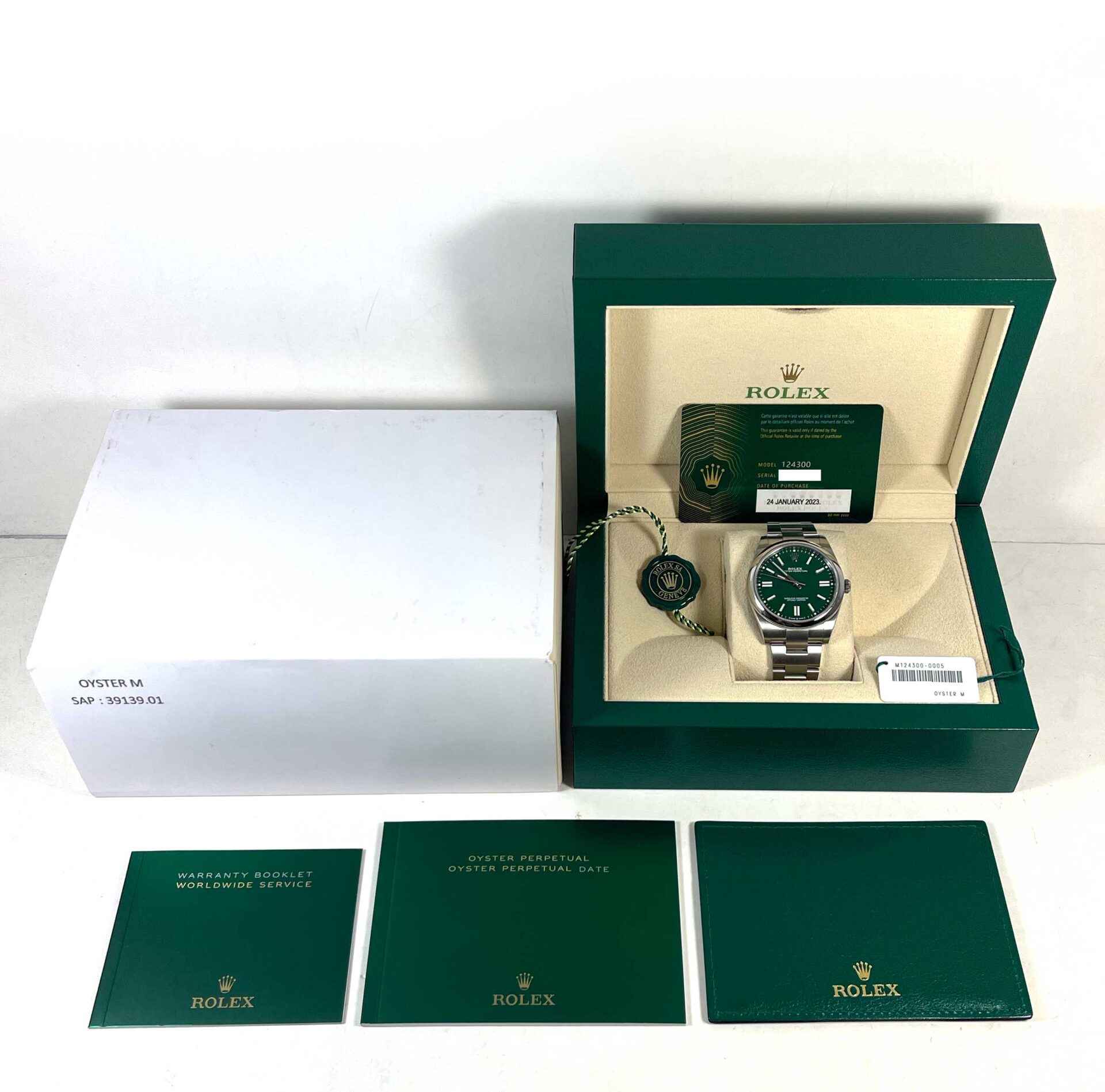 This watch is brand new and comes with its original box, booklets, hang tags, and warranty card dated January 24th, 2023. This watch is in stock and available to ship immediately.