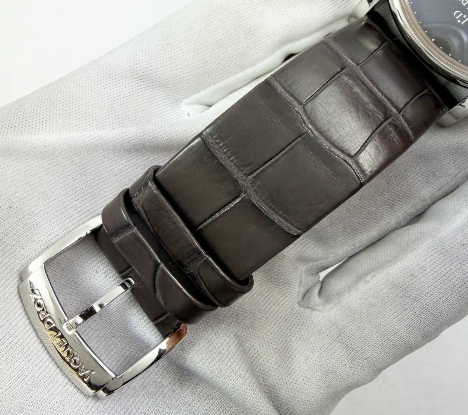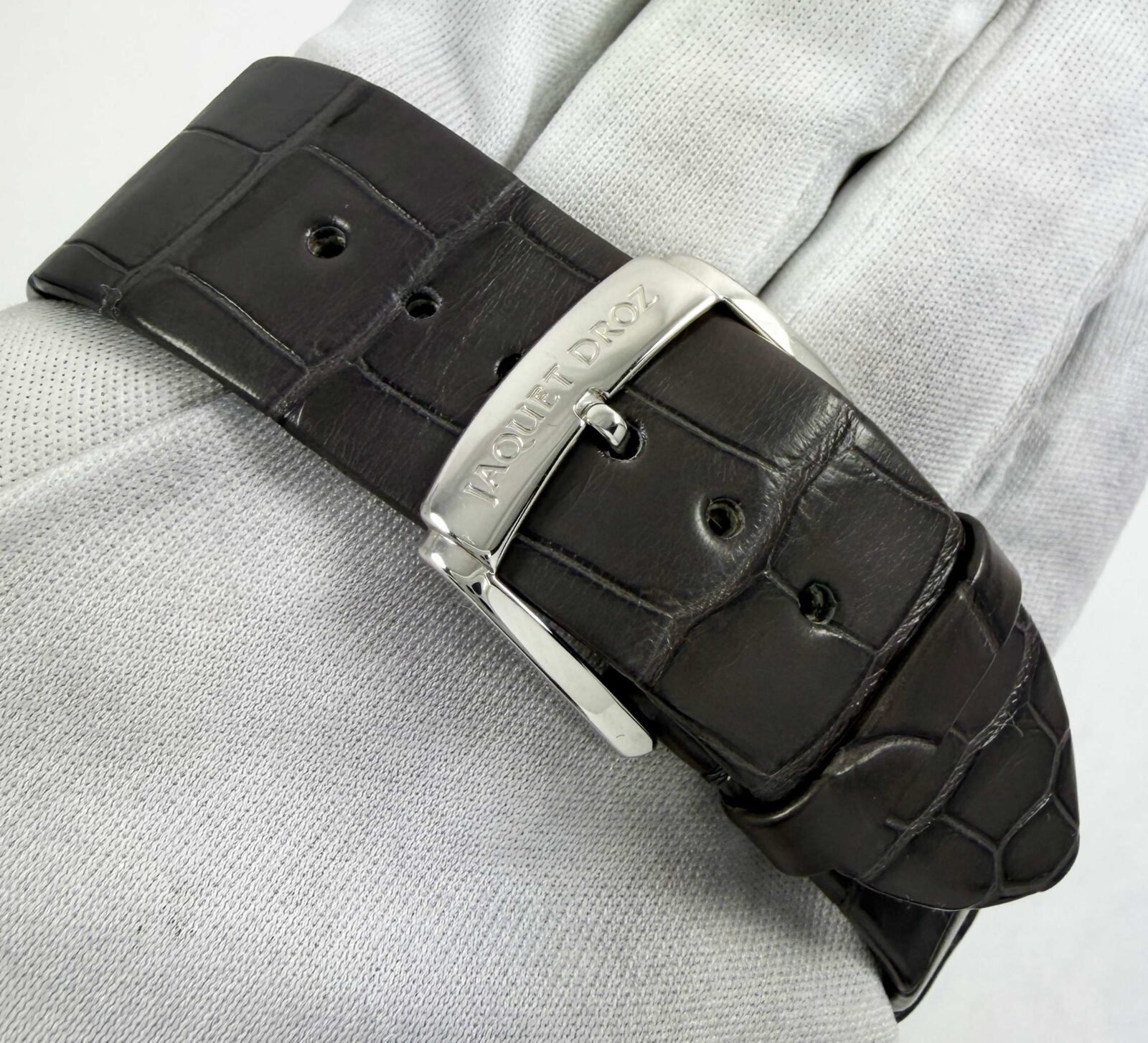 This Jaquet-Droz watch comes with its box, booklet, hang tag, and warranty card dated January 2023. The photos shown are of the exact watch being sold and accurately represent its condition. This watch is in stock and ready to ship immediately!