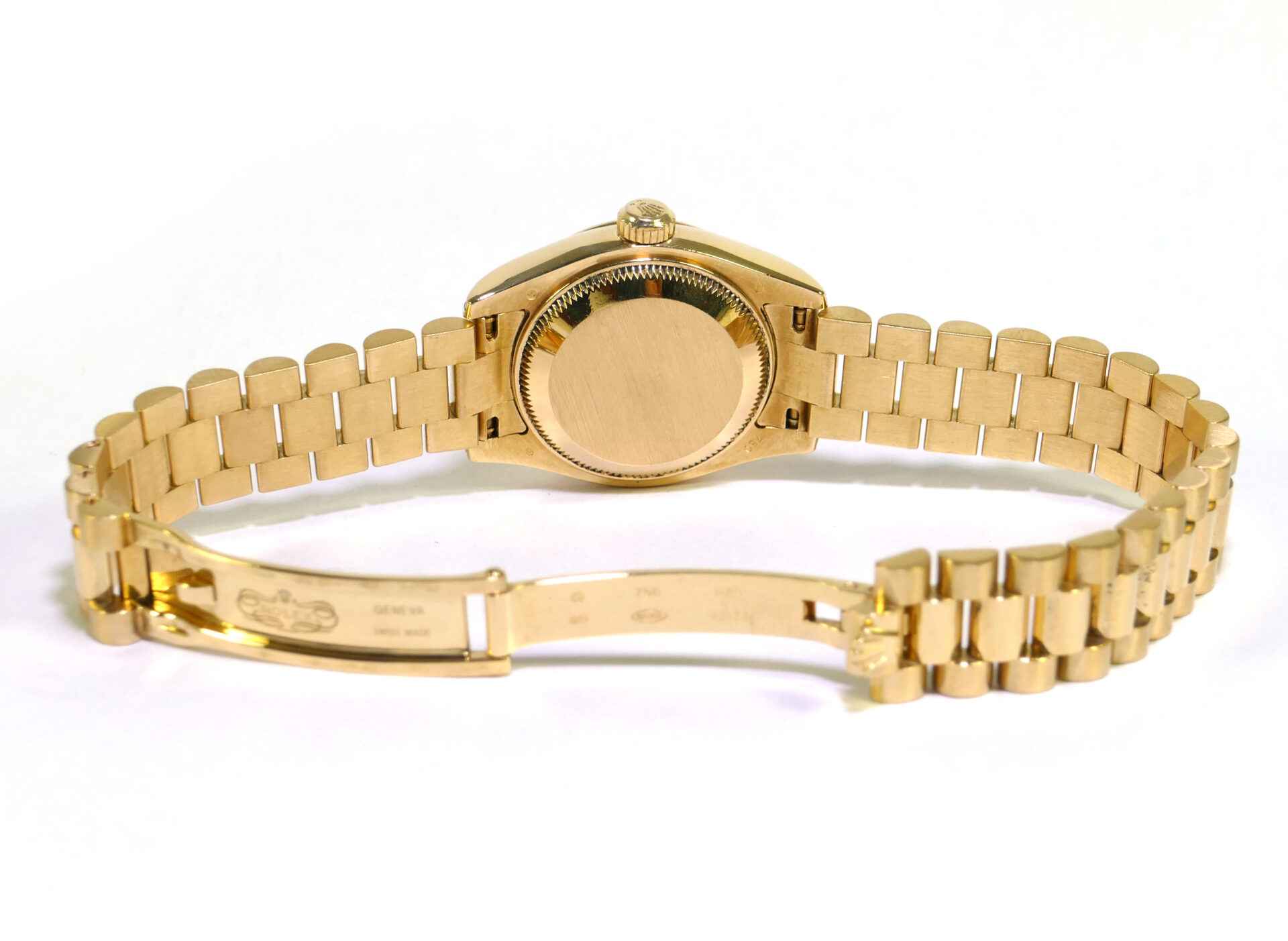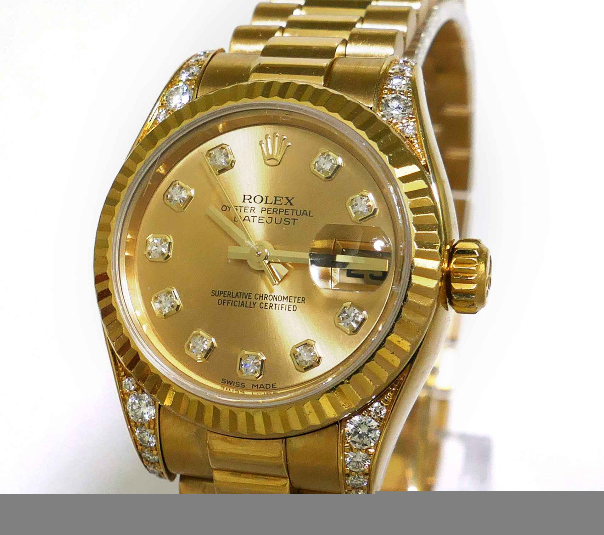 This Ladies Rolex President is 100% all original, nothing is aftermarket or custom. The case and bracelet are in near-mint condition, check the photo to see how tight the bracelet is! It features beautiful factory set...