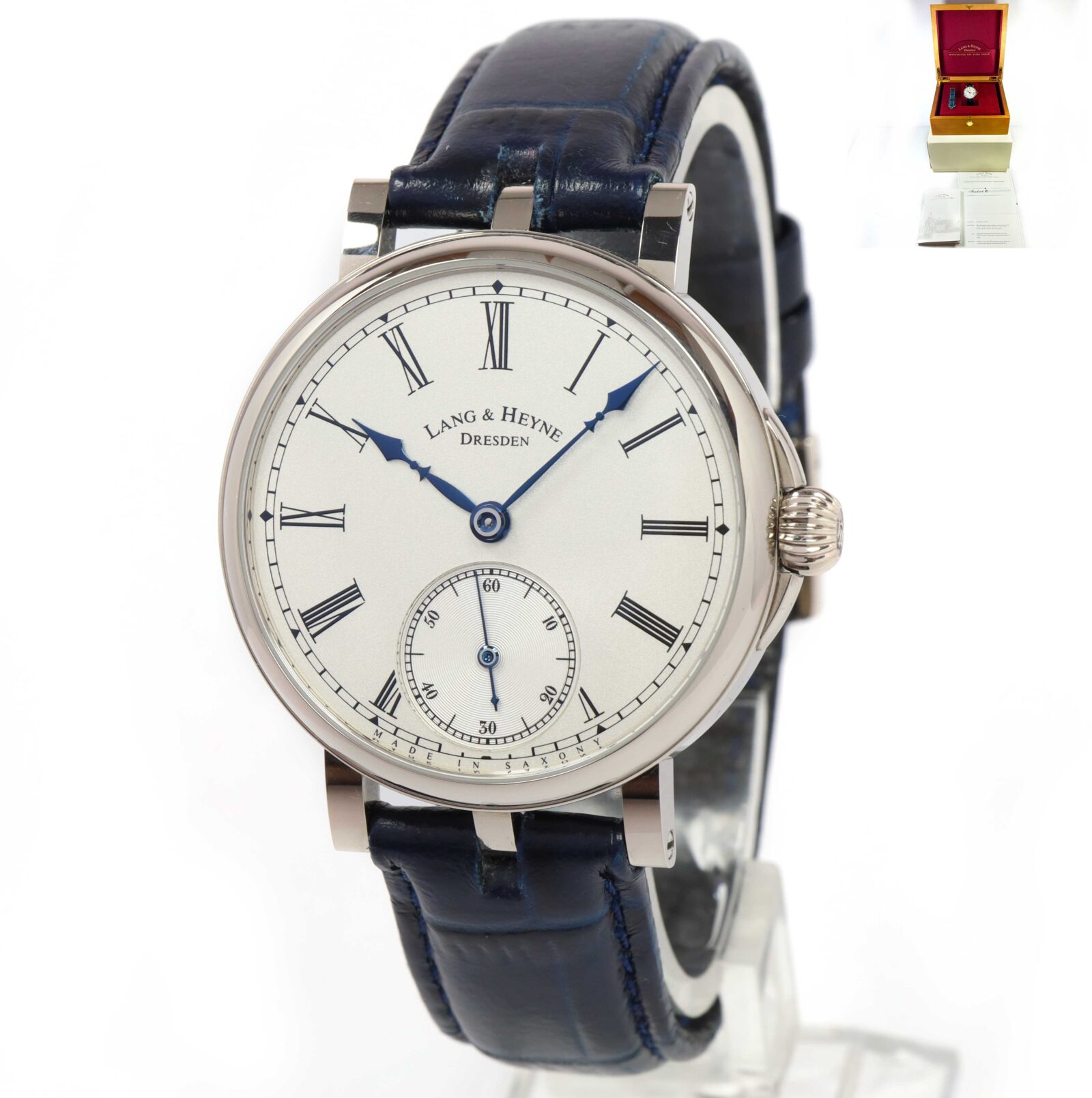 this lange & heyne watch is in amazing overall condition and comes with its box, booklet, and warranty paper as shown in the pictures attached. This watch is in stock and available to ship immediately!