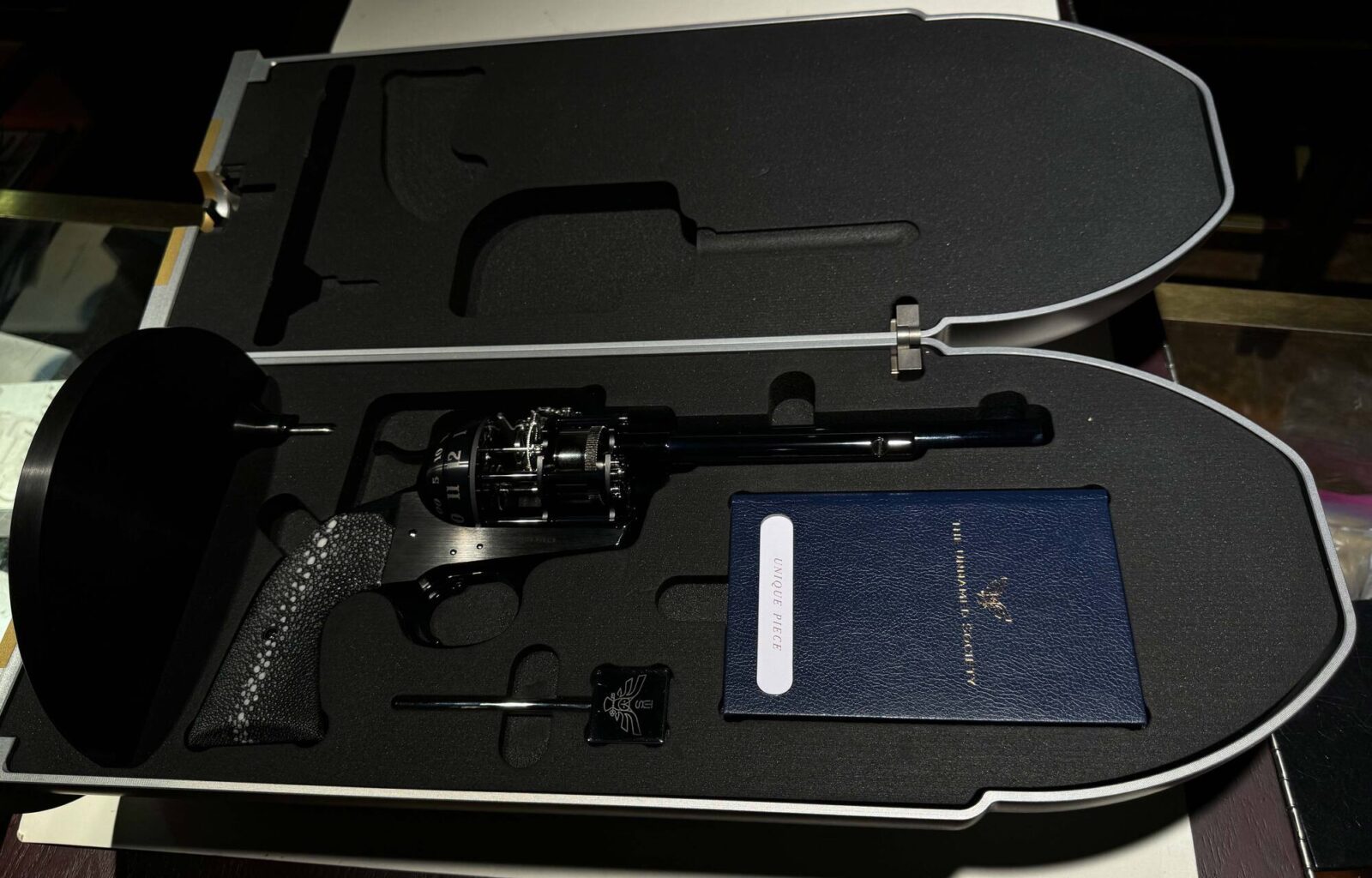 Read Morefor sale is a piece unique 1/1 custom l’epee pistol clock, the case is black pvd and the handle is stingray. The pistol clocks from l’epee were very limited runs and instantly sold out globally, any that have ever been posted for sale online sell quick so here is a chance to own a brand new 2023 complete set piece unique under its original msrp! this was a special collaboration made for the unnamed society.