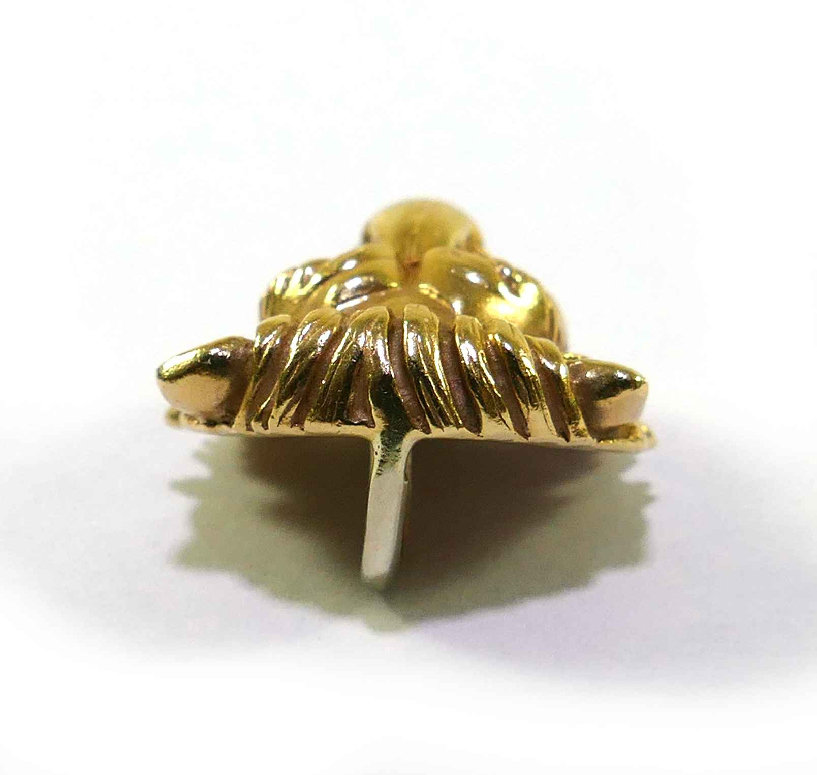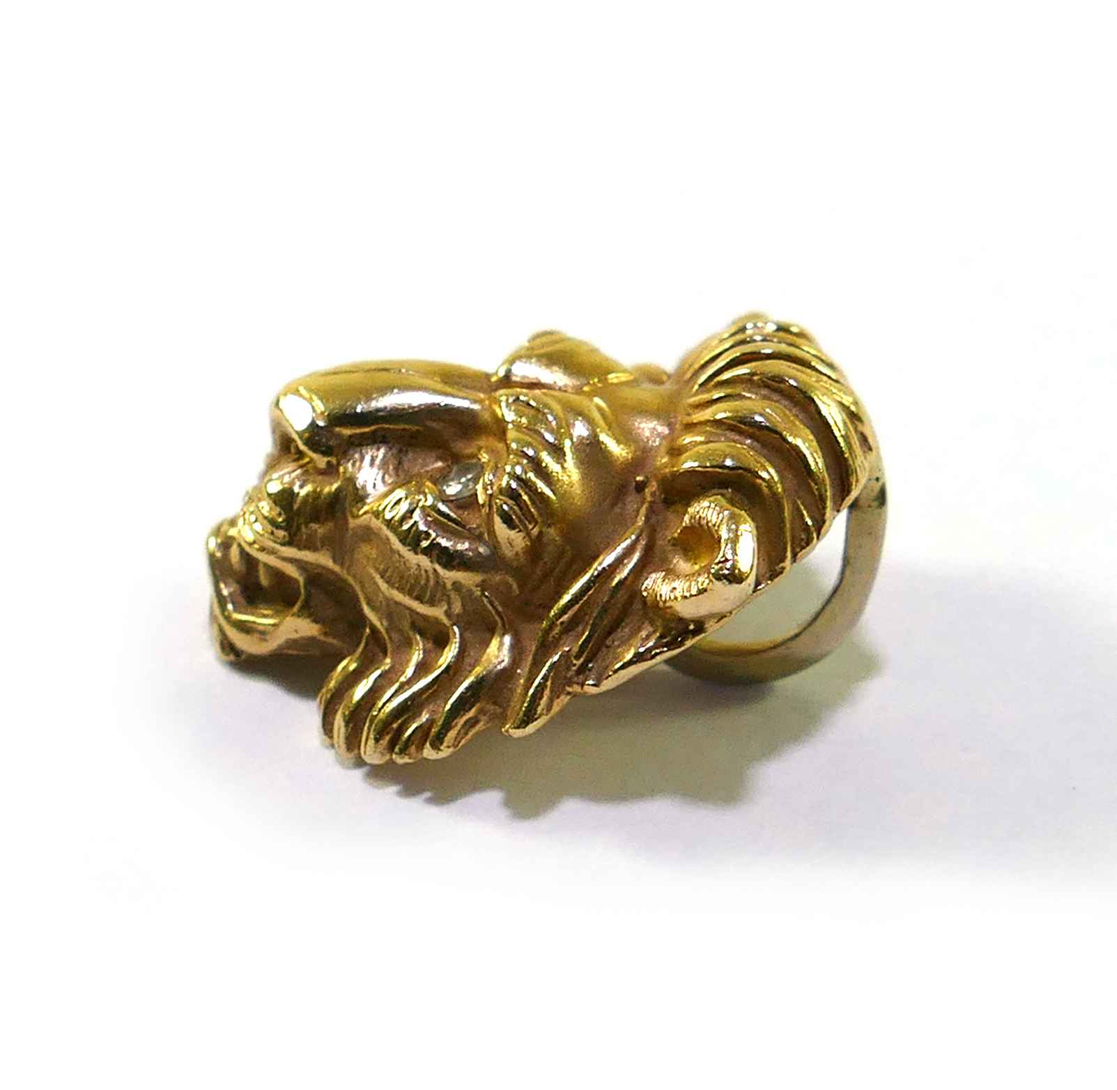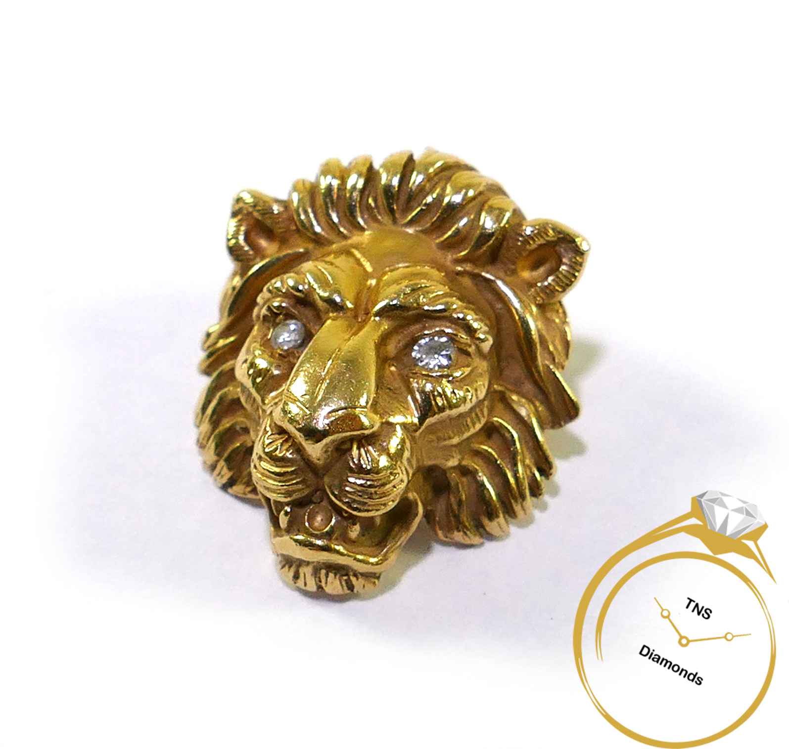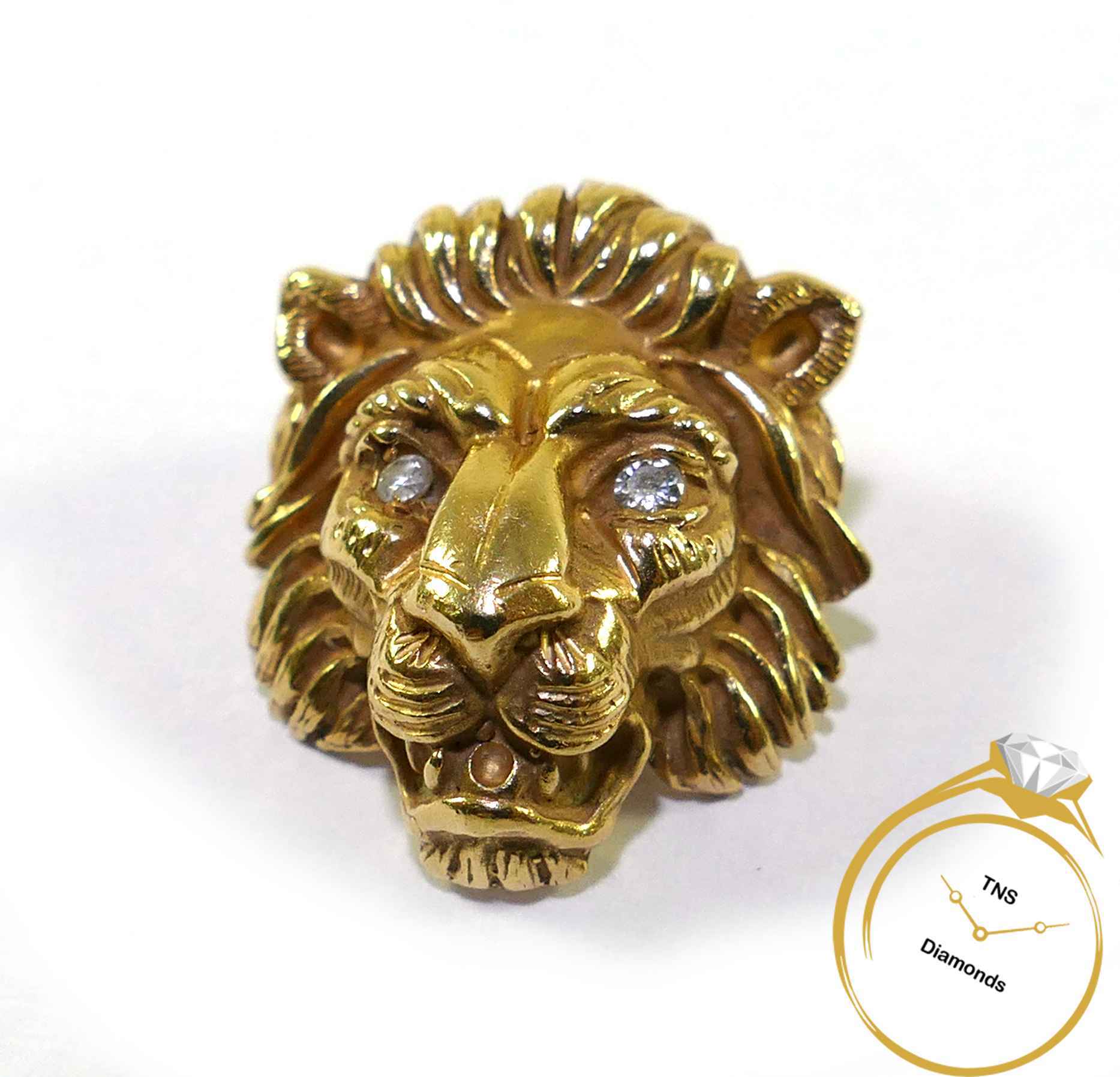 this realistic lion head pendant is one of a kind, with its striking personality and gleaming diamond eyes. The lion is super realistic looking, with extreme details crafted in 14k yellow gold.
