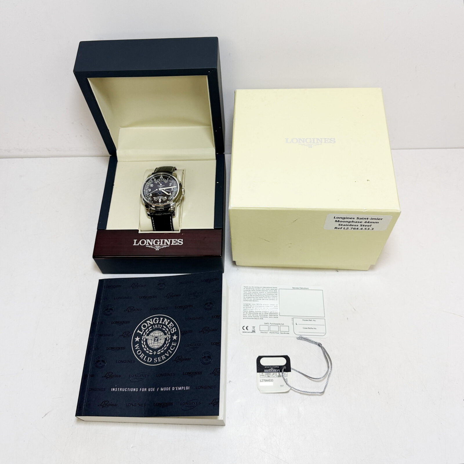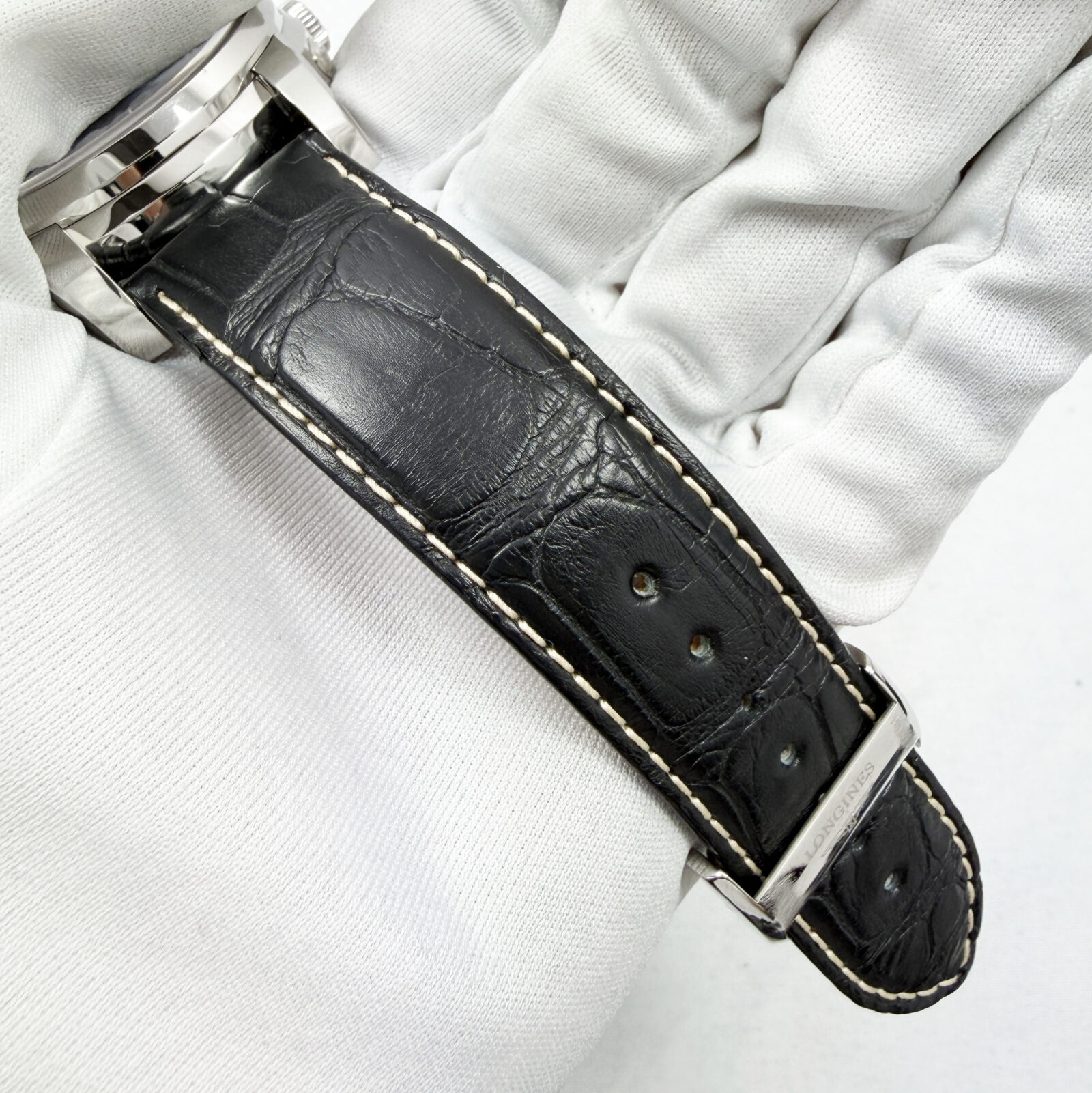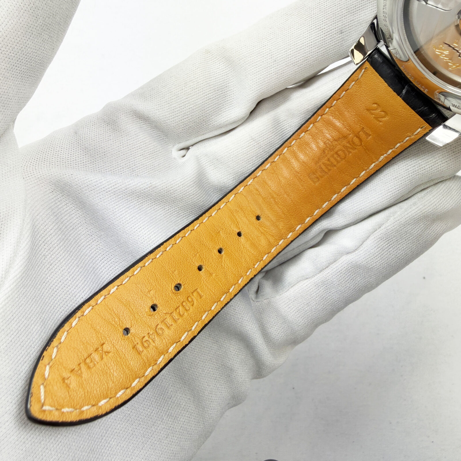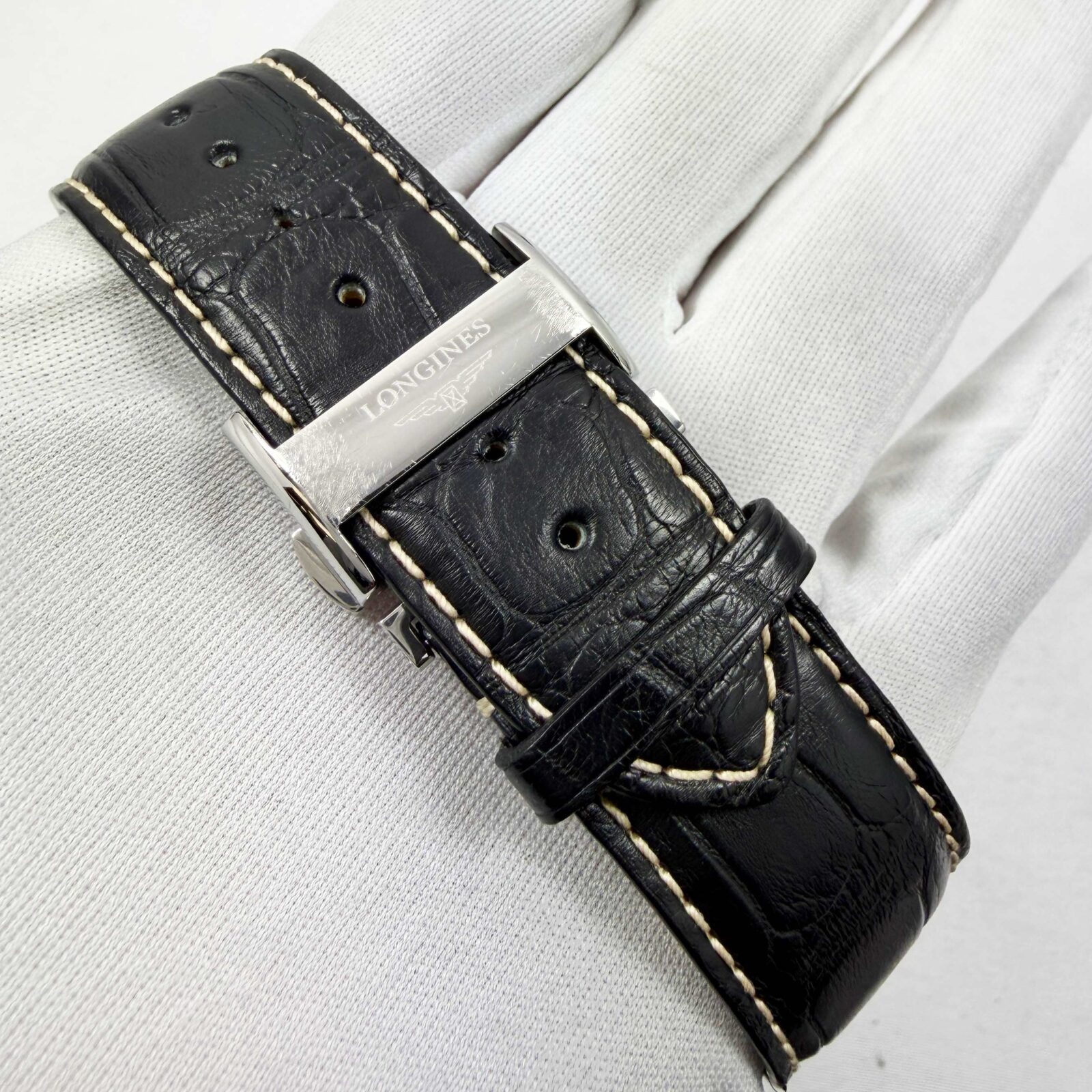 This Longines watch comes with its box, booklet, hangtag, and warranty card. The photos shown are of the exact watch being sold and accurately represent its condition. This watch is in stock and ready to ship immediately!