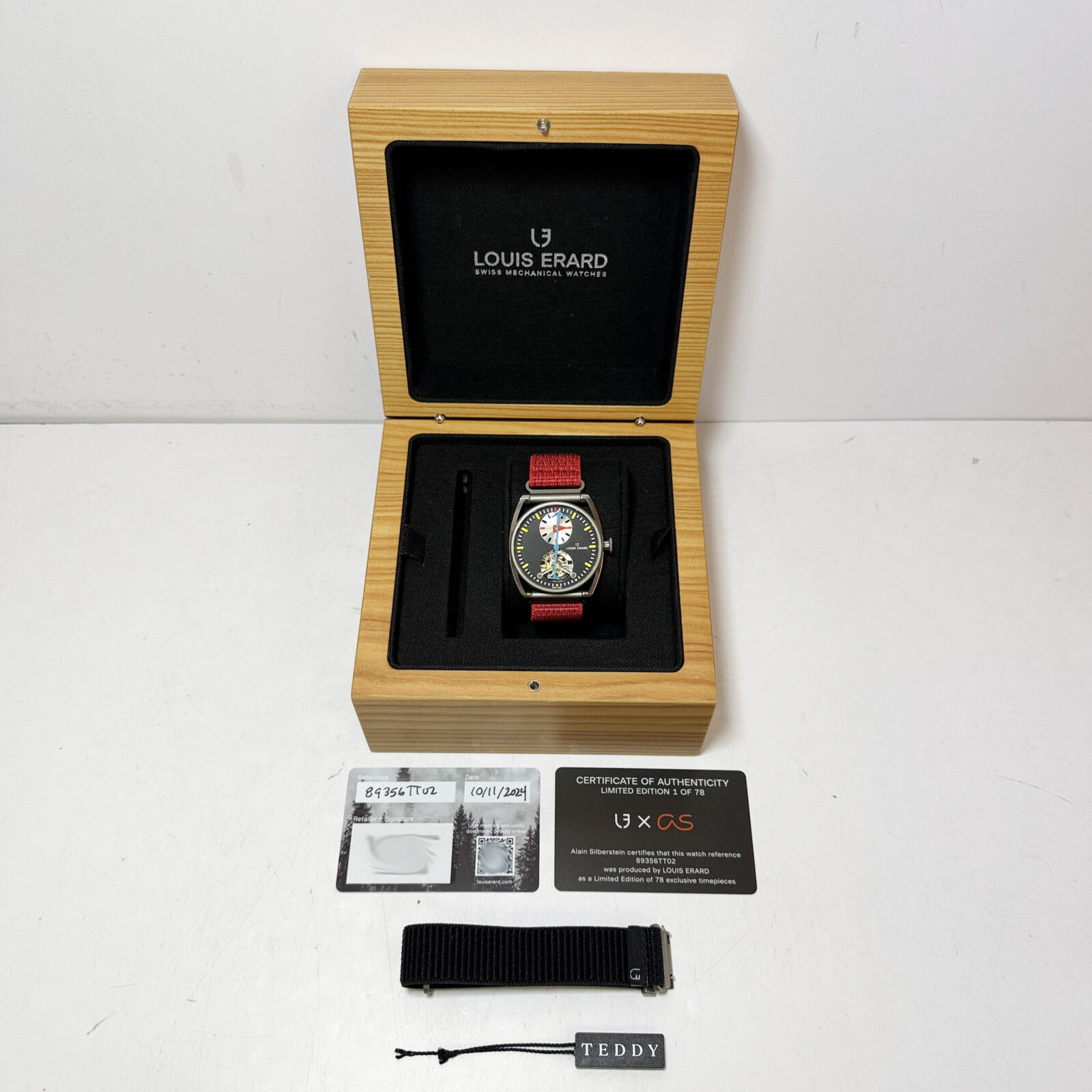 this louis erard watch is new and comes with its box, hang tag, extra strap, warranty cards dated october 11th, 2024. The photos shown are of the exact watch being sold and accurately represent its condition. This watch is in stock and ready to ship immediately!