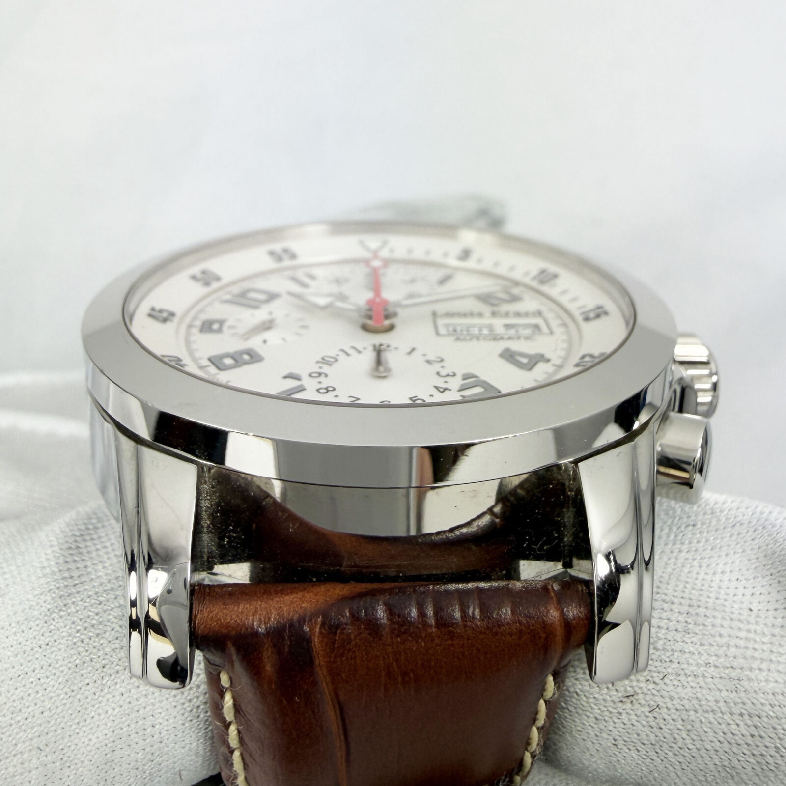 This Louis Erard watch comes with its box, booklets, and warranty card. The photos shown are of the exact watch being sold and accurately represent its condition. This watch is in stock and ready to ship immediately!