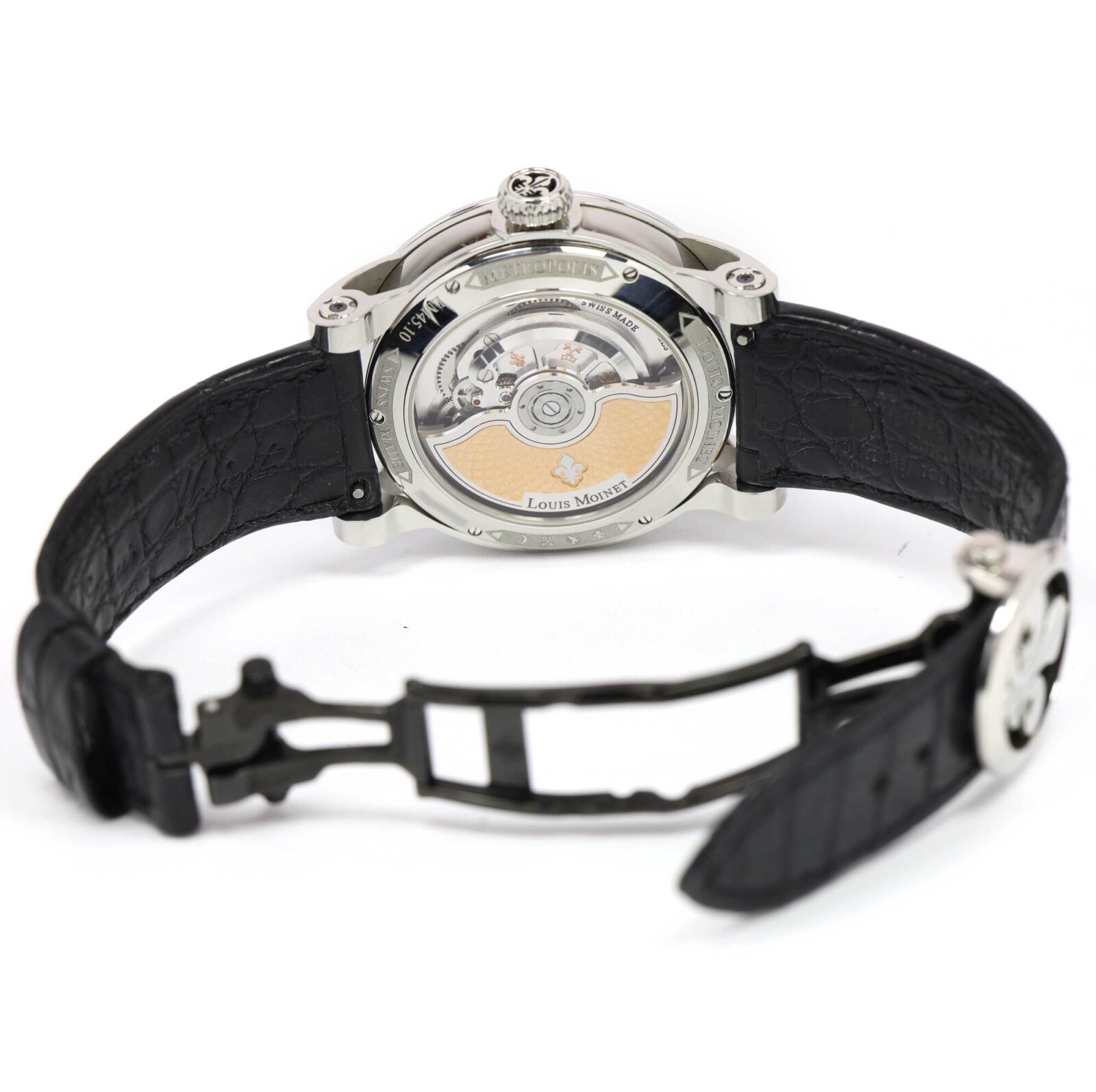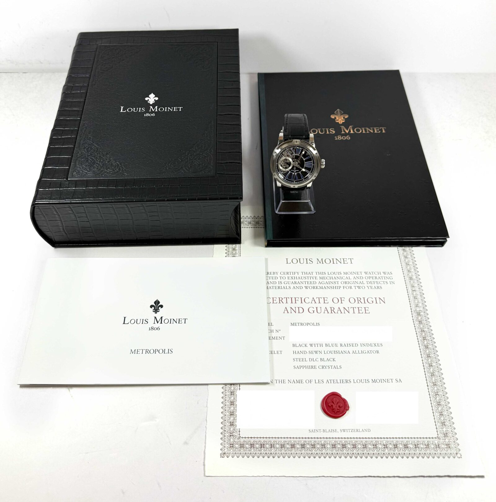 This Louis Moinet watch is in excellent condition and comes with its box, booklet, and warranty paper as shown in the pictures attached. This watch is in stock and available to ship immediately!