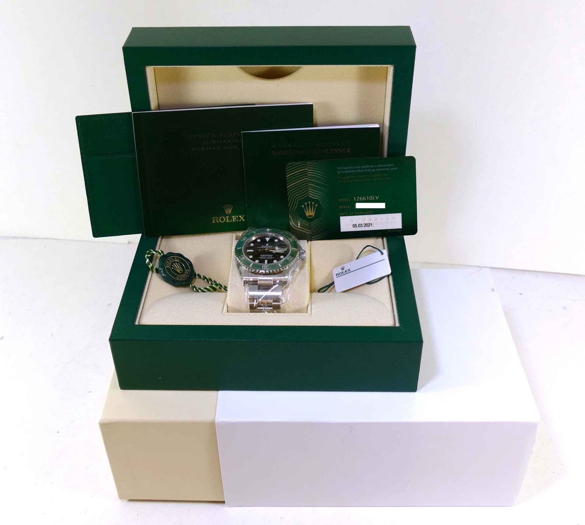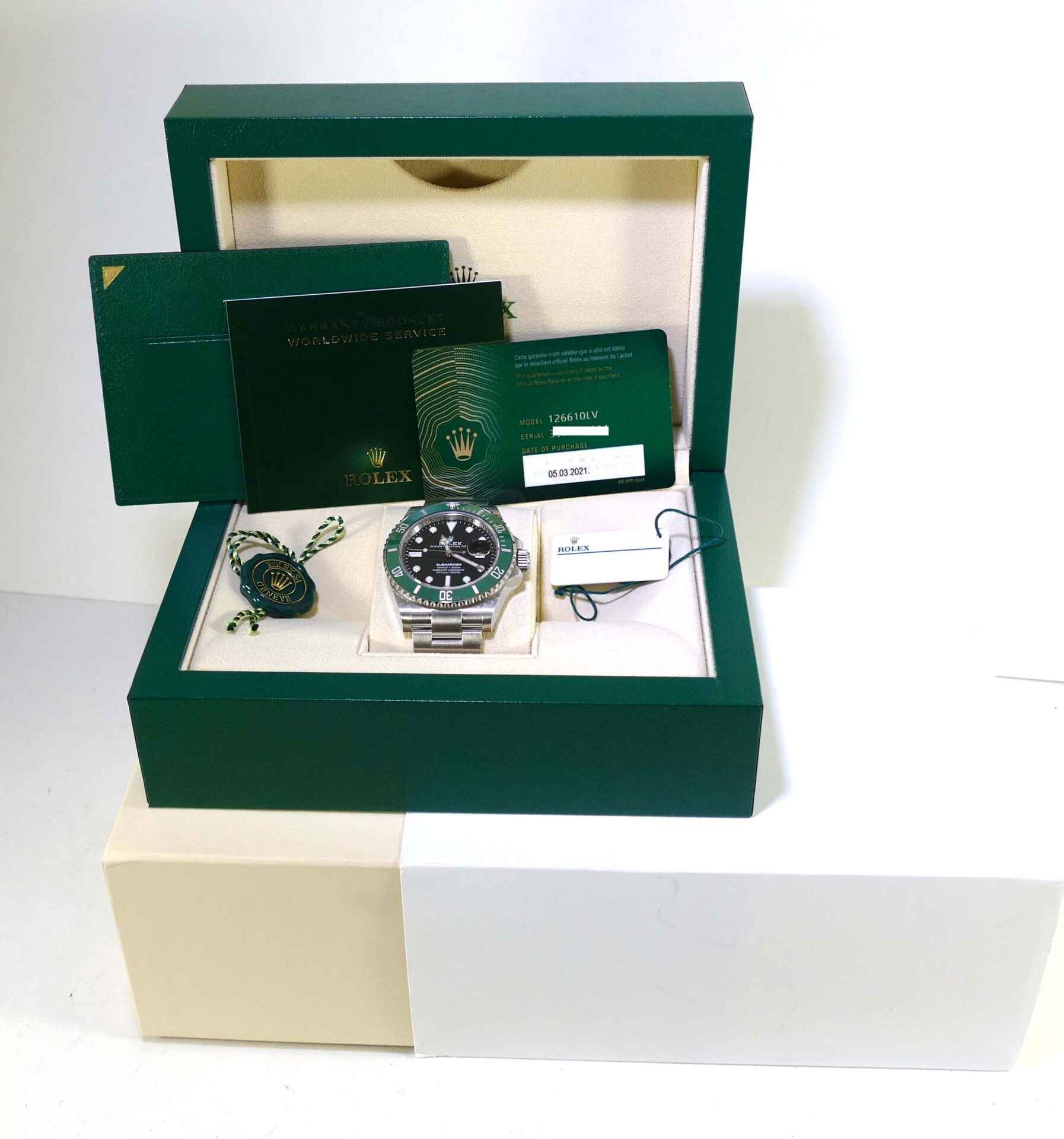 This watch is brand new, never worn, and comes with its box, booklet, hang tags, and warranty card dated March 5th, 2021.