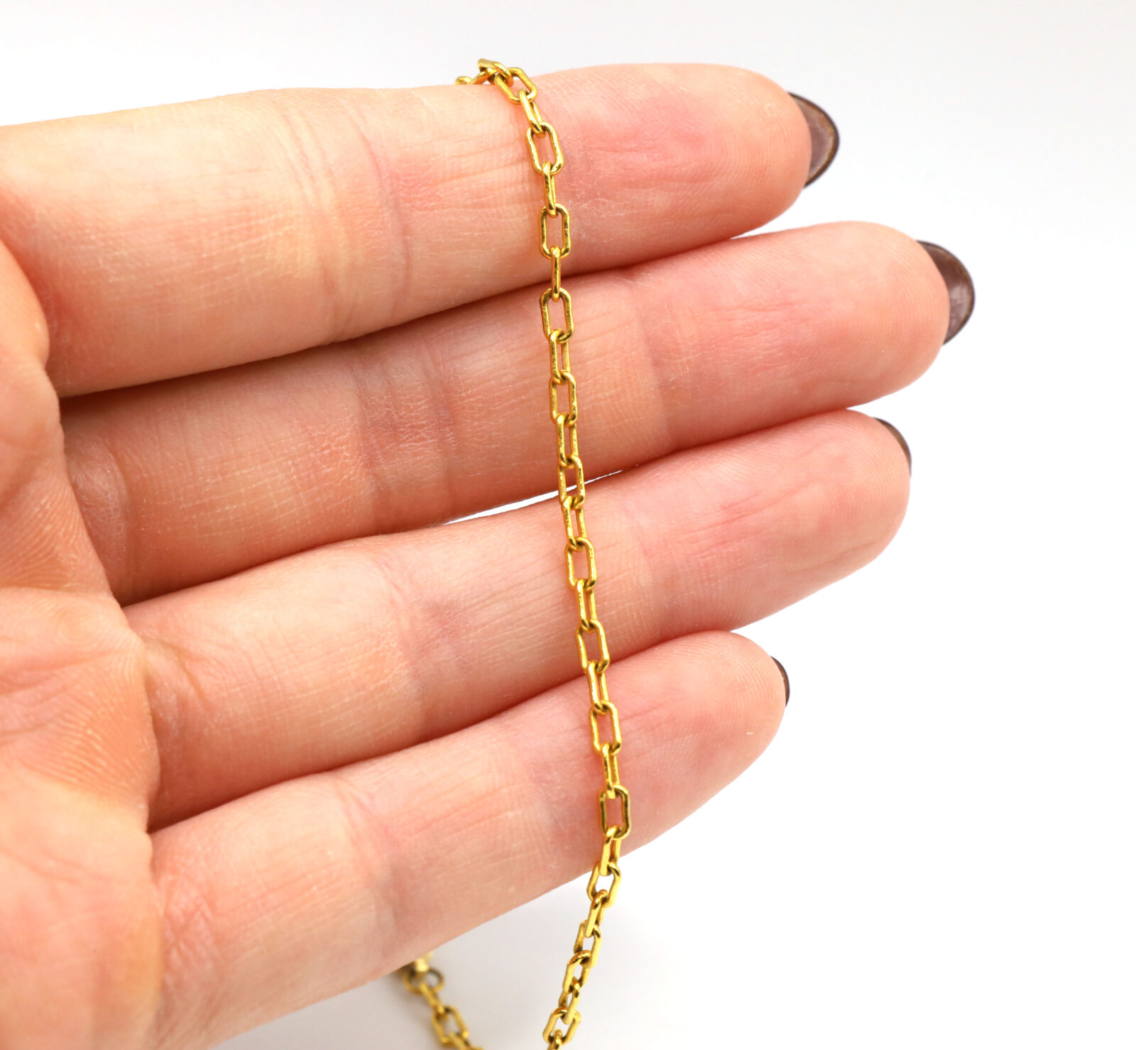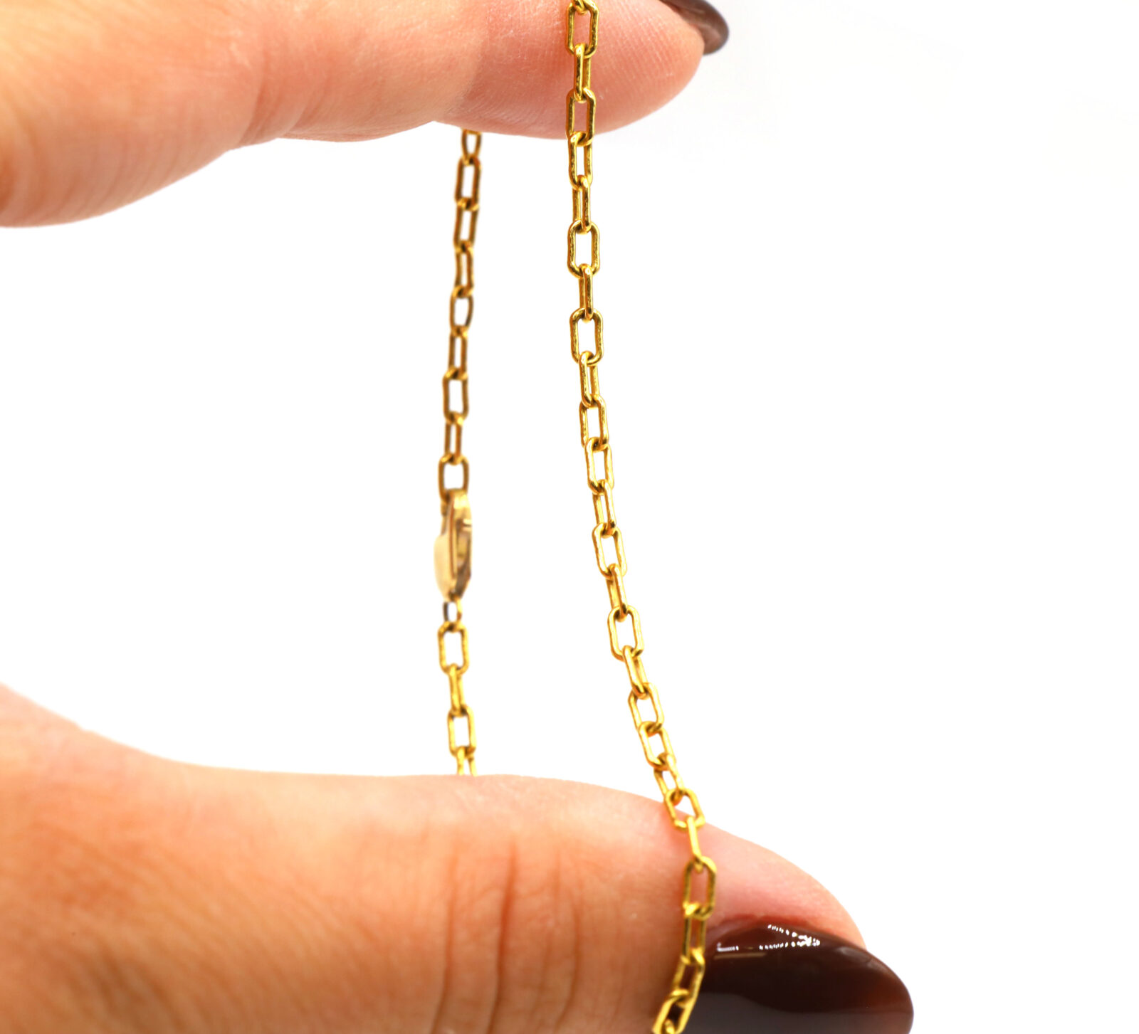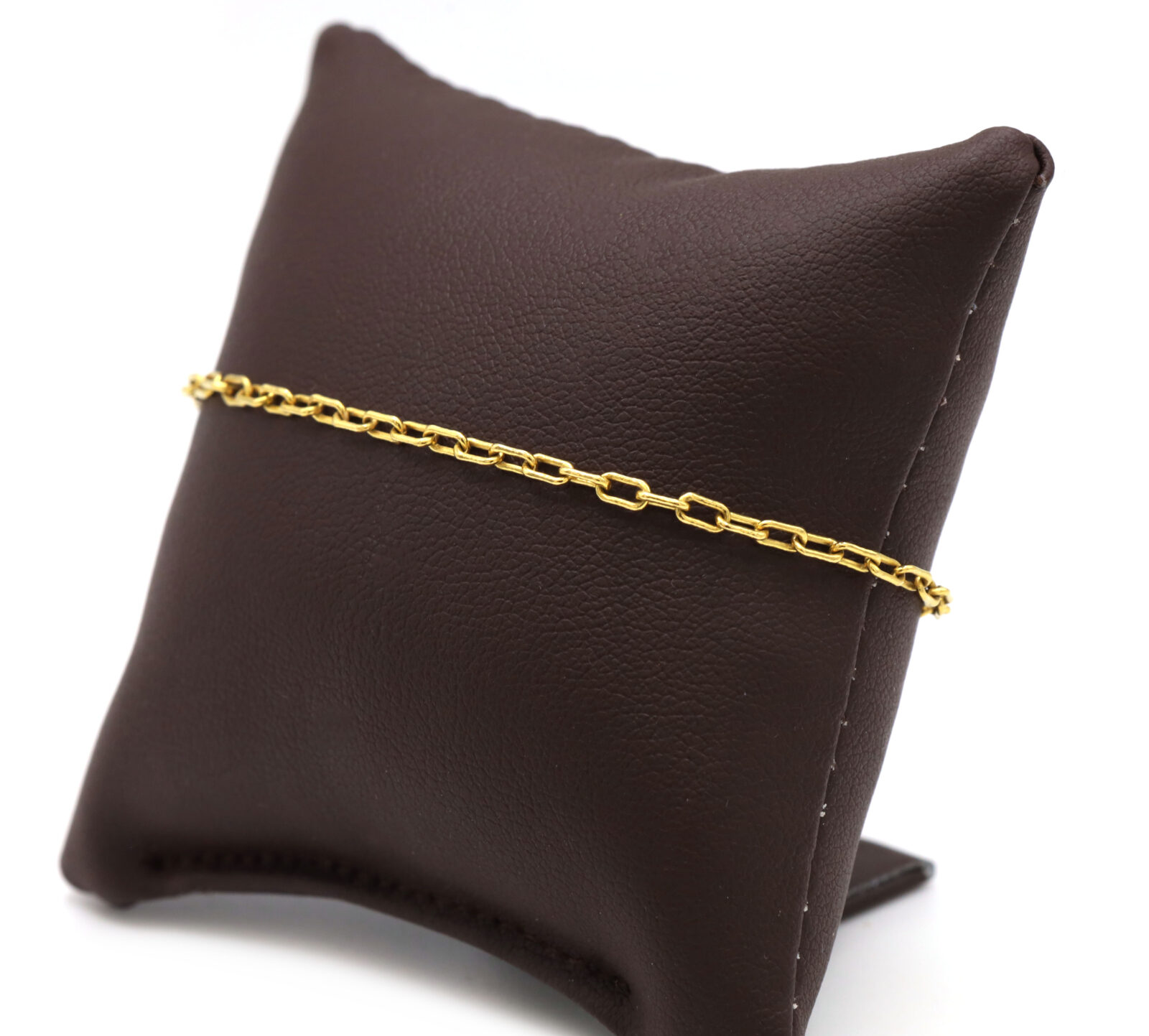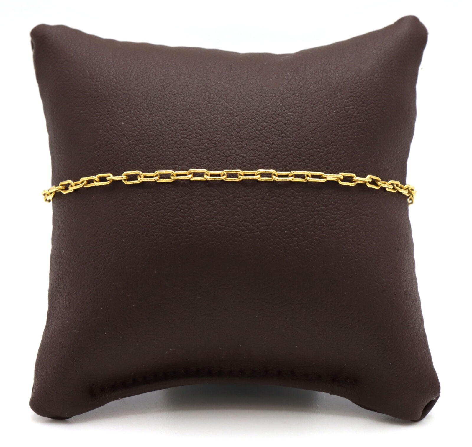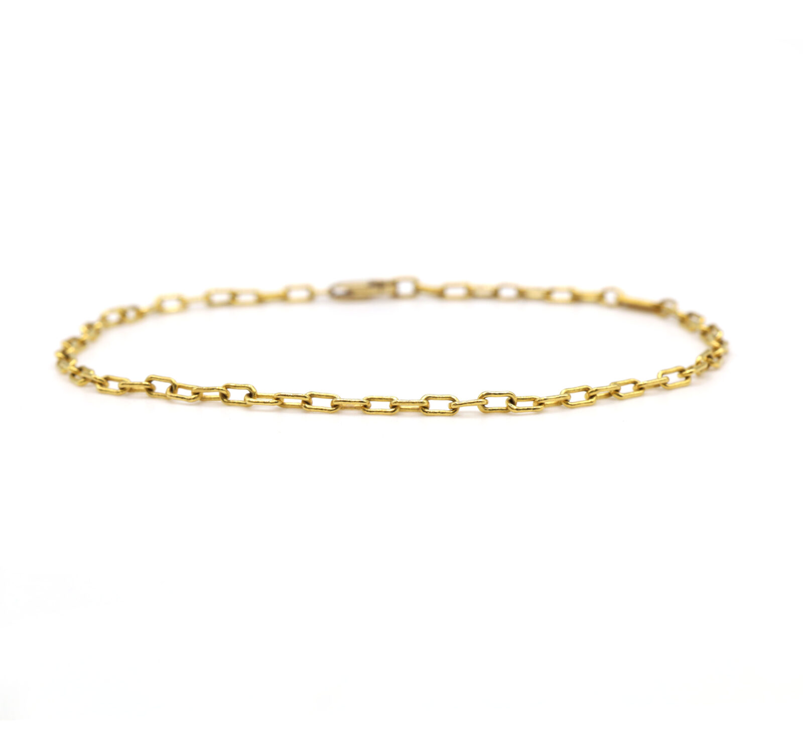 Material: 18k Yellow Gold Length: 7.5 Inches Weight: 3.6 Grams Width: 2.2mm Type: Paperclip / Cable