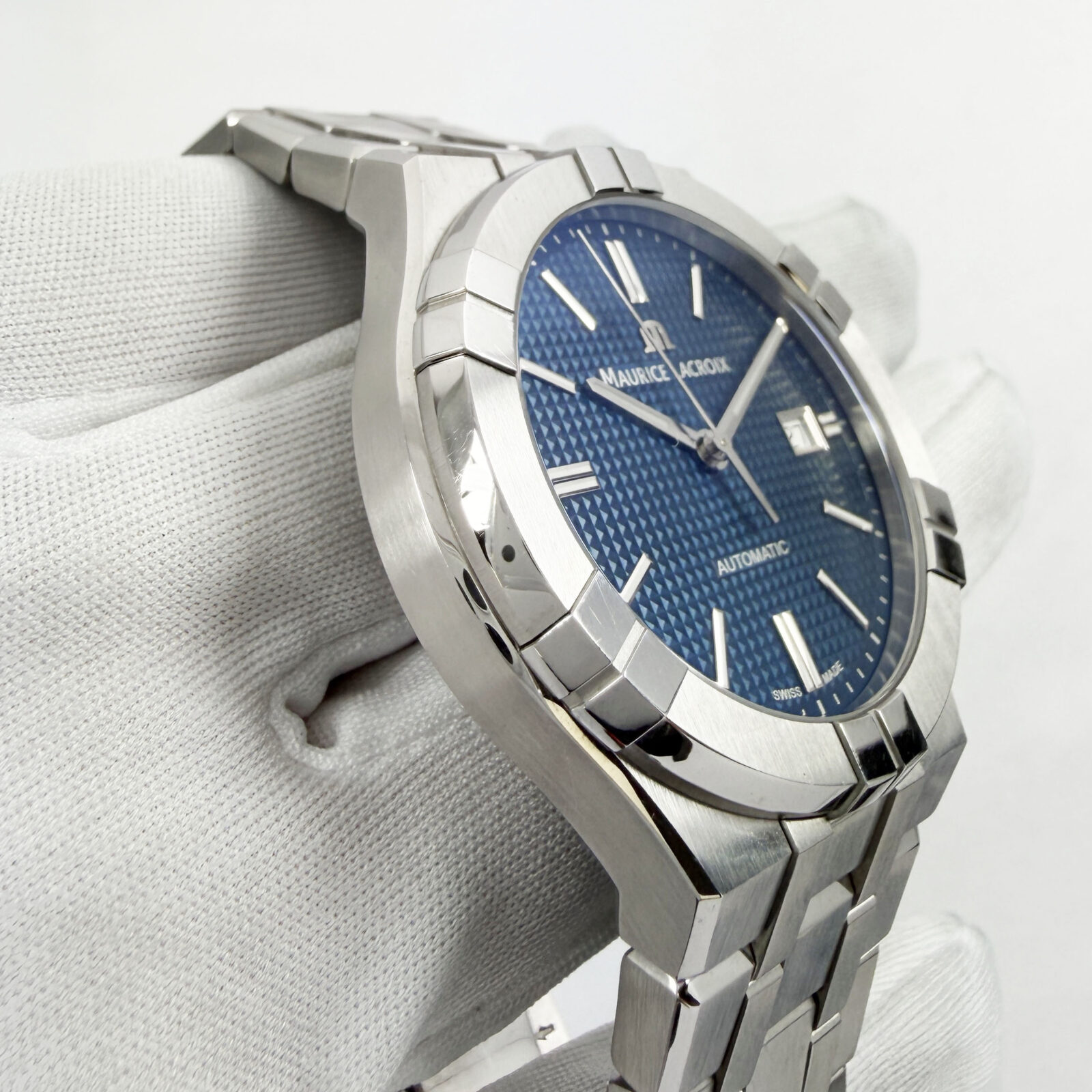 This Maurice Lacroix watch comes with its box, booklet, hangtag, and extra link. The photos shown are of the exact watch being sold and accurately represent its condition. This watch is in stock and ready to ship immediately!