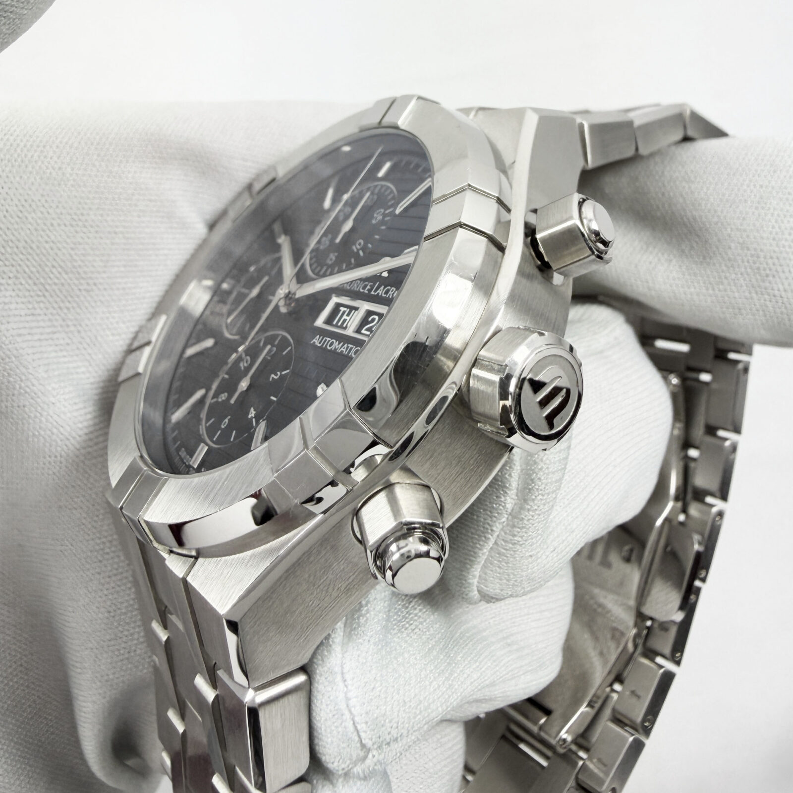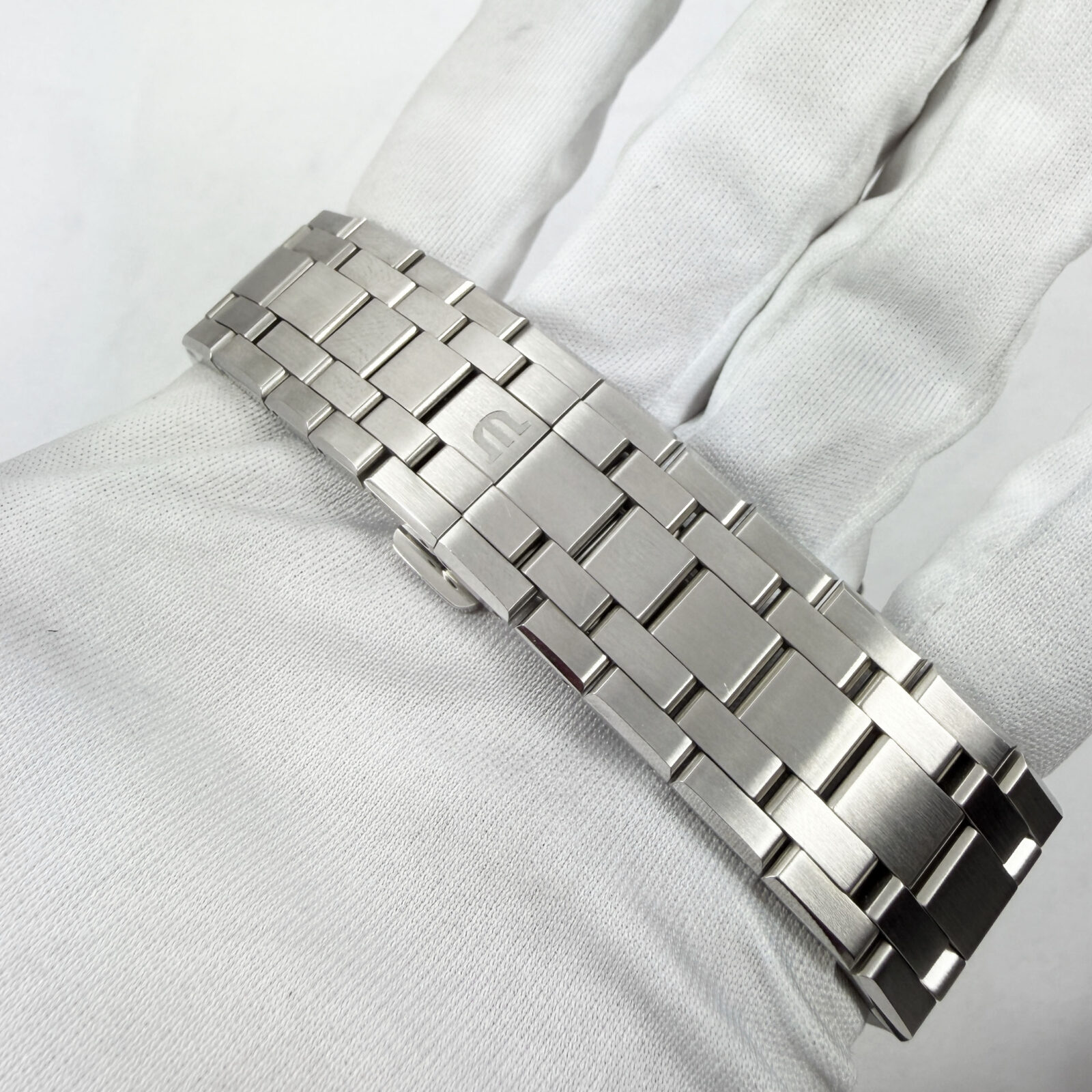 This Maurice Lacroix watch comes with watch only. The photos shown are of the exact watch being sold and accurately represent its condition. This watch is in stock and ready to ship immediately!
