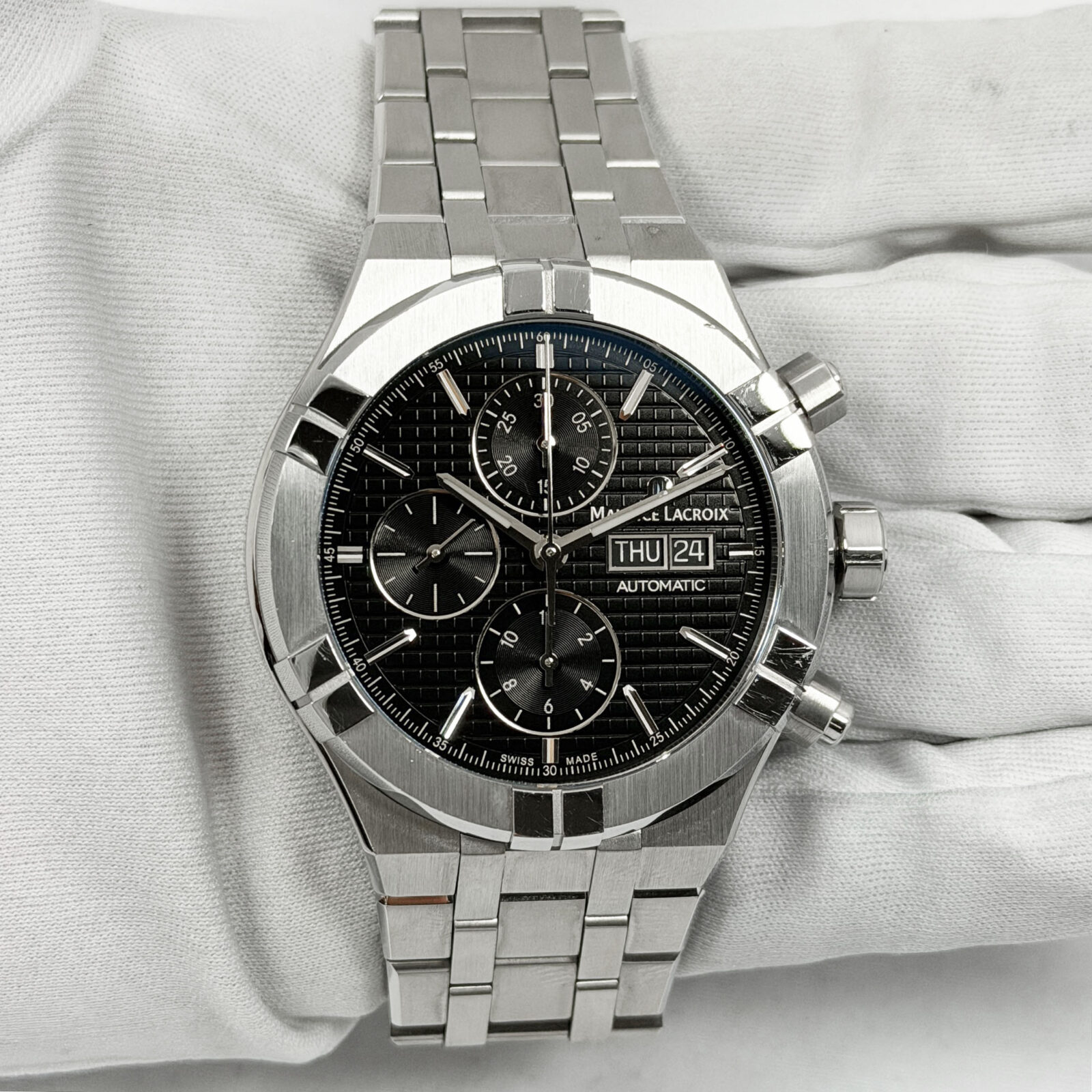 this maurice lacroix watch comes with watch only. The photos shown are of the exact watch being sold and accurately represent its condition. This watch is in stock and ready to ship immediately!