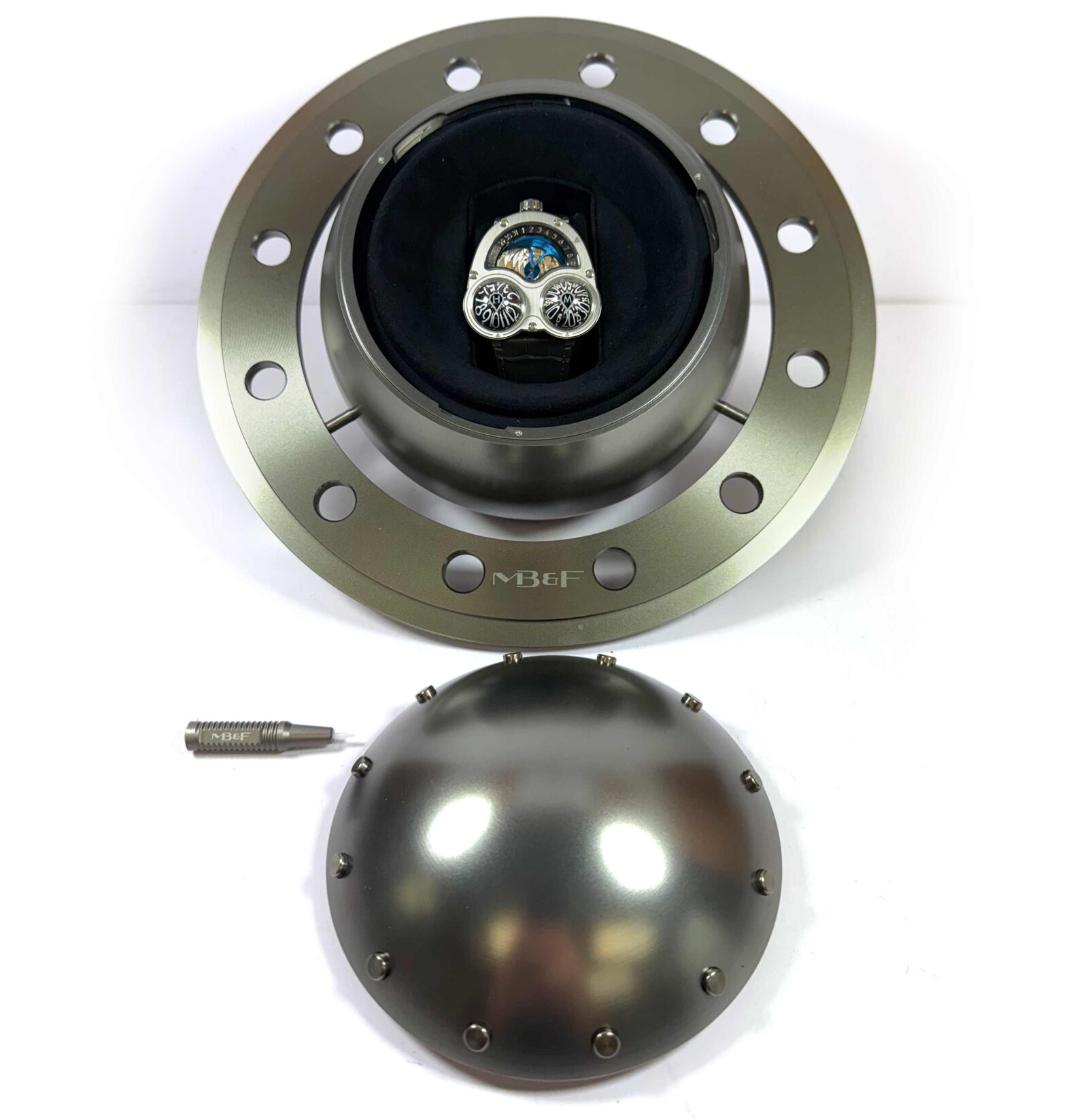 this mb&f is in excellent condition and comes with its box and watch tool as shown in the pictures attached. This watch is part of a limited edition and is in stock and available to ship immediately!
