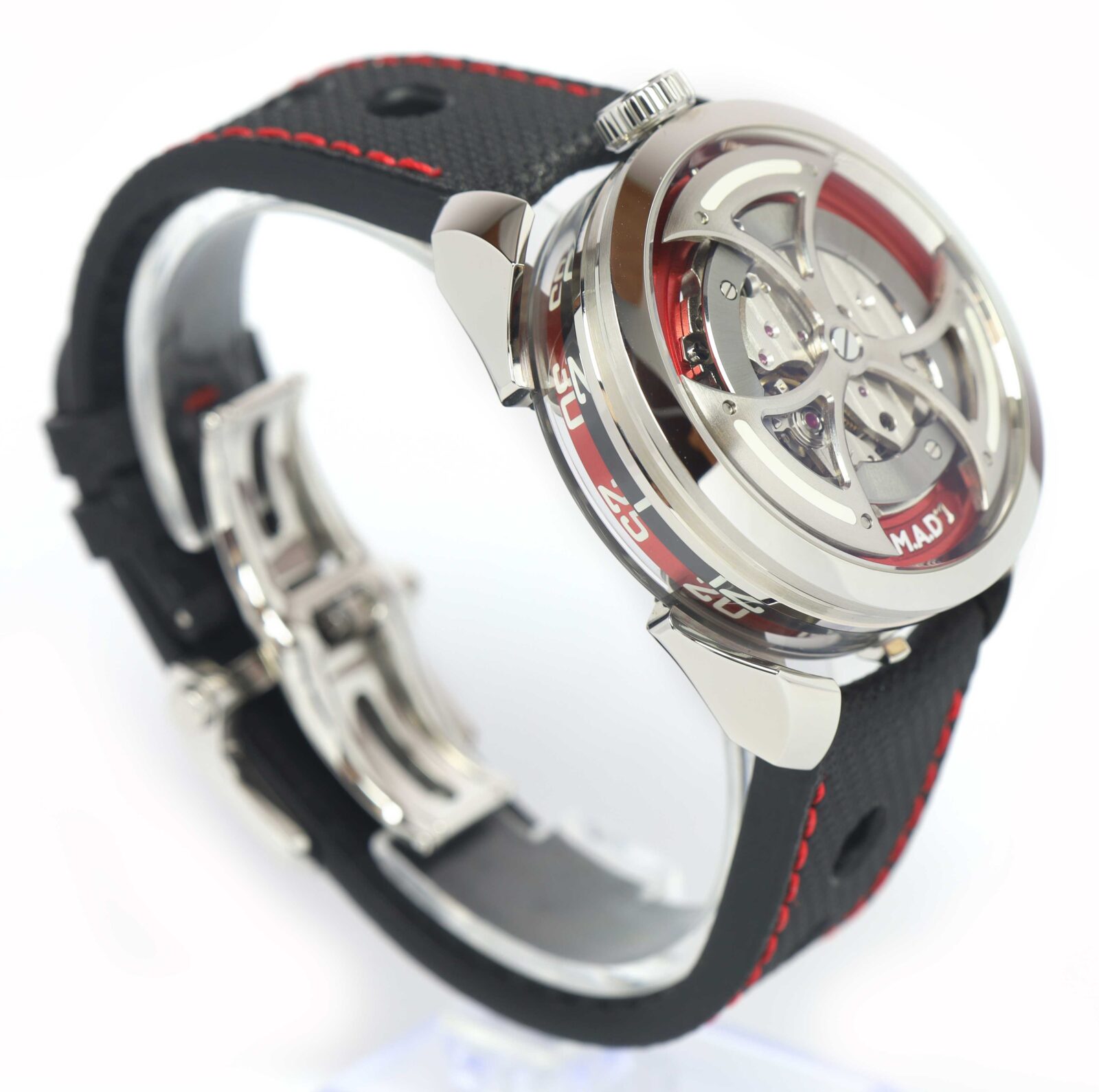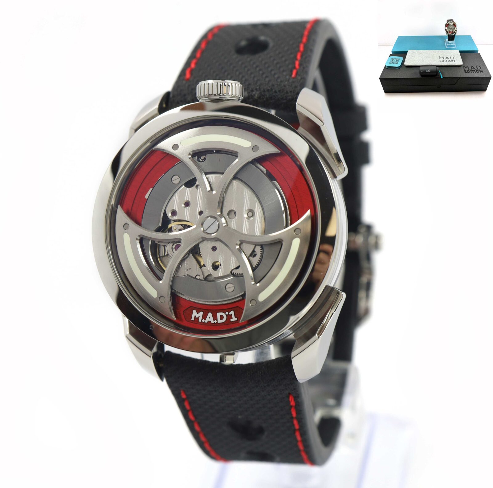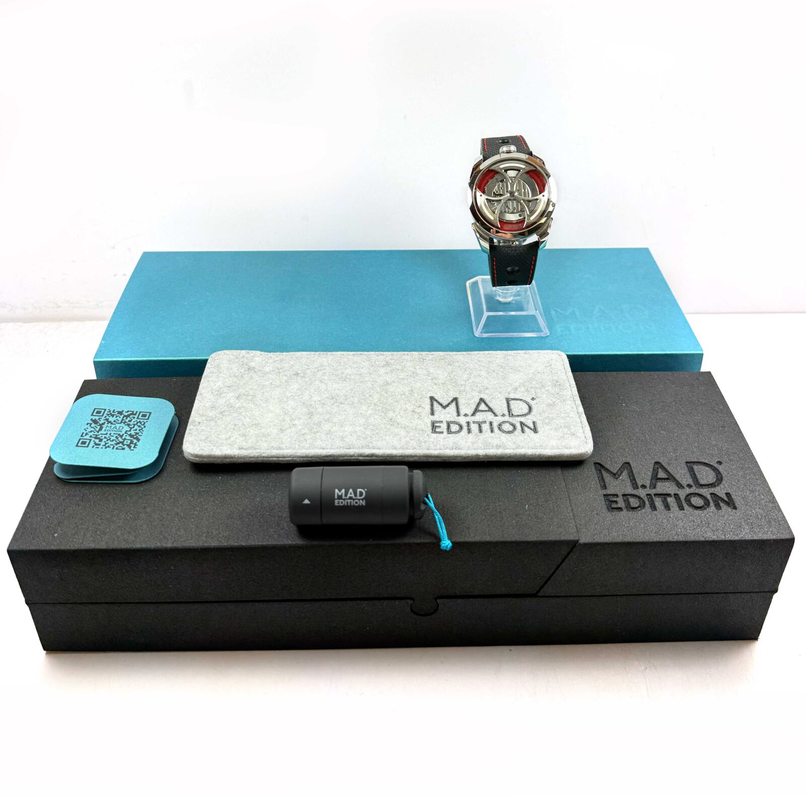 This MB&F M.A.D 1 watch is in excellent condition and comes with its box, and QR code tag as shown in the pictures attached. This watch is in stock and available to ship immediately!