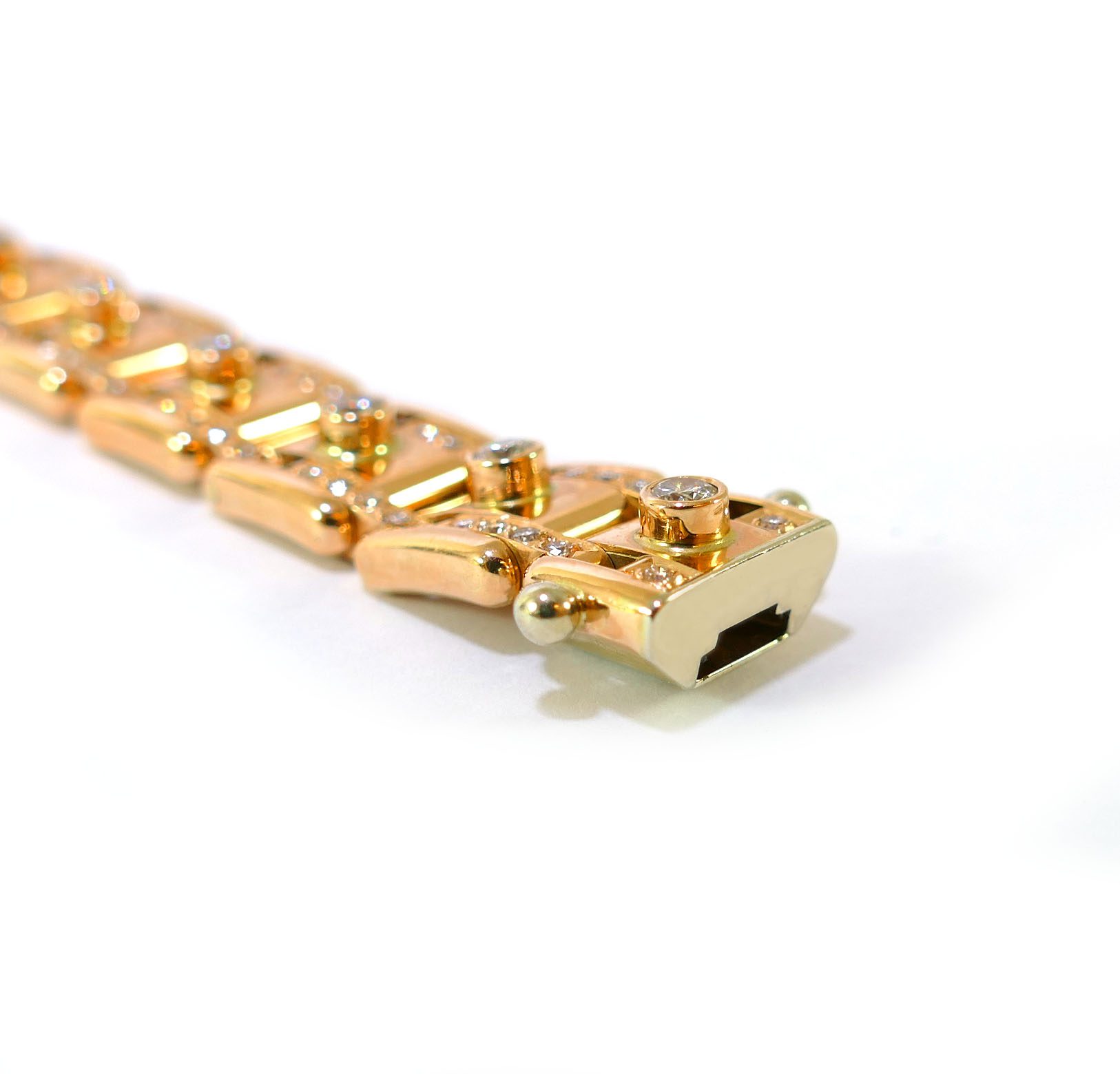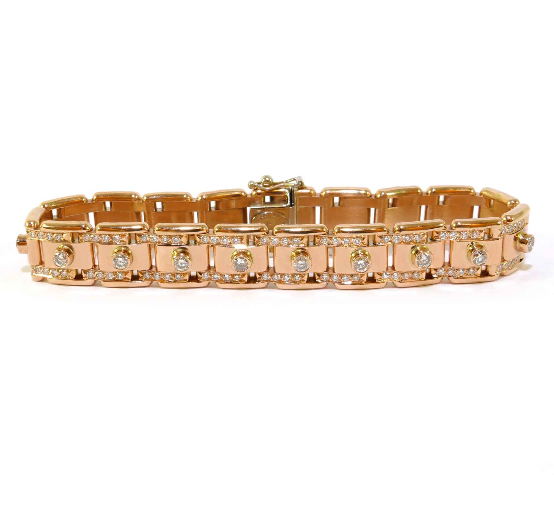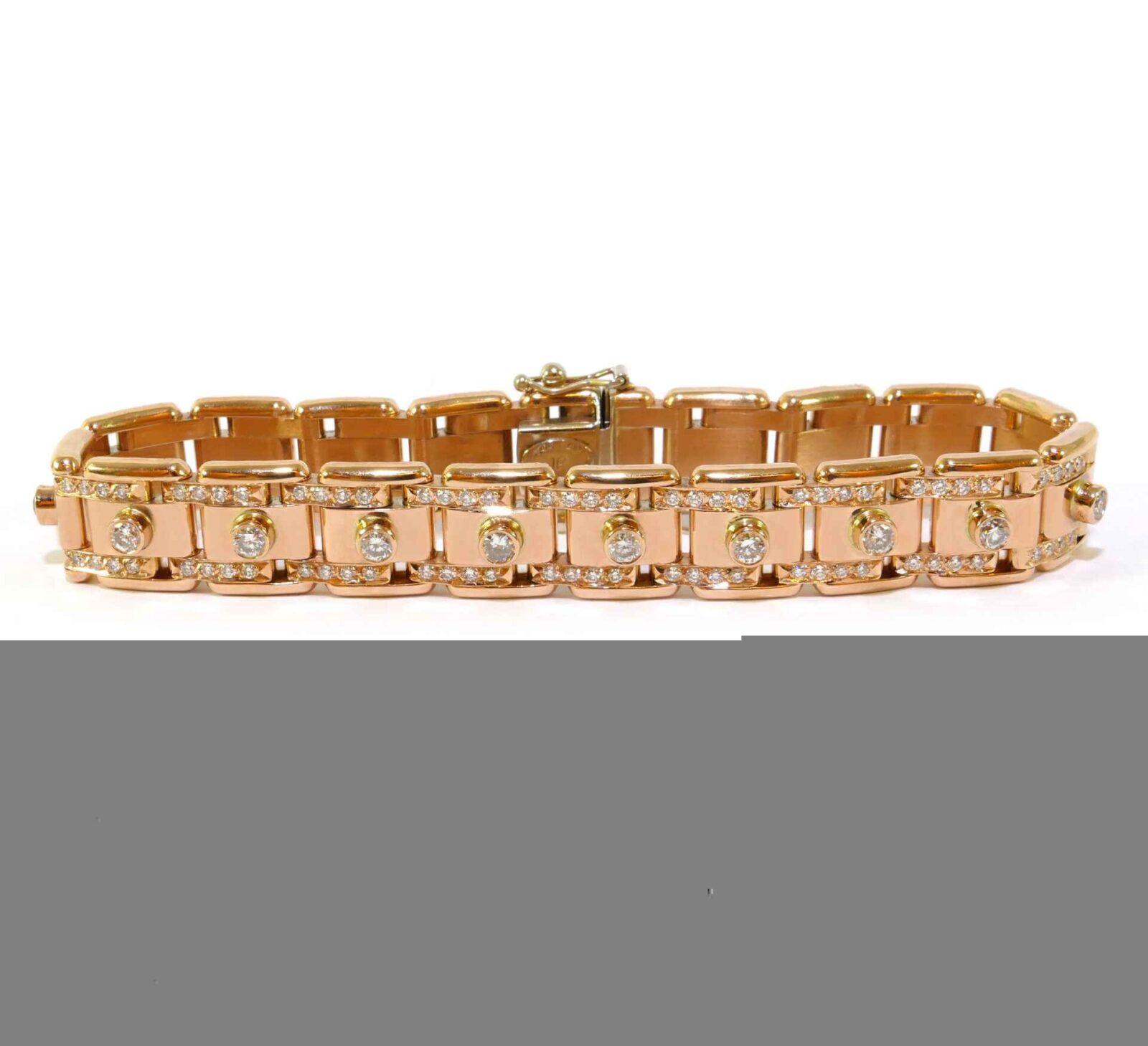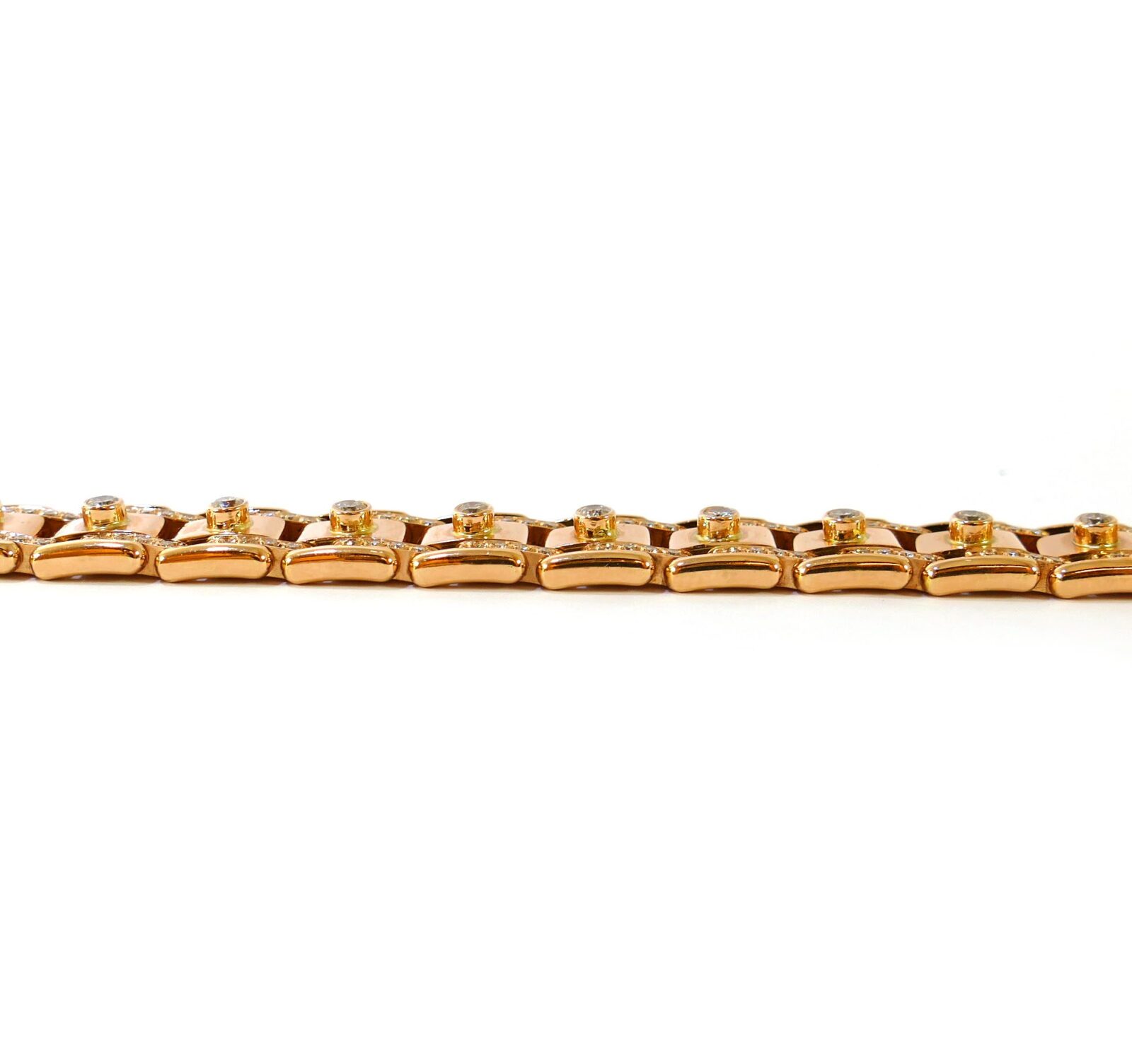 this bracelet was designed to match the rolex masterpiece design. It was designed in italy, and is super high quality. The diamonds are vs clarity, e/f color. The back side of each link is satin finished and slightly curved giving this bracelet an extremely comfortable fit. The bracelet is 8 inches long and half an inch wide.