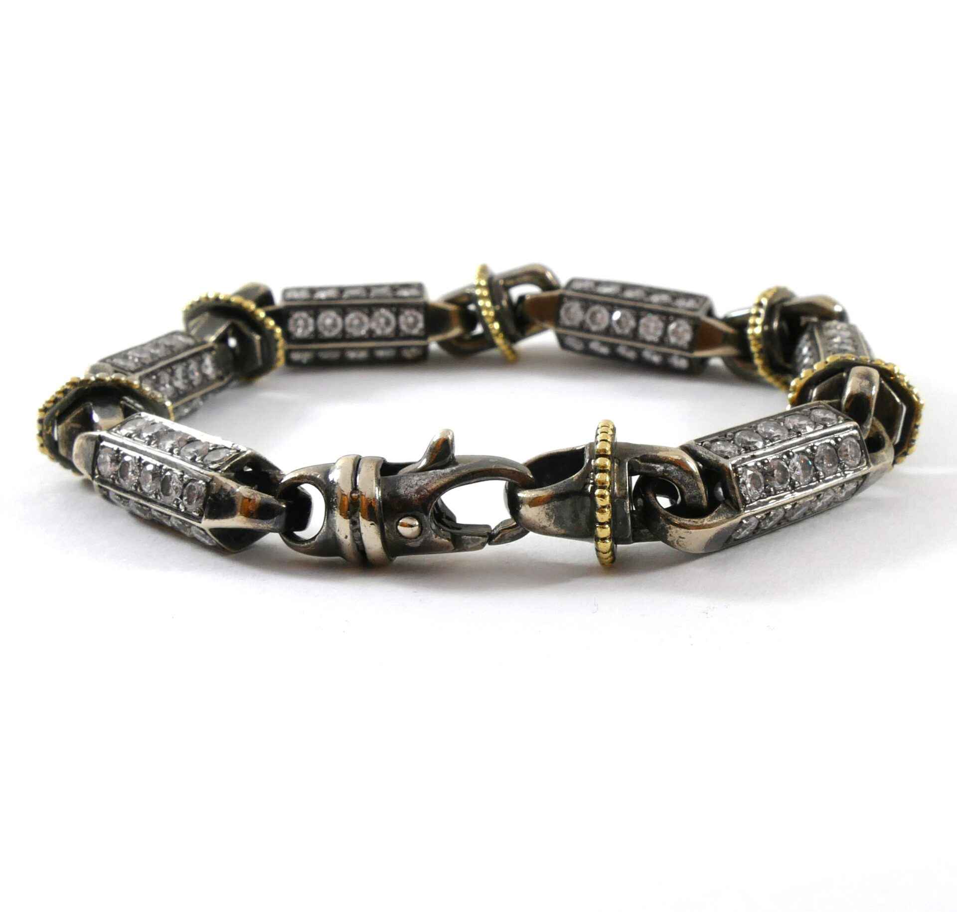 Men’s Diamond 12ct 14k & 18k White Gold Black Rhodium Link Bracelet 9″