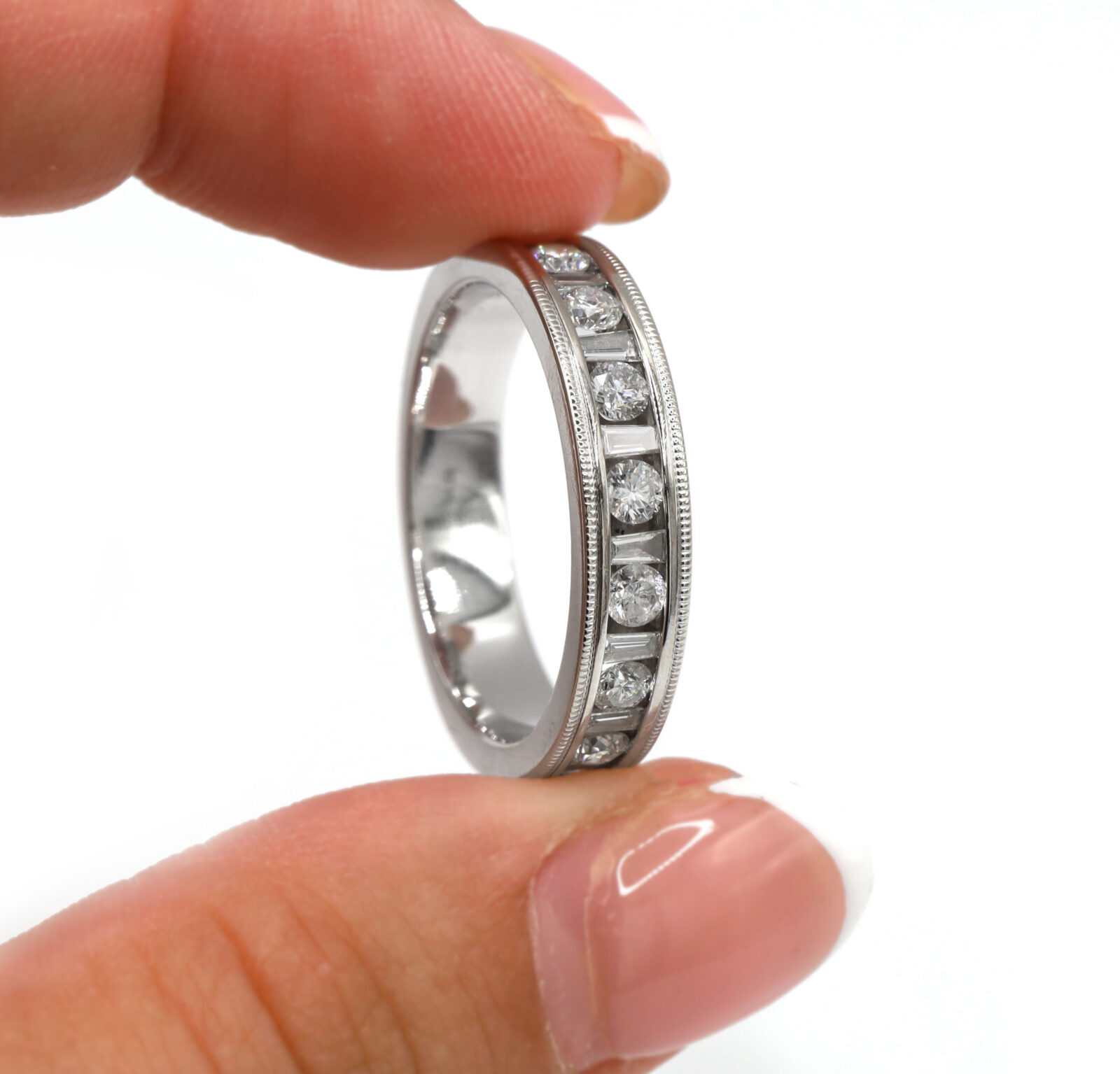 Men’s Diamond Baguette Round Channel Set 14K White Gold Wedding Band Ring