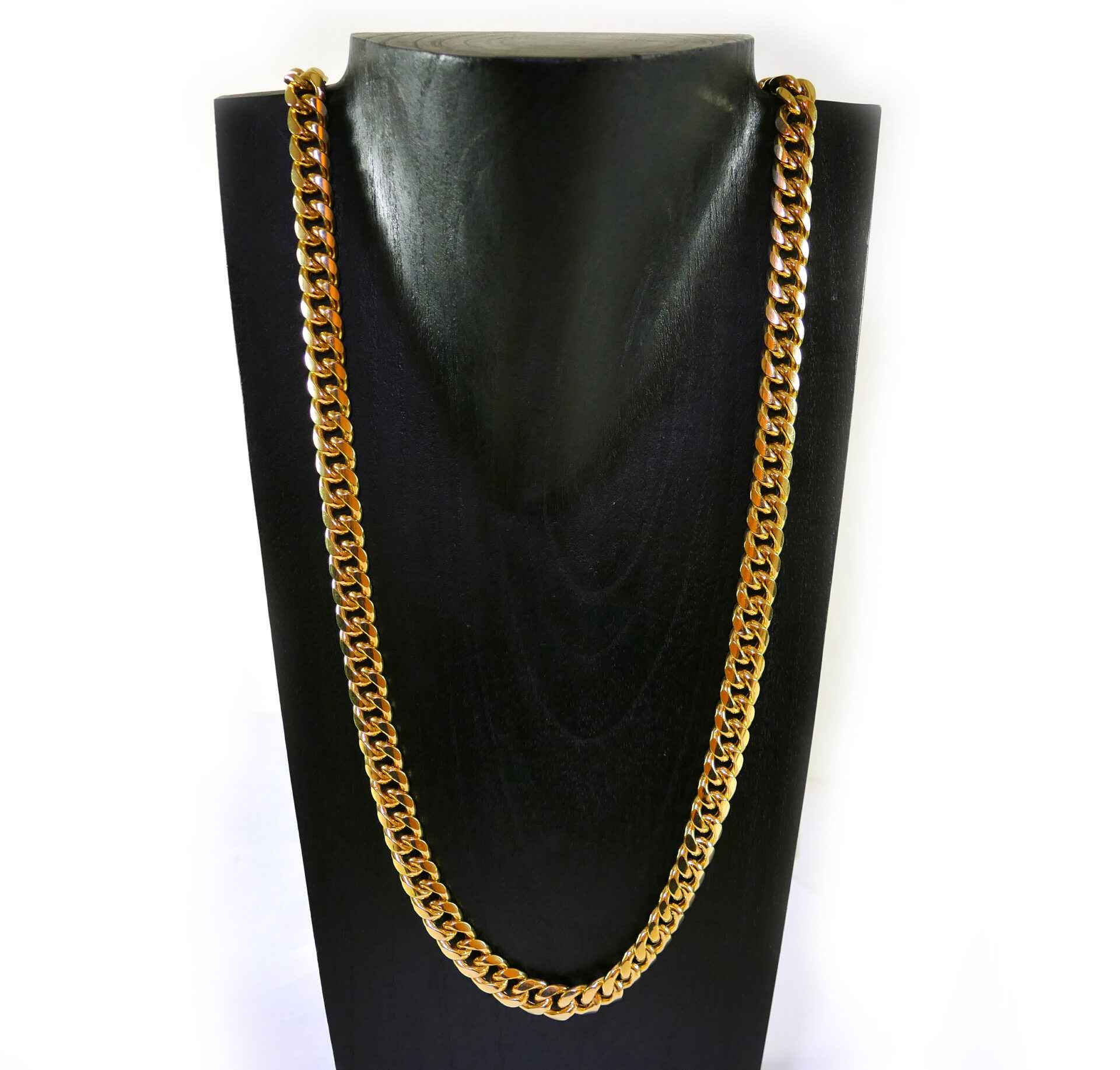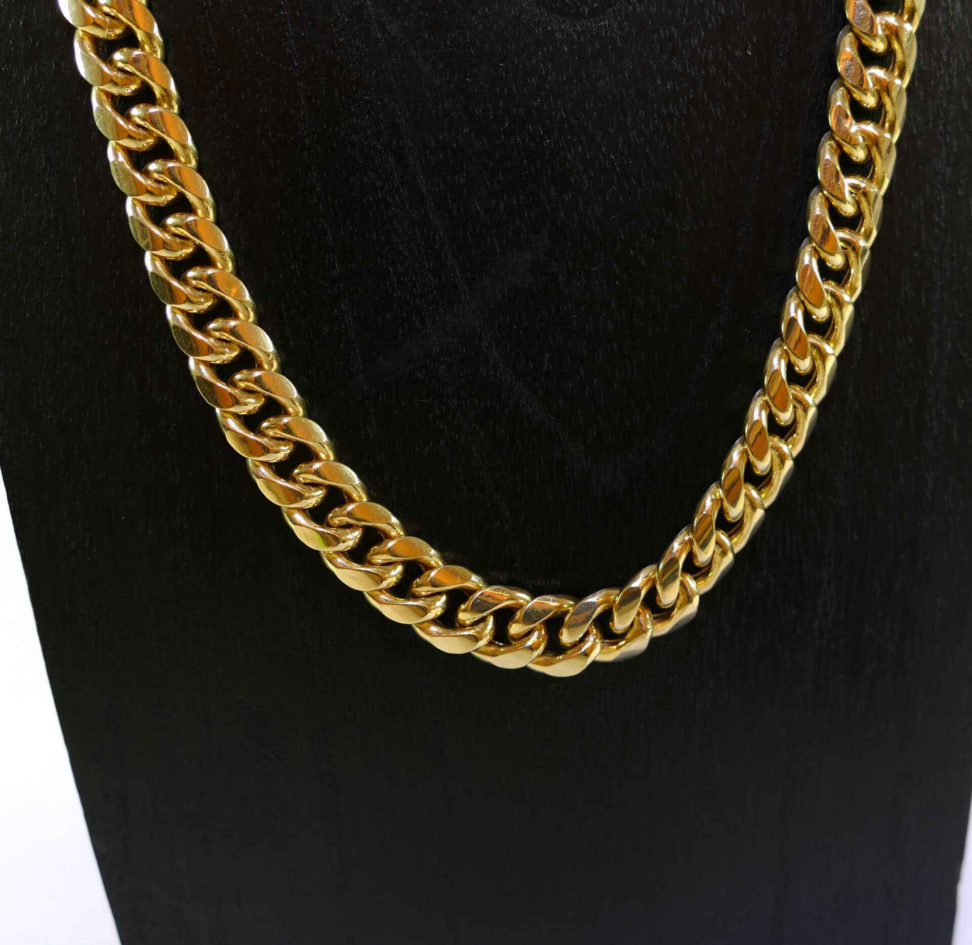 this bold and hollow cuban link chain necklace is made of complete 10k yellow gold. It has two safety features on the clasp to ensure it sitting safely and securely. It’s 30.5 inches long and 9.3 millimeters wide.
