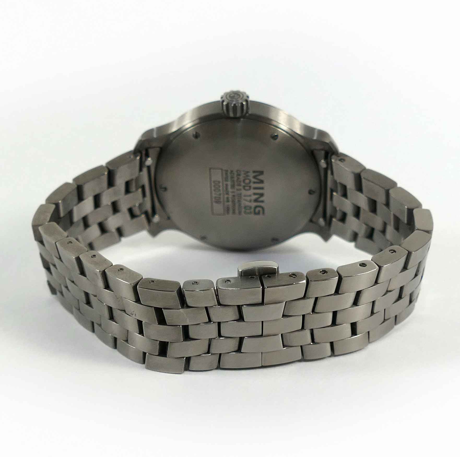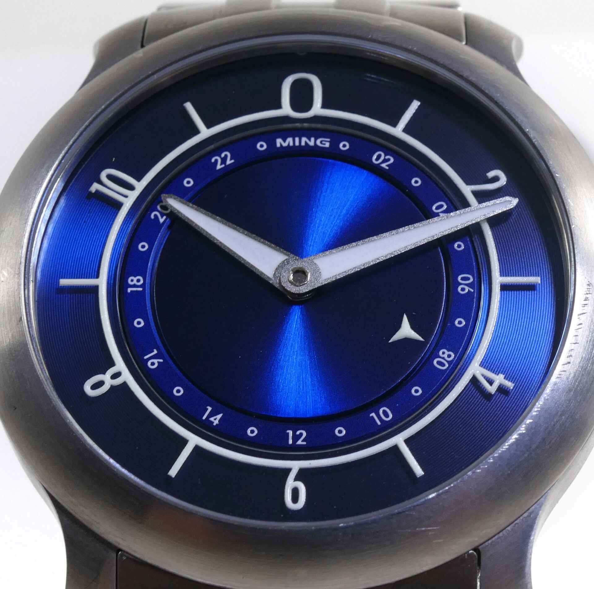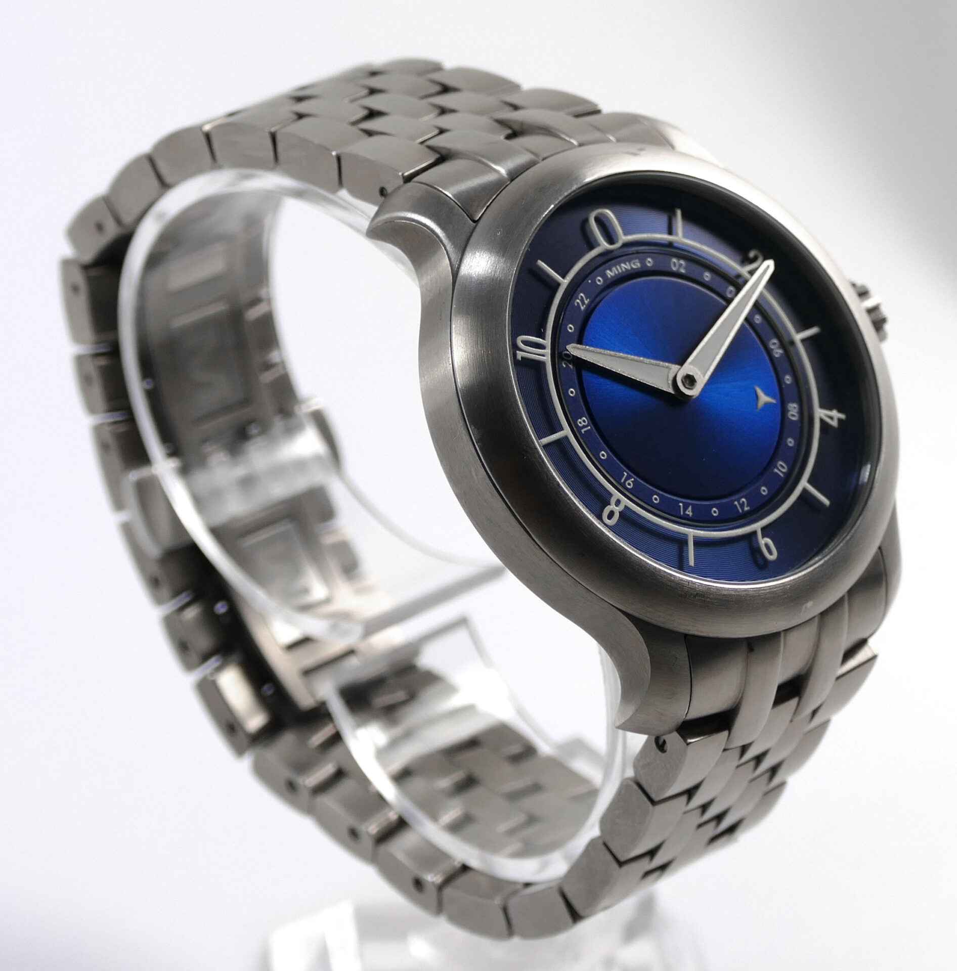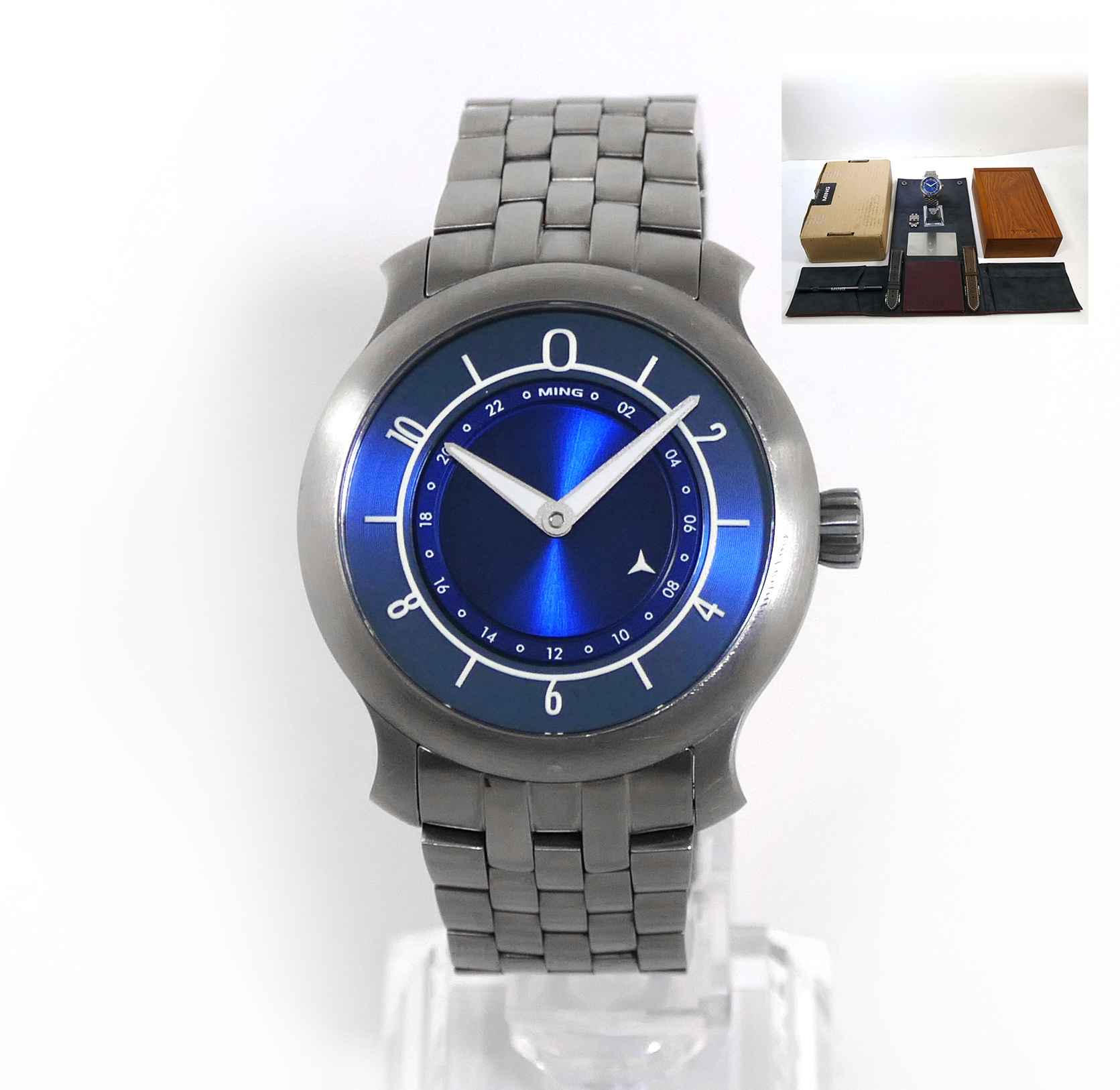 This Ming watch is in excellent condition but shows signs of wear from regular use. This watch comes complete with the box, papers, 2 extra straps, extra links, strap change tool, and warranty card dated September 1st, 2...