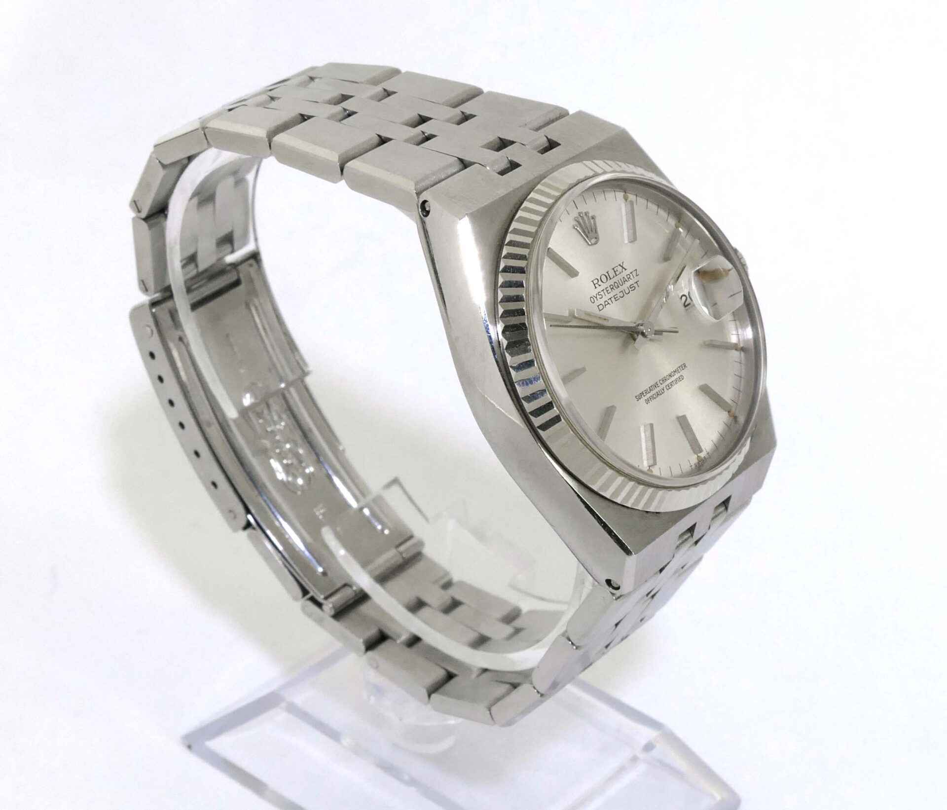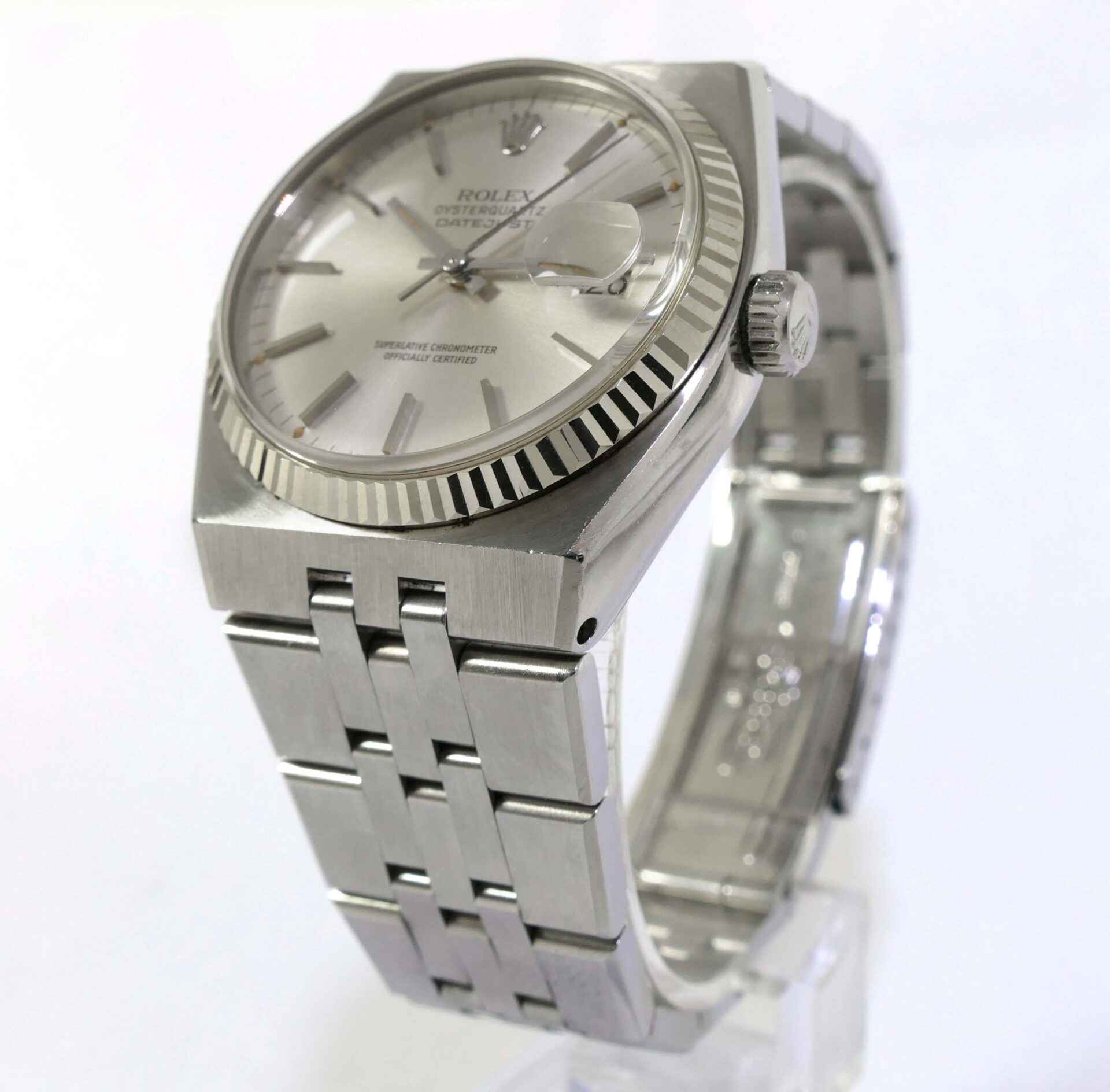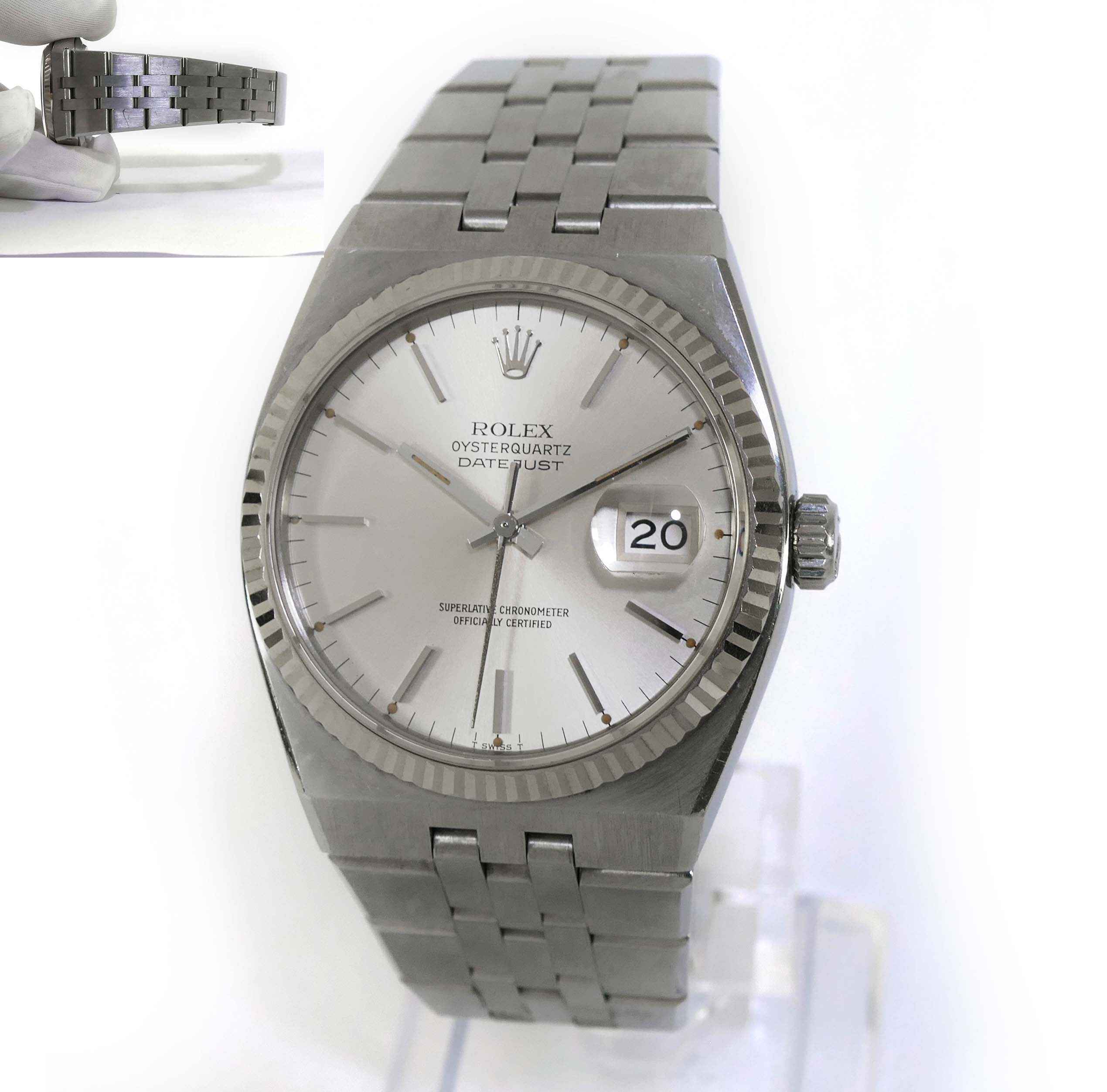 Read Morethis is an amazing example of a rolex datejust oysterquartz. The bracelet is super tight and has all of its original links. The watch has never been polished and still has its original finishing in tact (with of course some minor wear throughout the watch), but this watch was definitely not worn much as the wear throughout the watch is very light. The white gold bezel is super sharp. The serial is 6.6 million series, indicating an approximate manufacture date of 1981.