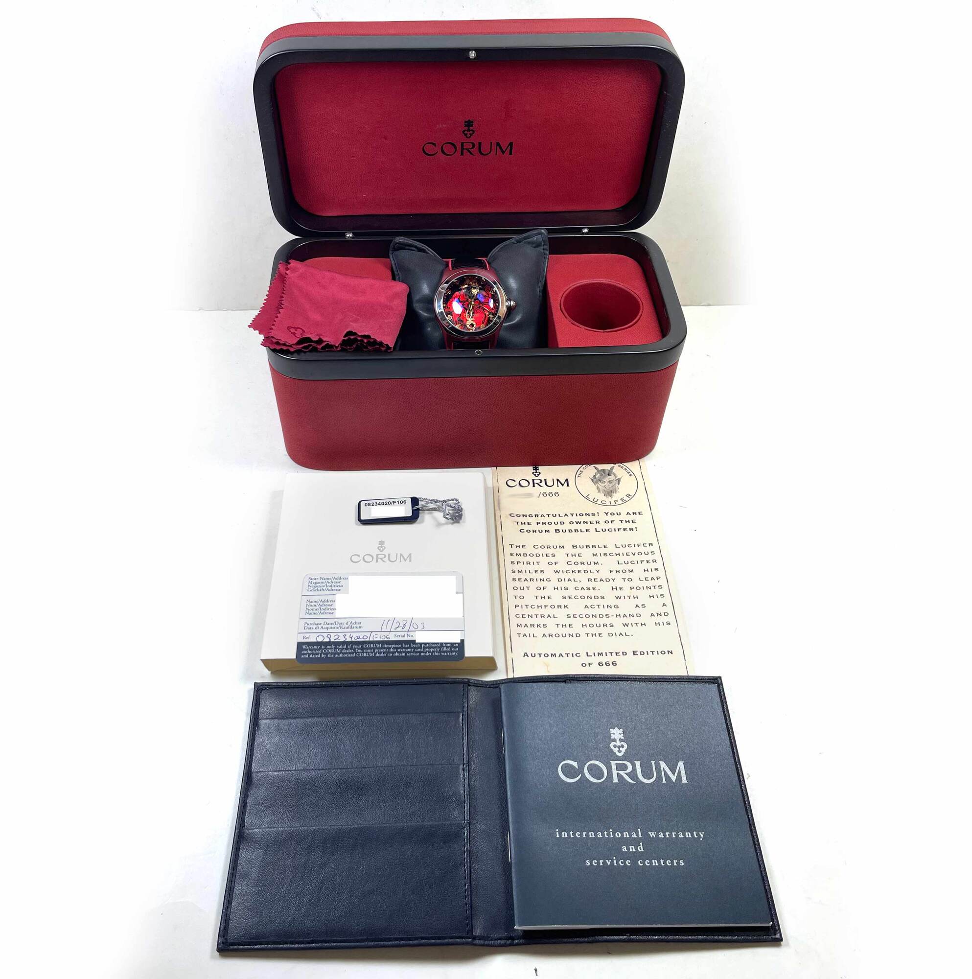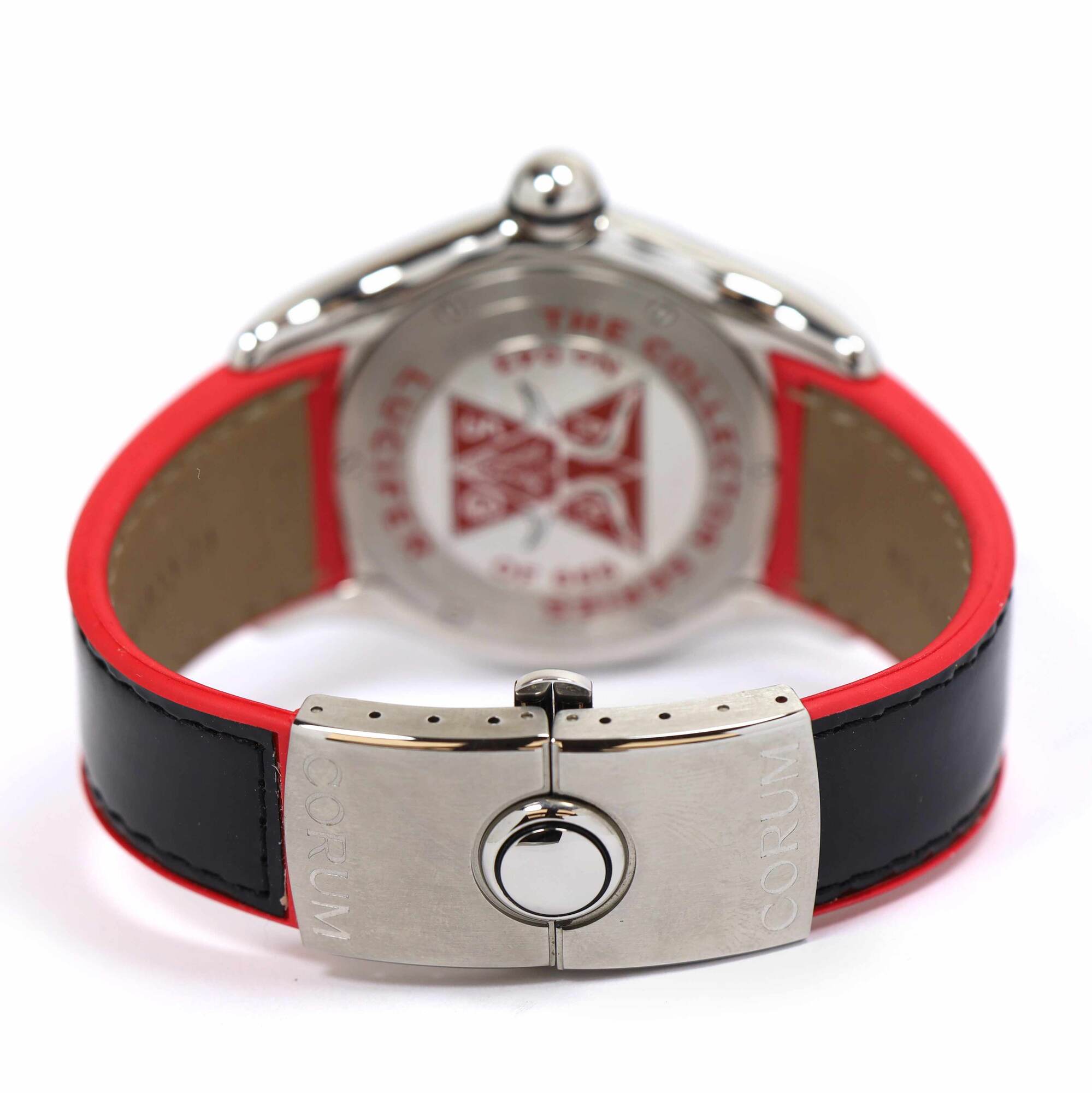 Read Morethis corum watch is in mint unpolished condition and comes with its box, booklet, hang tag, and warranty card dated november 28th, 2003 as shown in the pictures attached. We bought this watch from the original owner, he says he wore the watch 3 times at most, and the condition reflects that. This is truly in collector grade condition. This watch is in stock and available to ship immediately!