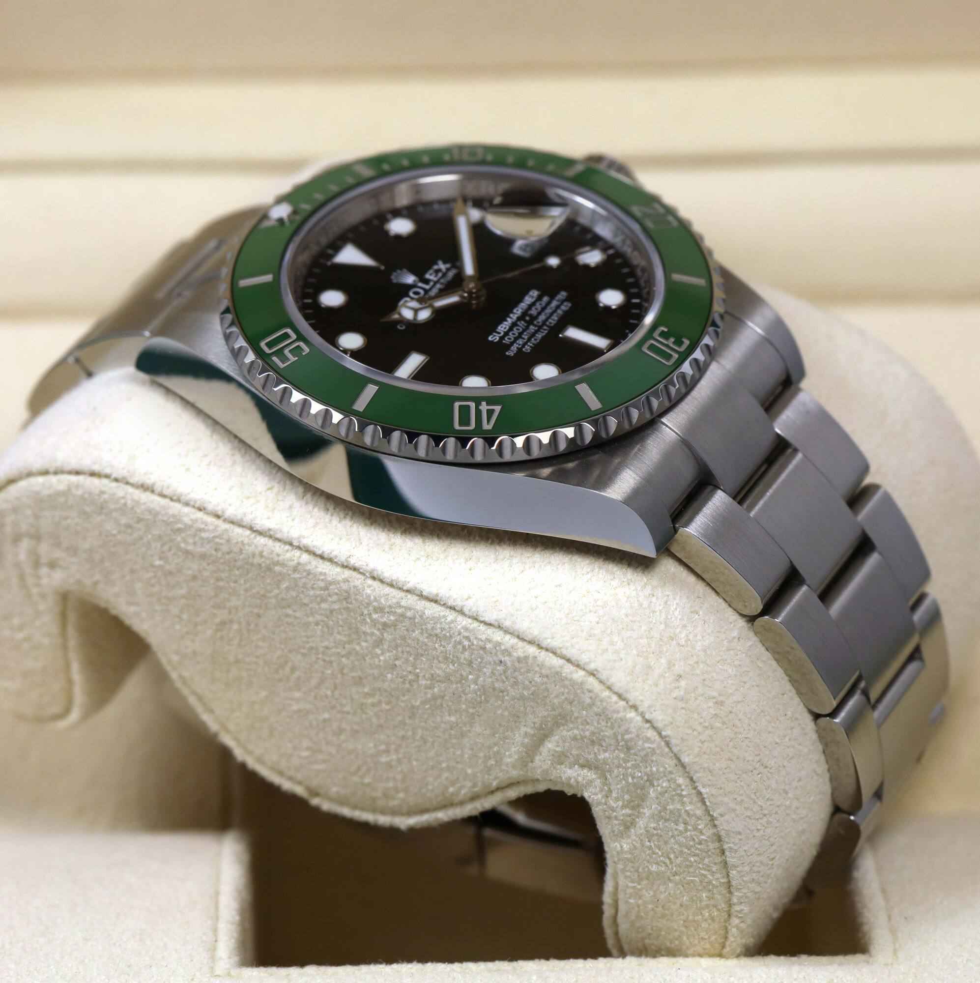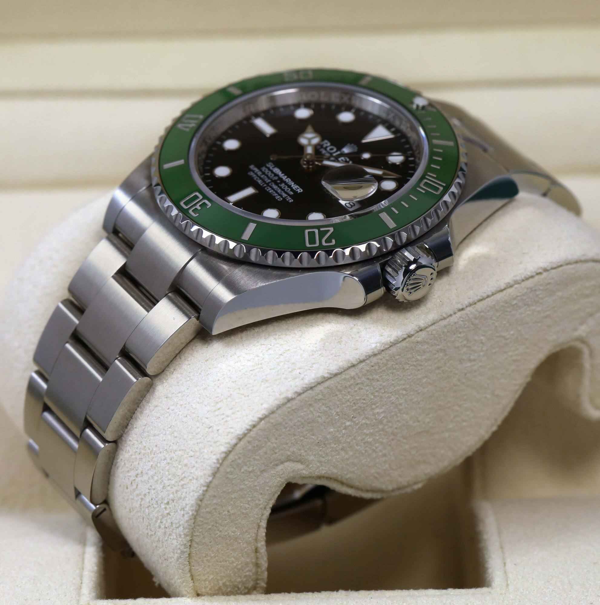 Read Morethis rolex submariner is in mint condition and was only worn once from the original owner. This watch comes with its box, booklets, bezel protector, both hang tags, and warranty card dated october 24th, 2023 as shown in the pictures attached. This watch features the new 2023 mk2 green ceramic bezel and is in stock and available to ship immediately!
